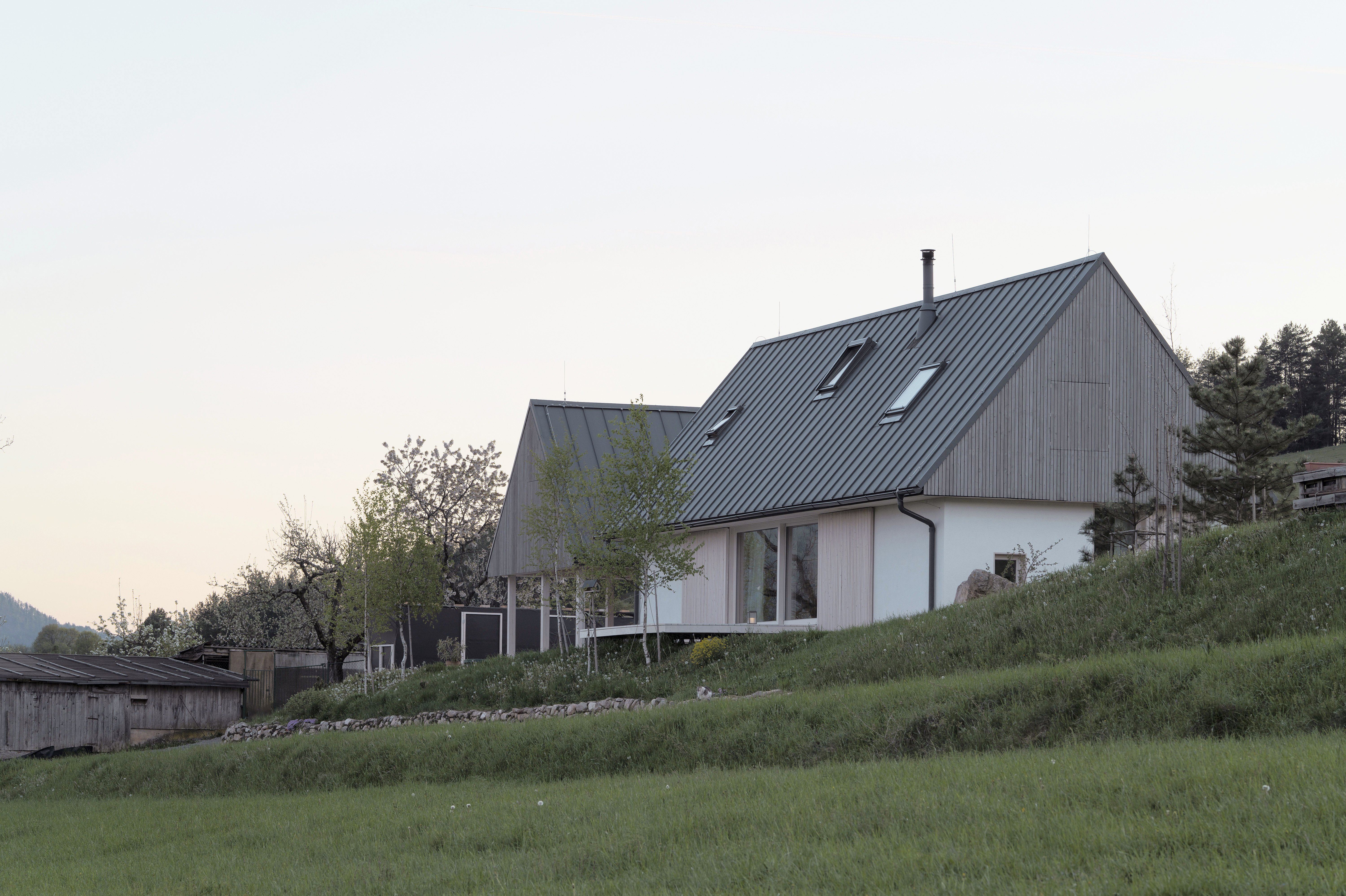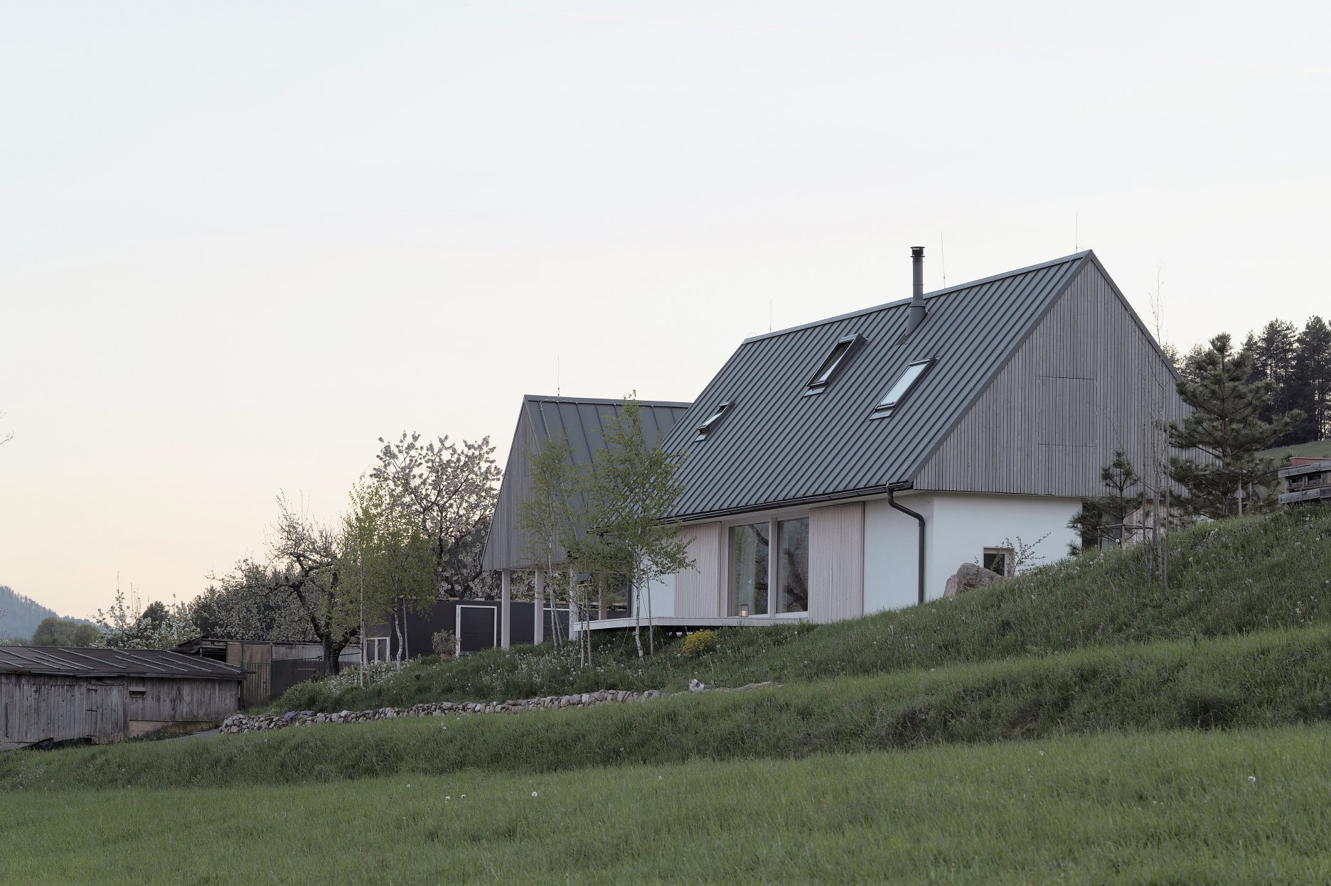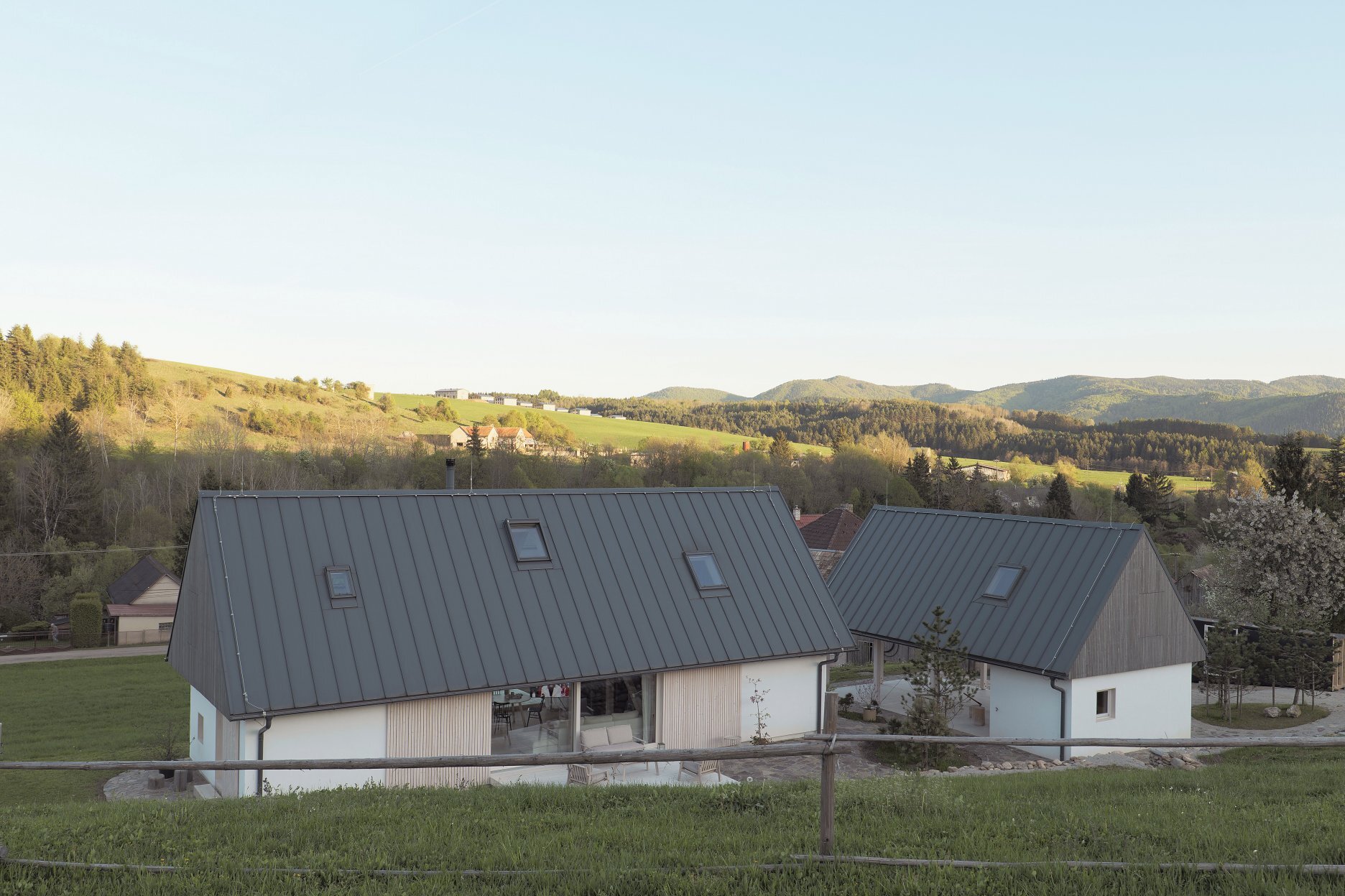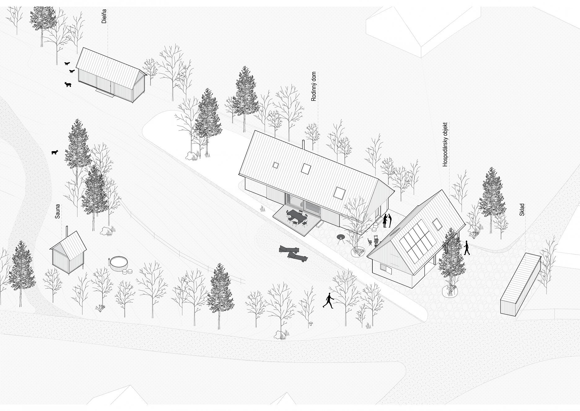 Podobu rodinného domu, situovaného na úpätí Nízkych Tatier v historicky tradičnej stredoslovenskej dedine, už od počiatku definovalo okolité prostredie a okolnosti jeho výstavby. Rozľahlý pozemok sa nachádza na samotnom konci dediny a priestorovo uzatvára skupinu domov, ktorých majitelia – zároveň rodinní príbuzní – obývajú toto miesto už celé generácie. Silné väzby k hodnotám tohto horského prostredia, spojené s pamäťou na niekdajšiu podobu pôvodných dreveníc, sa premietli do architektúry stavby nielen v podobe archetypálnej hmoty so sedlovou strechou, ale aj do formy konštrukčného riešenia a urbanistickej kompozície.