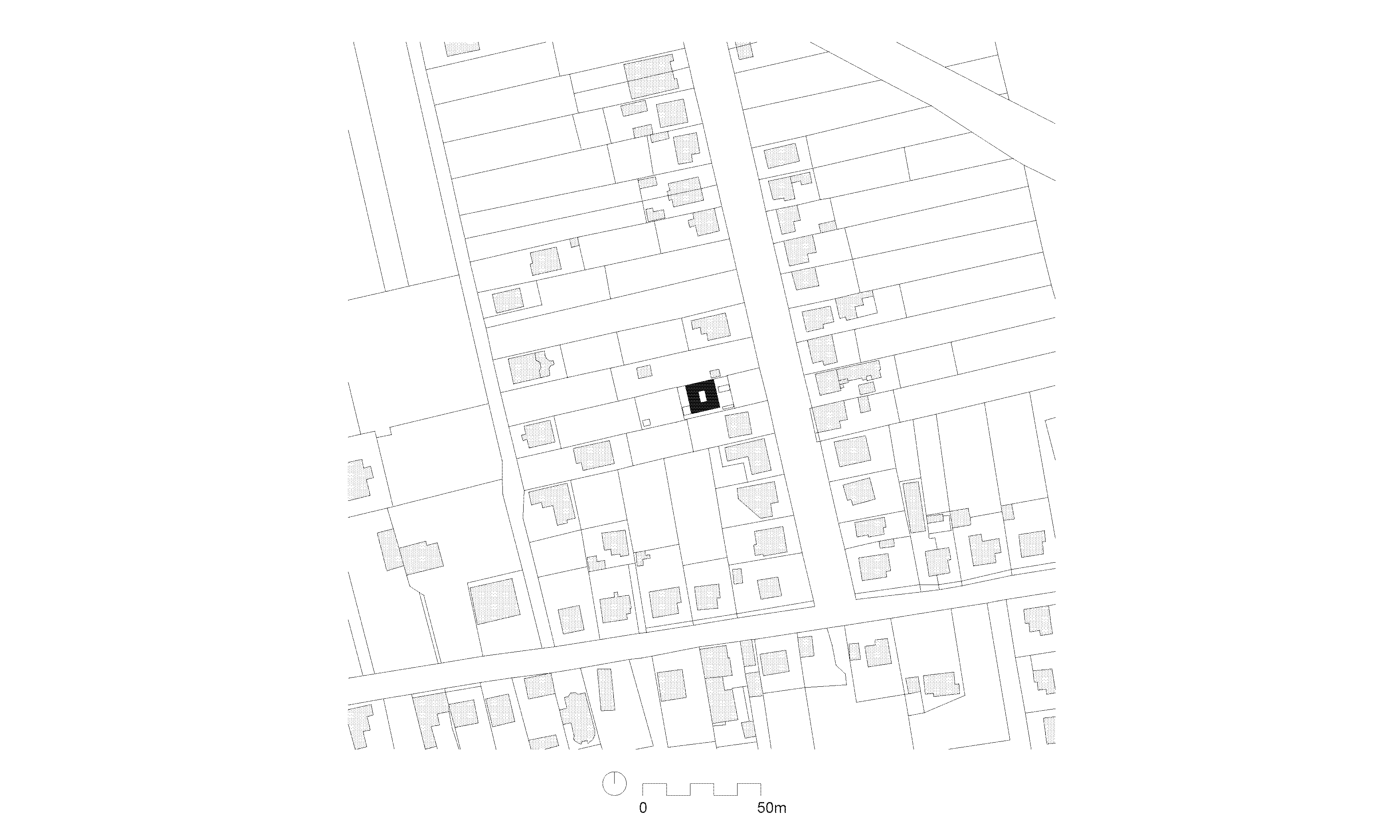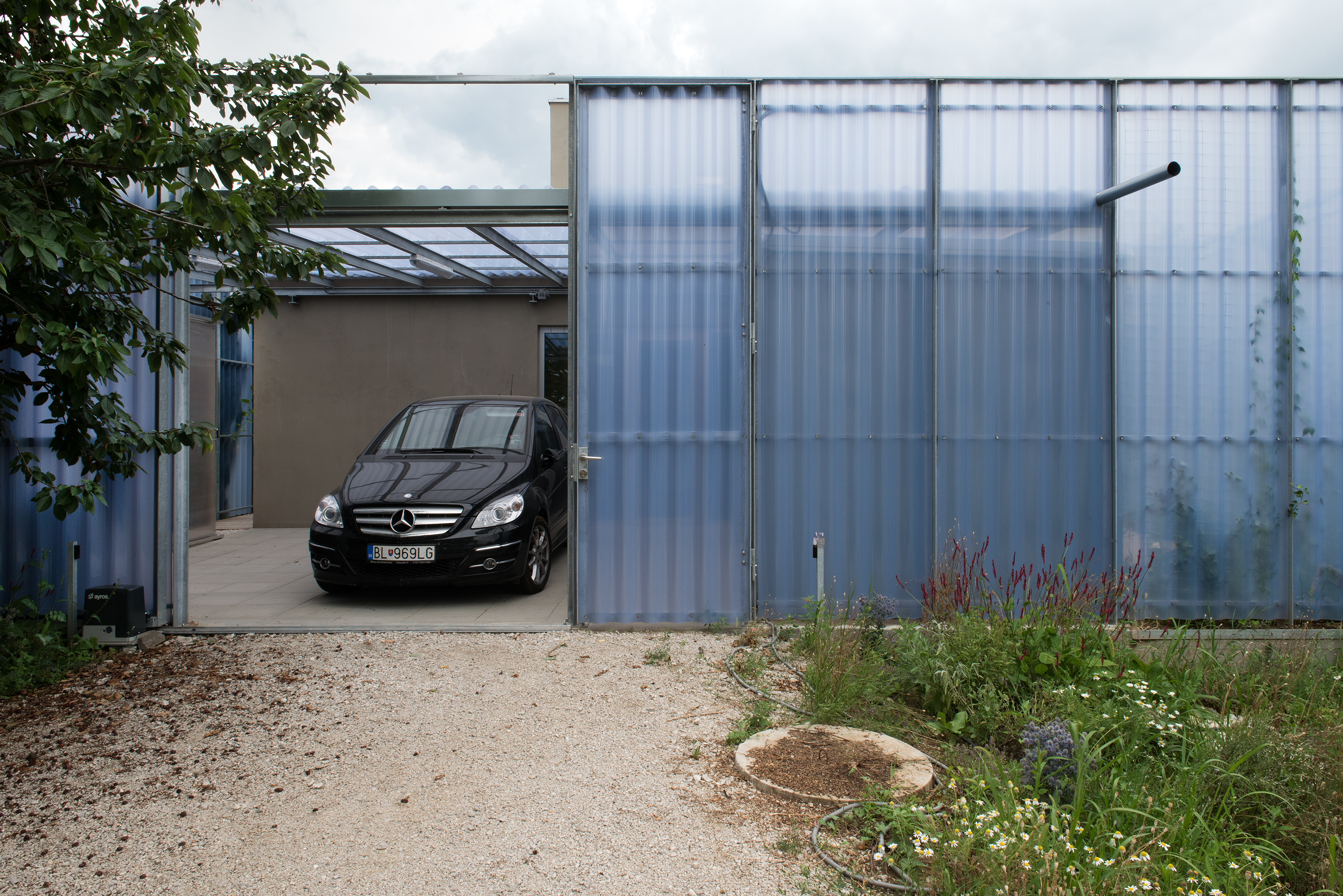 Dom je situovaný v prostredí stabilizovanej zástavby rodinných domov a záhradných pozemkov. Stojí na mieste pôvodného záhradného domu, s odstupom od ulice, čo mu zabezpečuje určitú intimitu a izolovanosť. Svojim umiestnením rozdeľuje pozemok na prednú a zadnú záhradu. Kým predná záhrada má charakter bujného neudržiavaného porastu, zadná, ukrytá za domom, je koncipovaná ako produktívna a pobytová.