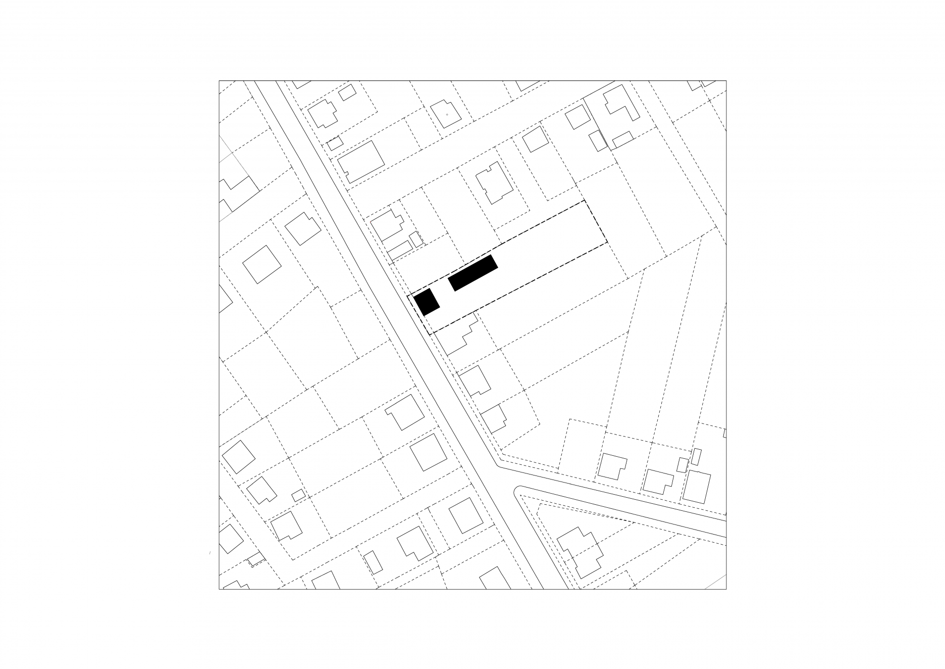 Štvorcový dom po rodičoch rovnako nespĺňal súčasné priestorové nároky. Namiesto asanácie, či prestavby s doplnením chýbajúcich priestorov sme sa rozhodli pre jeho ponechanie ako súčasť charakteru ulice a požadované kapacity stavať za ním, ako to bolo kedysi prirodzené - postupnou pozdĺžnou dostavbou. Starý dom časom prejde citlivou rekonštrukciou a bude ďalej slúžiť ako dom pre hostí.