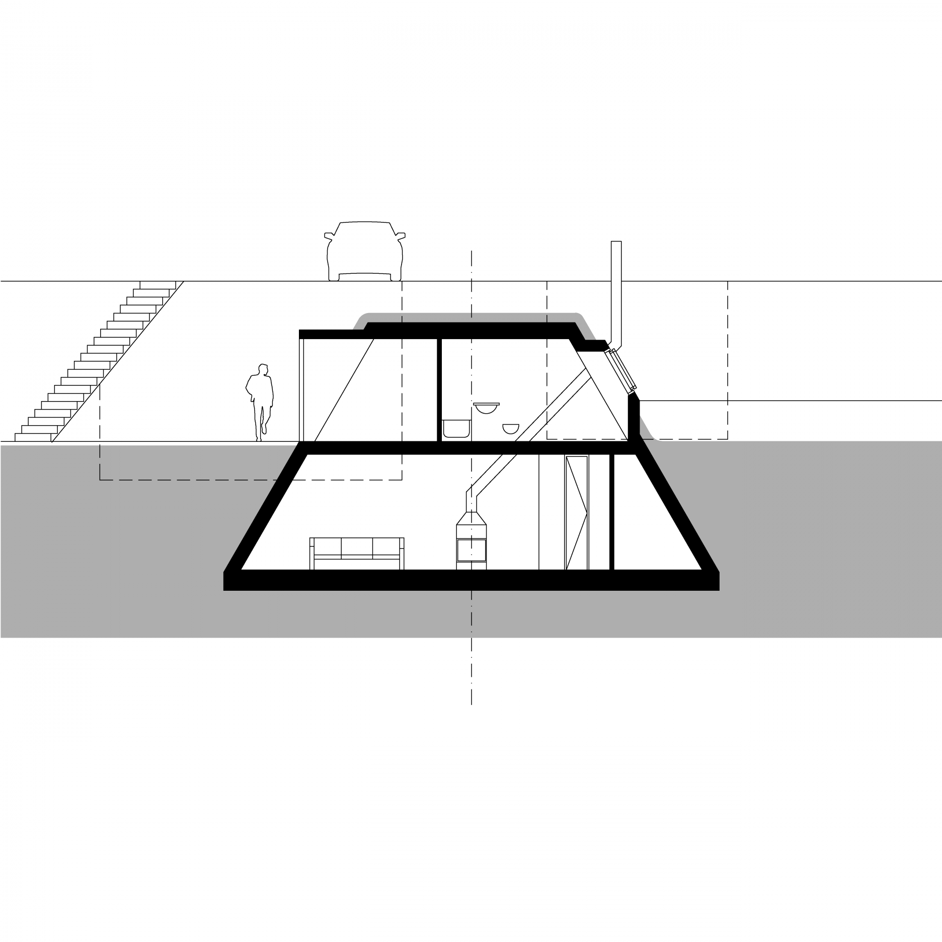 Našim zámerom bolo urobiť jednoduchý, stavebne nenáročný dom, ktorý využíva terénne danosti pozemku a splýva s prostredím. Poskytnúť bývaniu čo najväčšie spojenie s okolitou prírodou. Dom sme umiestnili do svahu pod cestou, aby sme umožnili jeho obyvateľom pozorovať prírodu protiľahlého lesa a rovinatú časť pozemku sme tak uvoľnili pre záhradu.