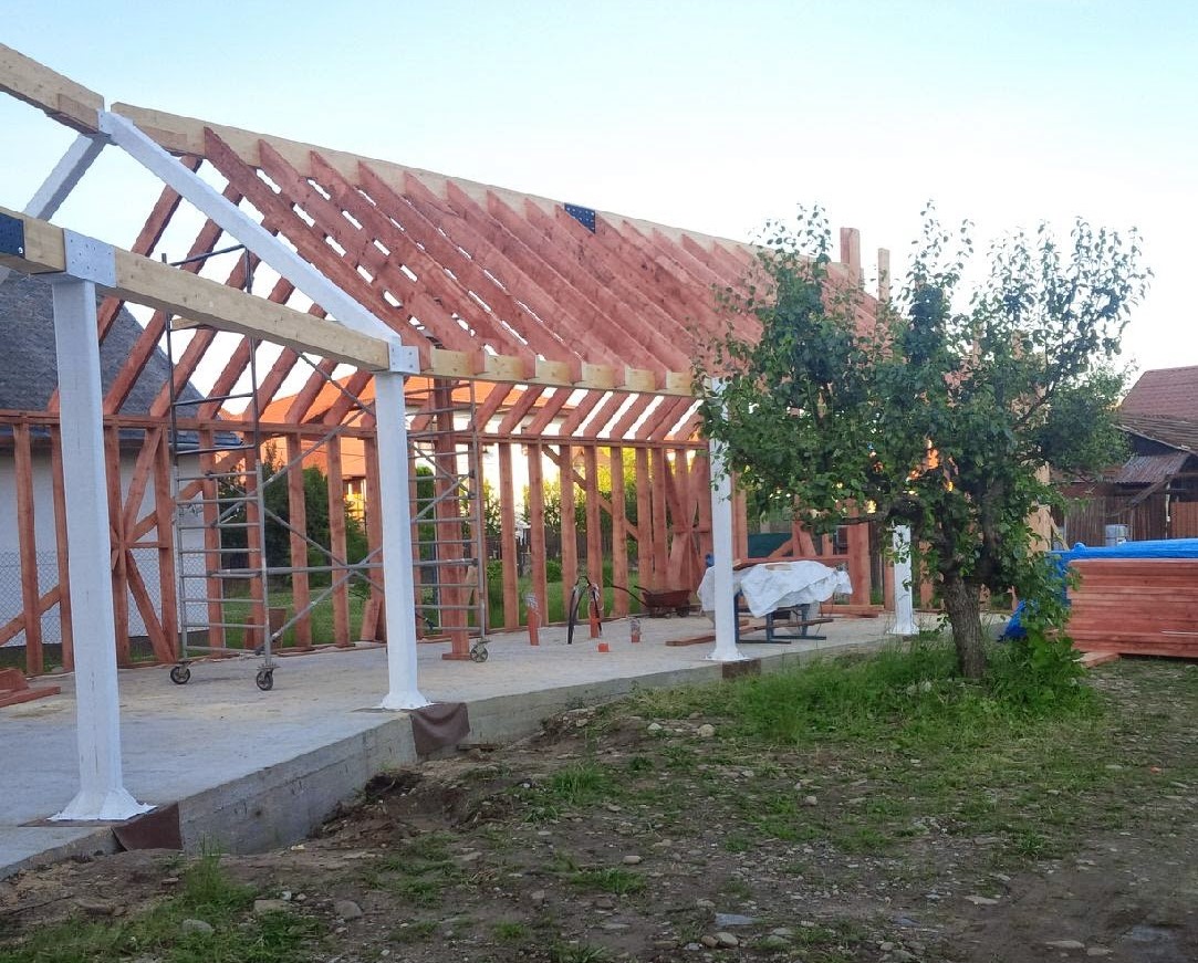 Hlavným konštrukčným a pohľadovým materiálom je drevo, ktoré je typickým materiálom pre stodoly v tejto časti Slovenska. Stodoly sú stále súčasťou viacerých okolitých záhrad a dvorov. Napriek modernému vzhľadu sa tak dom jednoducho začlenil do existujúcej štruktúry.