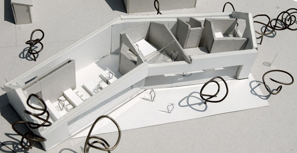 Steny z betónových tvárnic vytvárajú svojím zoskupením dva betónové bloky, nazývané „kocky“, a koncepčne tvoria hlavnú konštrukčnú oporu domu. Tieto kocky sú naplnené rôznymi funkciami a nachádzajú sa tu kúpeľne, technické miestnosti a sklad, časti kuchyne, knižnica, komín a mlynárske schody. Kocky sú oddelené od obvodových konštrukcií, čo opticky zväčšuje priestor, a tiež ponúka voľnosť vo vnútornej organizácii.