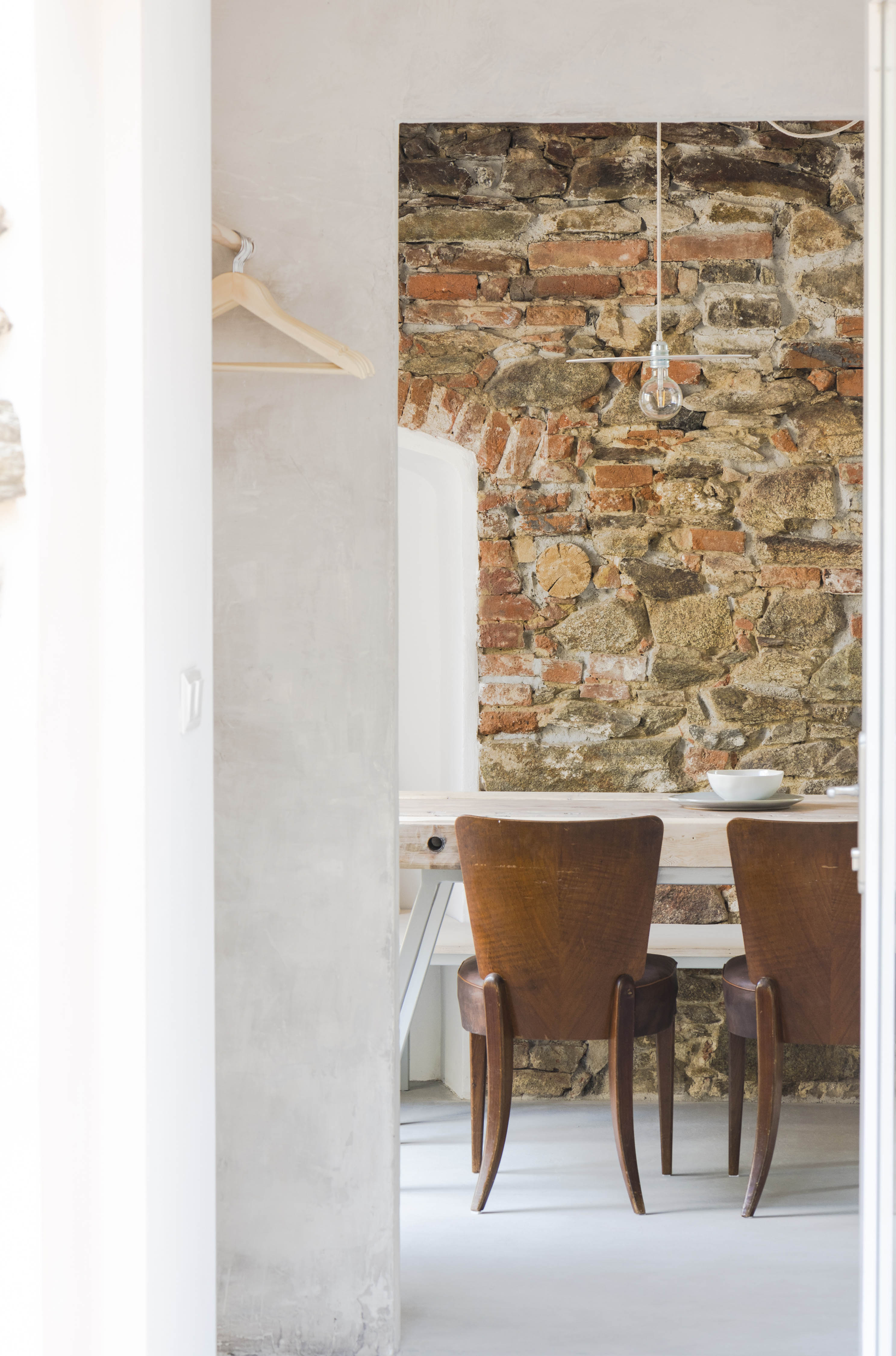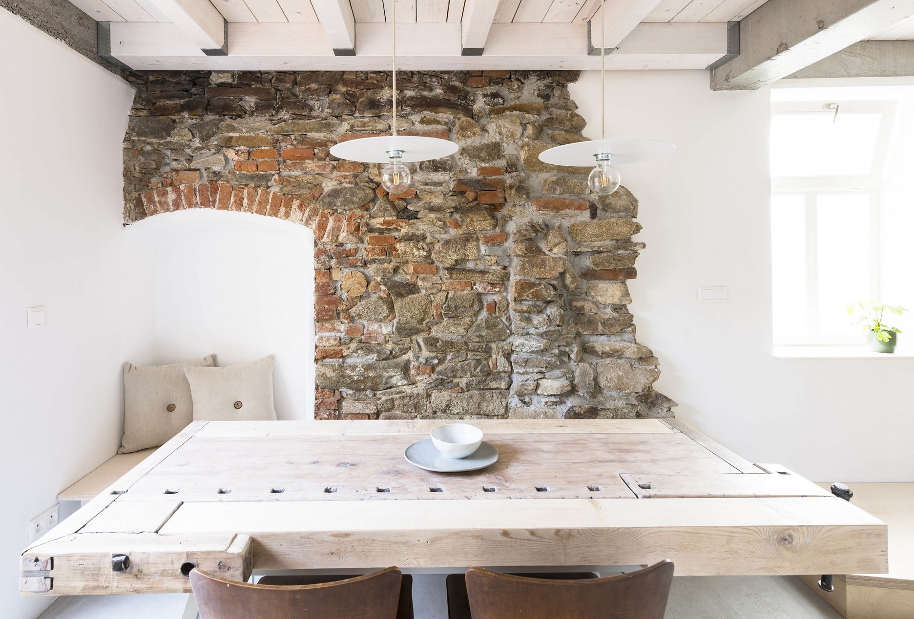 JK: Páči sa mi, že sa tam dá stratiť v čase. A potom sa ešte vždy pristihnem, keď idem na návštevu, že sa pozerám ako Martinova jedálenská lavica v úplne jemnej línii obieha kamene vyčnievajúce z pôvodnej steny.
