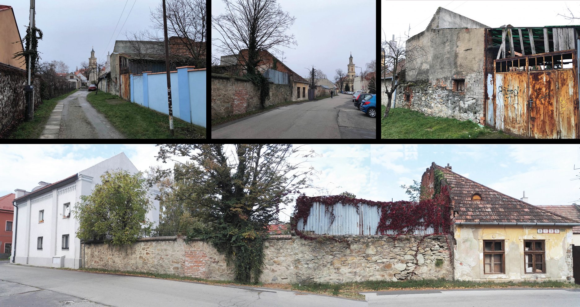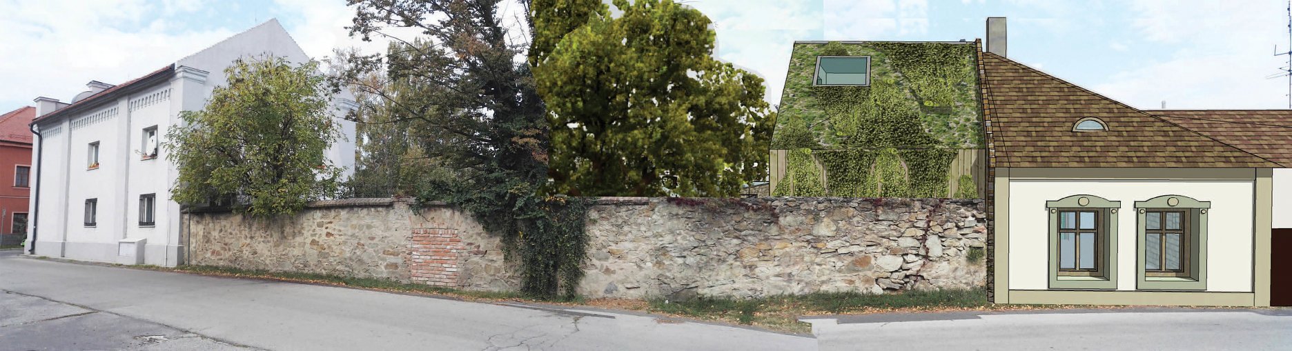 JK: Podrobný prieskum ukázal, ako sa rôzne spoločenské, geografické a fyzické zmeny prejavia na pár metroch štvorcových. Dom z 19. storočia, pristavaný k vonkajšej strane modranskej mestskej hradby zo začiatku 17. storočia, bol pôvodne súčasťou dnes už susedného objektu. Vnútorná strana mestskej hradby ohraničovala priestor patriaci židovskej obci. Záhrada patrila k vtedajšej synagóge, postavenej v roku 1902. Mestská hradba, ktorá rozdeľuje parcelu na dva odlišné svety, bola súčasťou južnej časti pôvodného mestského opevnenia.