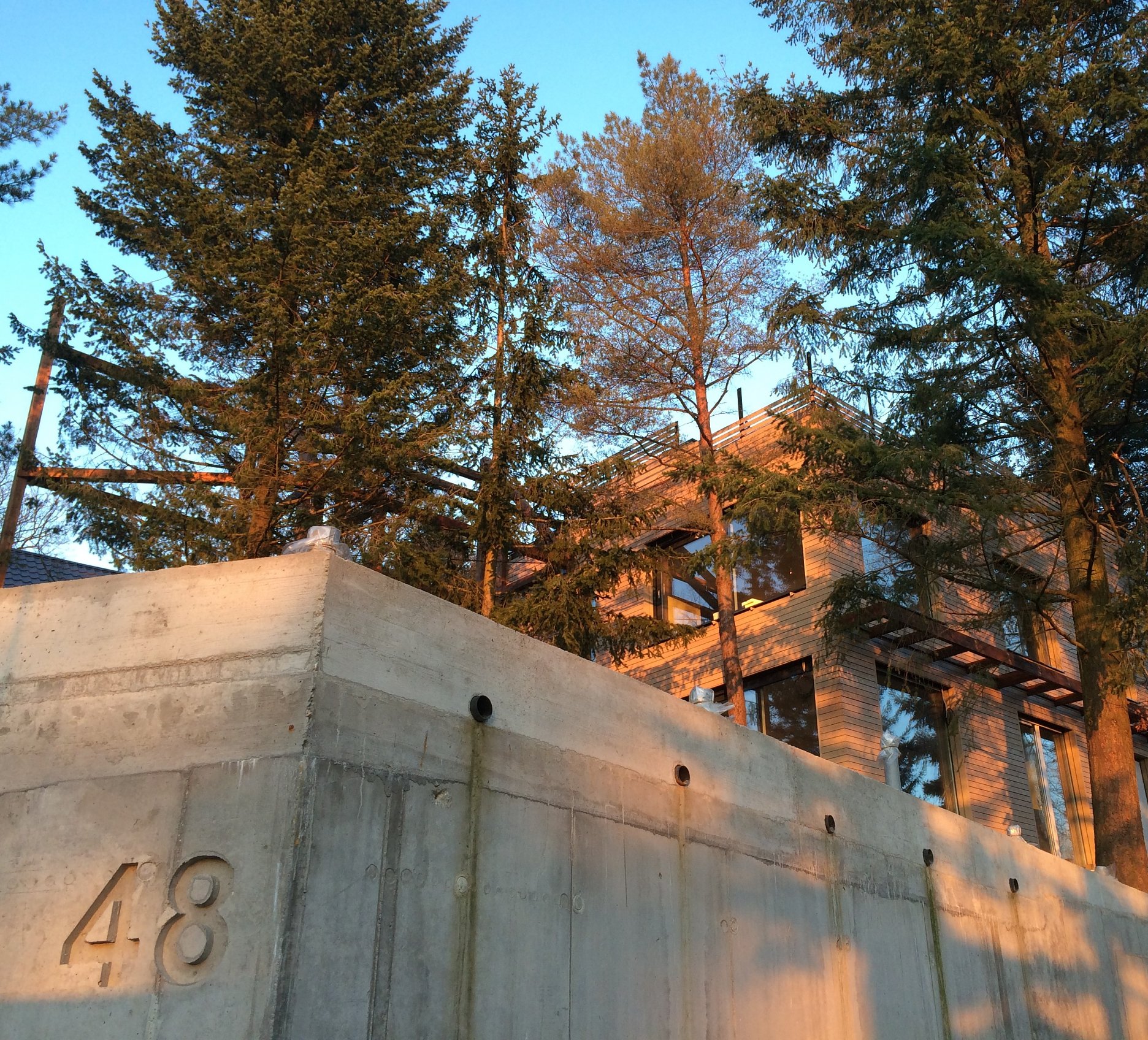 Výškou a zošikmením sa chceli architekti priblížiť okolitým ihličnanom. Logisticky aj fyzicky bolo náročné v tomto teréne manipulovať s drevenými panelmi a nezničiť pritom žiadny strom. Tu sa ukázala výhoda, keď je architekt investorom, stavebným dozorom a stavbyvedúcim zároveň.