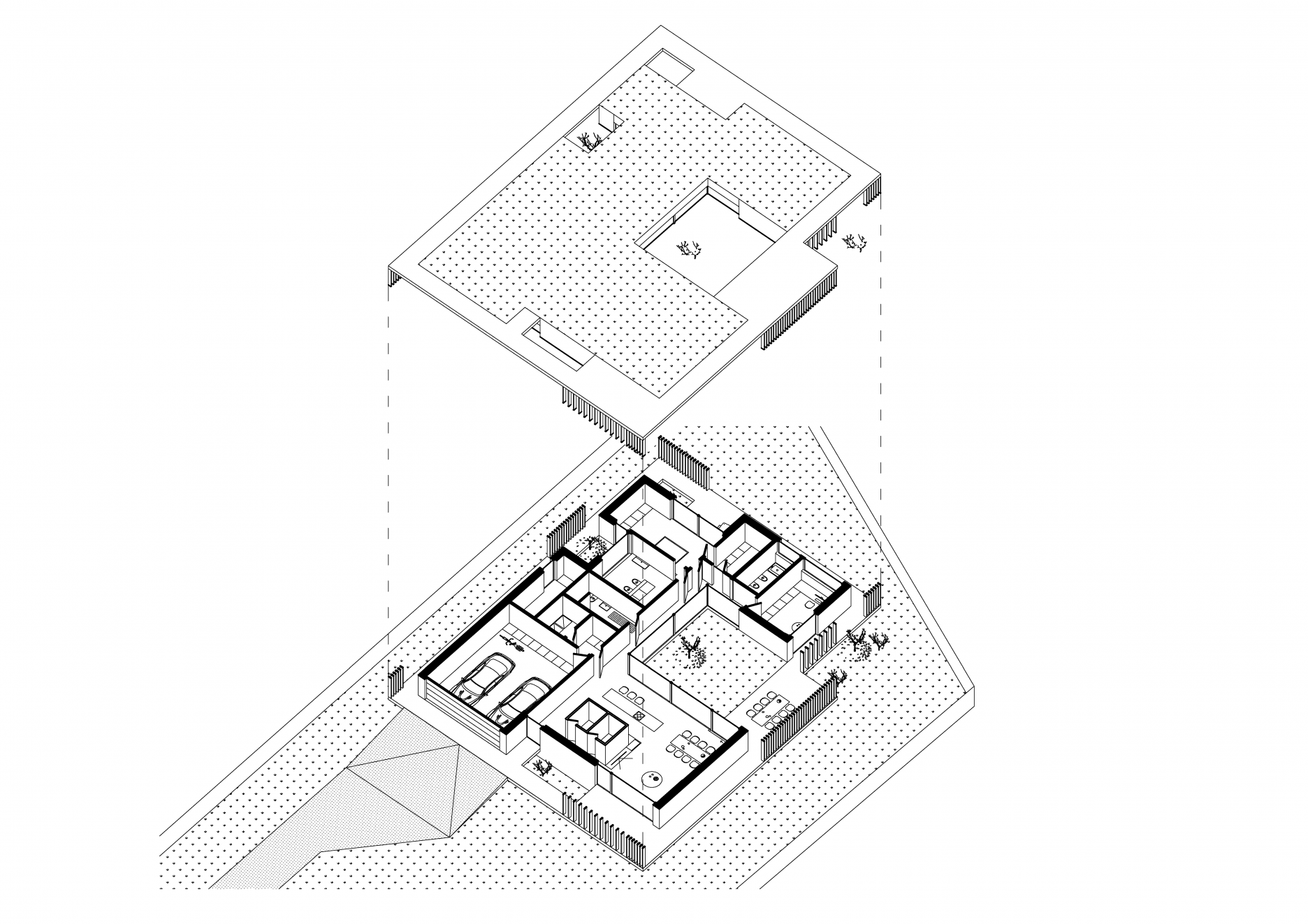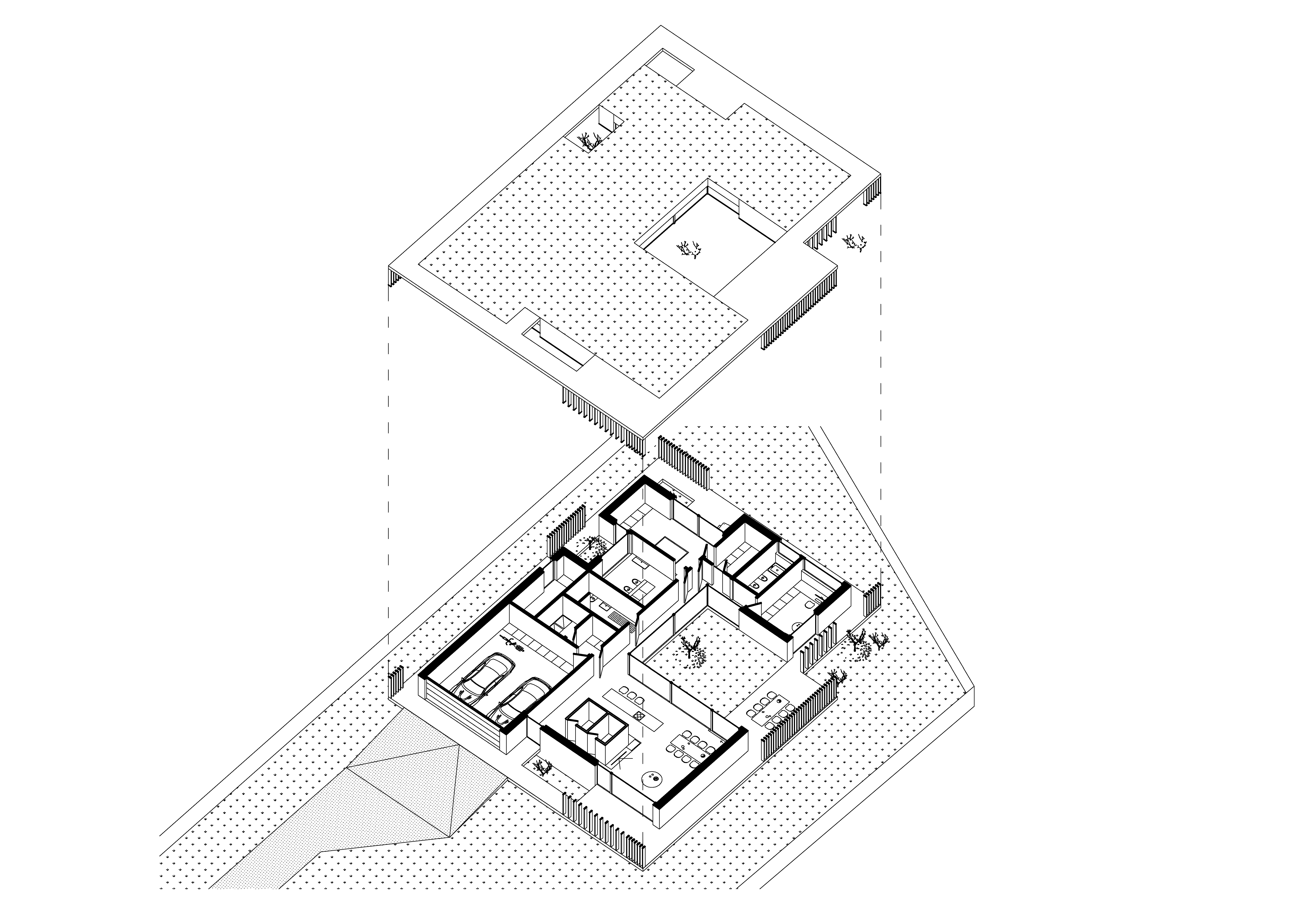 Rodinný dom v obci Borinka navrhli architekti Daniel Kubiš a Martin Plošický pre dvojčlennú rodinu. Pôdorys tvaru “U” plynie okolo zeleného átria. Do dispozície vstupuje zeleň aj prostredníctvom menších výrezov, ktoré vedú denné svetlo do hĺbky dispozície, pri zachovaní požadovaného súkromia.