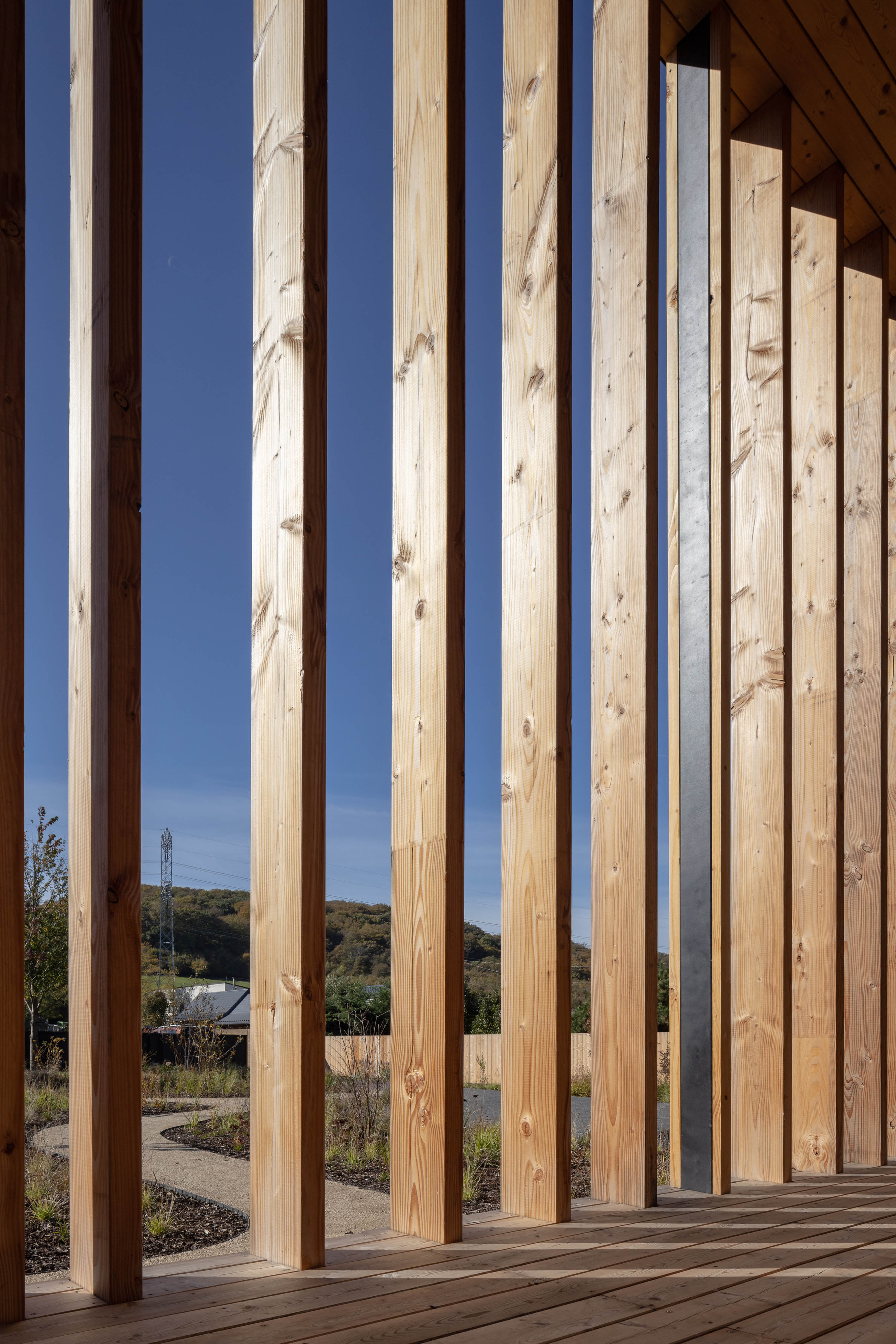 Drevená konštrukcia stavby z CLT panelov je zateplená prírodným izolačným materiálom - drevovláknom. Pohľadové drevené steny striedajú plochy s hlinenou omietkou.