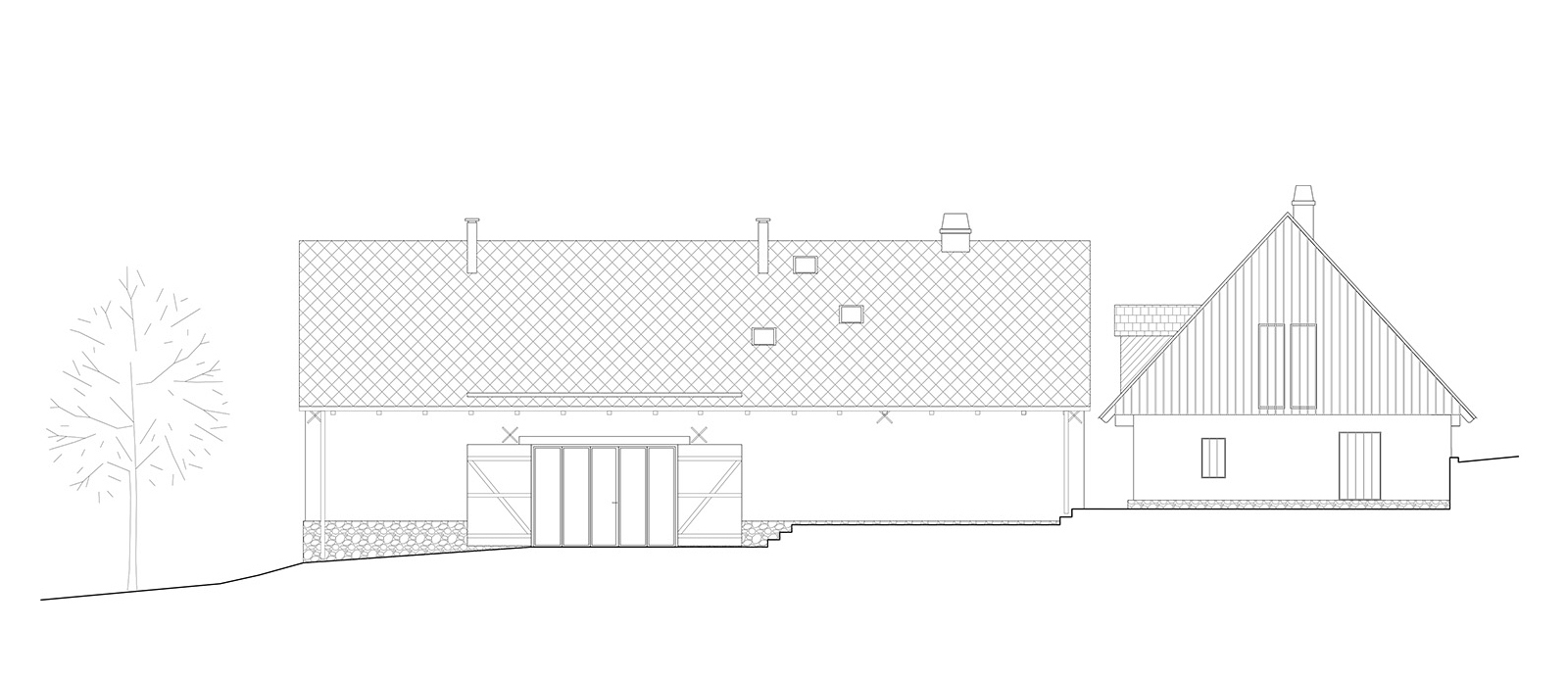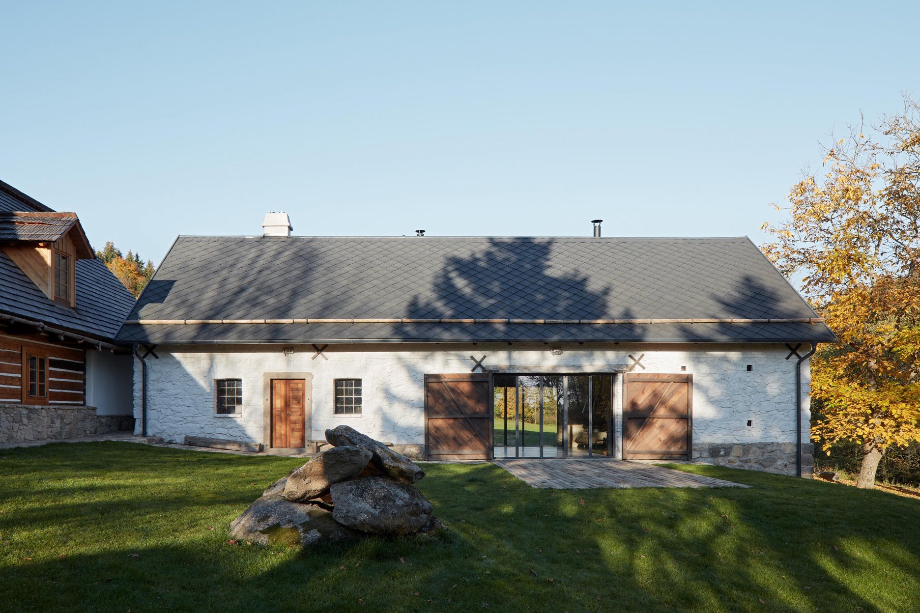 Stodola je doplnková stavba - slúži ako letná obývačka, priestor pre hostí a technické zázemie. Náplň sa odrazila aj na poňatí rekonštrukcie, ktorá je menej “formálna”.