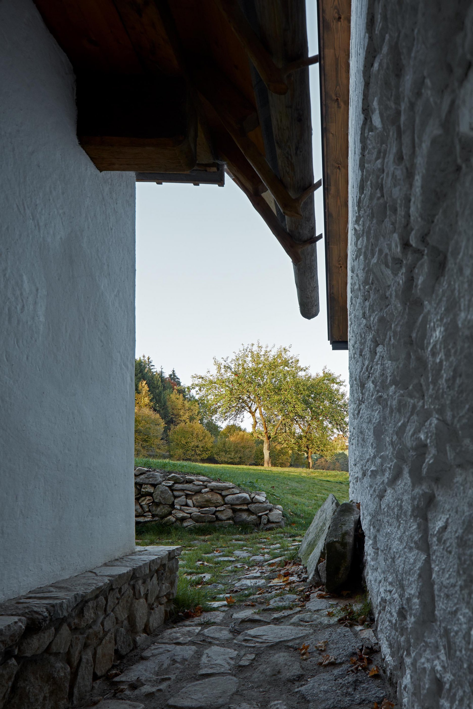 Prírodné materiály ako drevo, kameň a hlina a ich ručné opracovanie vnášjú do stavby nedokonalosť, ktorá sa stáva zásadným aspektom projektu. Návrh už od počiatku pracuje s prírodnou patinou a starnutím.
