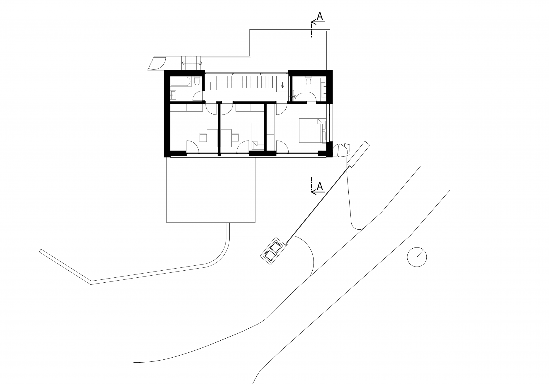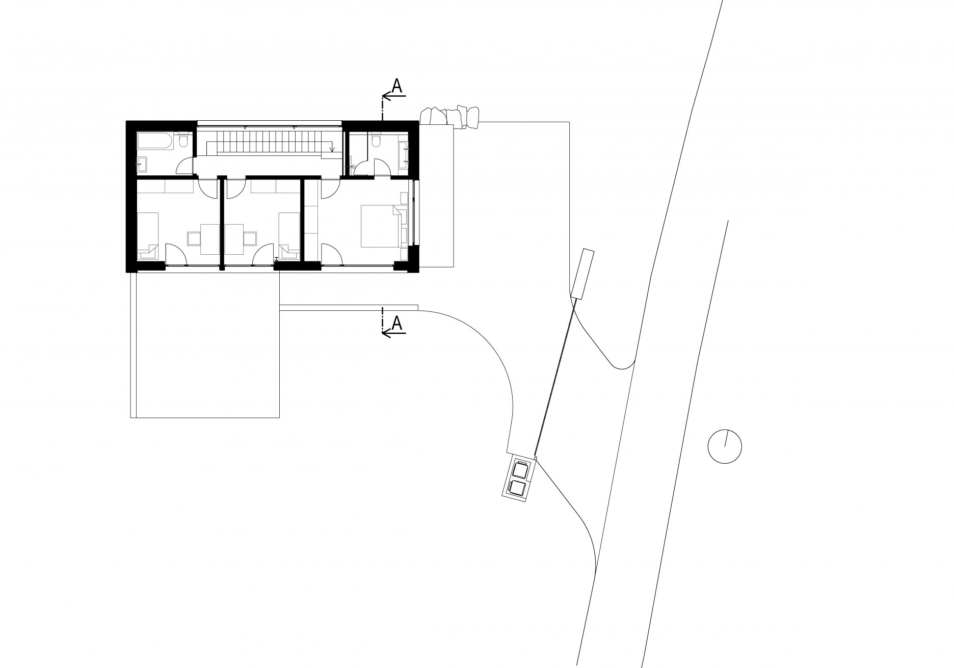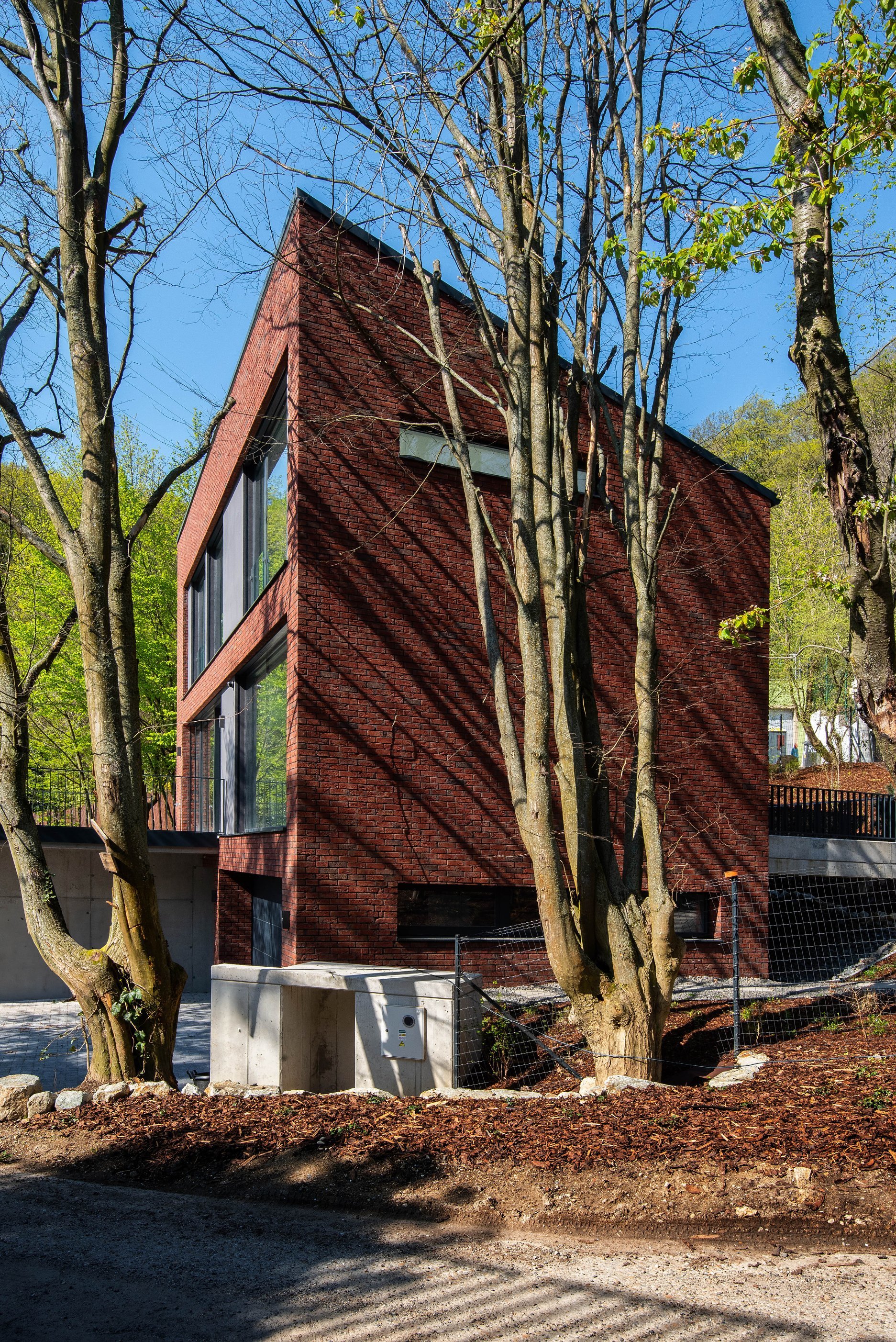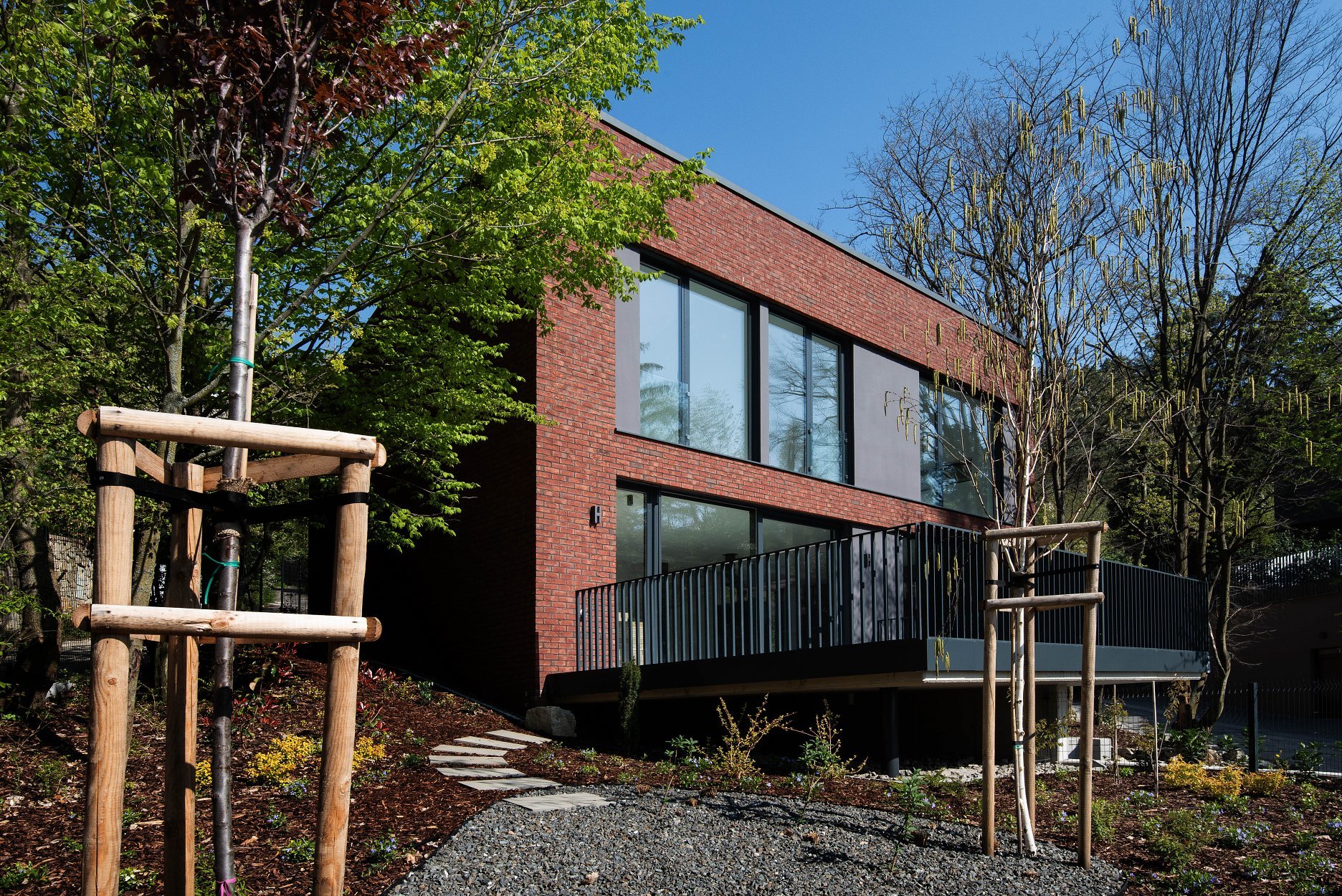 Dva kompaktné lapidárne tvary sú obalené lícovou tehlou a tvoria harmonický celok, vymykajúci sa územiu s nesúrodou rozmanitou zástavbou. Šmondrk ostal verný svojim architektonickým zásadám. Vždy ponúka jednoduchý harmonický koncept (mnohí vieme, že cesta k jednoduchosti obyčajne nebýva jednoduchá), ktorý podporuje vzájomne svetelne priaznivé natočenie chát, typické veľkorysé umiestnenie veľkých okien, len biele steny čiastočne nahradil tehlou. Pultovú strechu prekrýva plechová krytina.