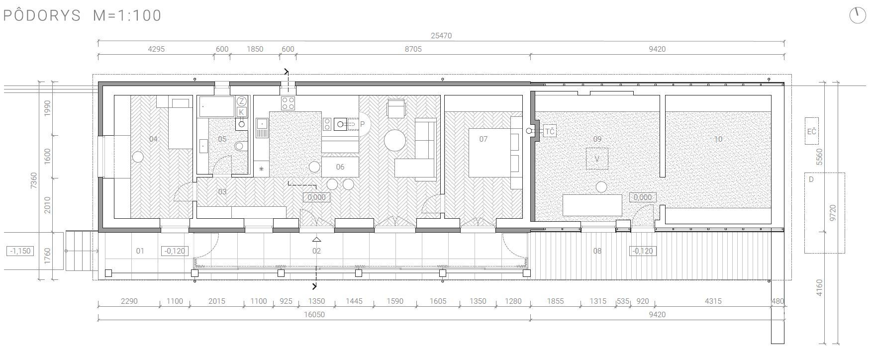 Dispozične sa objekt mení na trojizbový s využitím pôvodnej časti domu. Boli zachované všetky komíny a poloha väčšiny okien. Nové materiály boli volené trvácne, s nižšou zabudovanou energiou.
