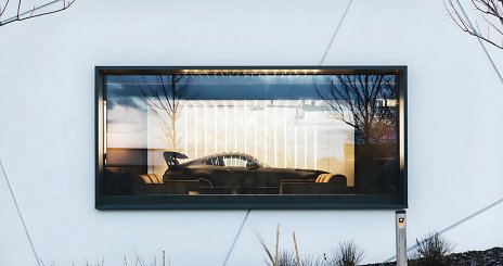 Samotný vjazd do garáže automobilmi je situovaný tak aby nebol viditelný. Fásadu celého objektu tvoria len dve presklenia osadené do bezrámovej konštrukcie a zvyšok je pokrytý korténovym plechom, ktorý je použitý aj v okolí na umeleckých dielach.