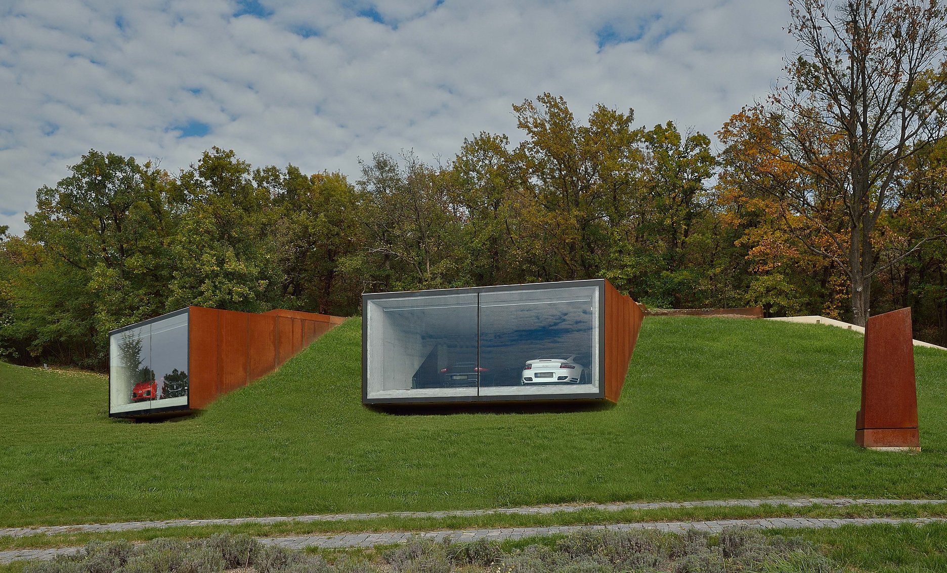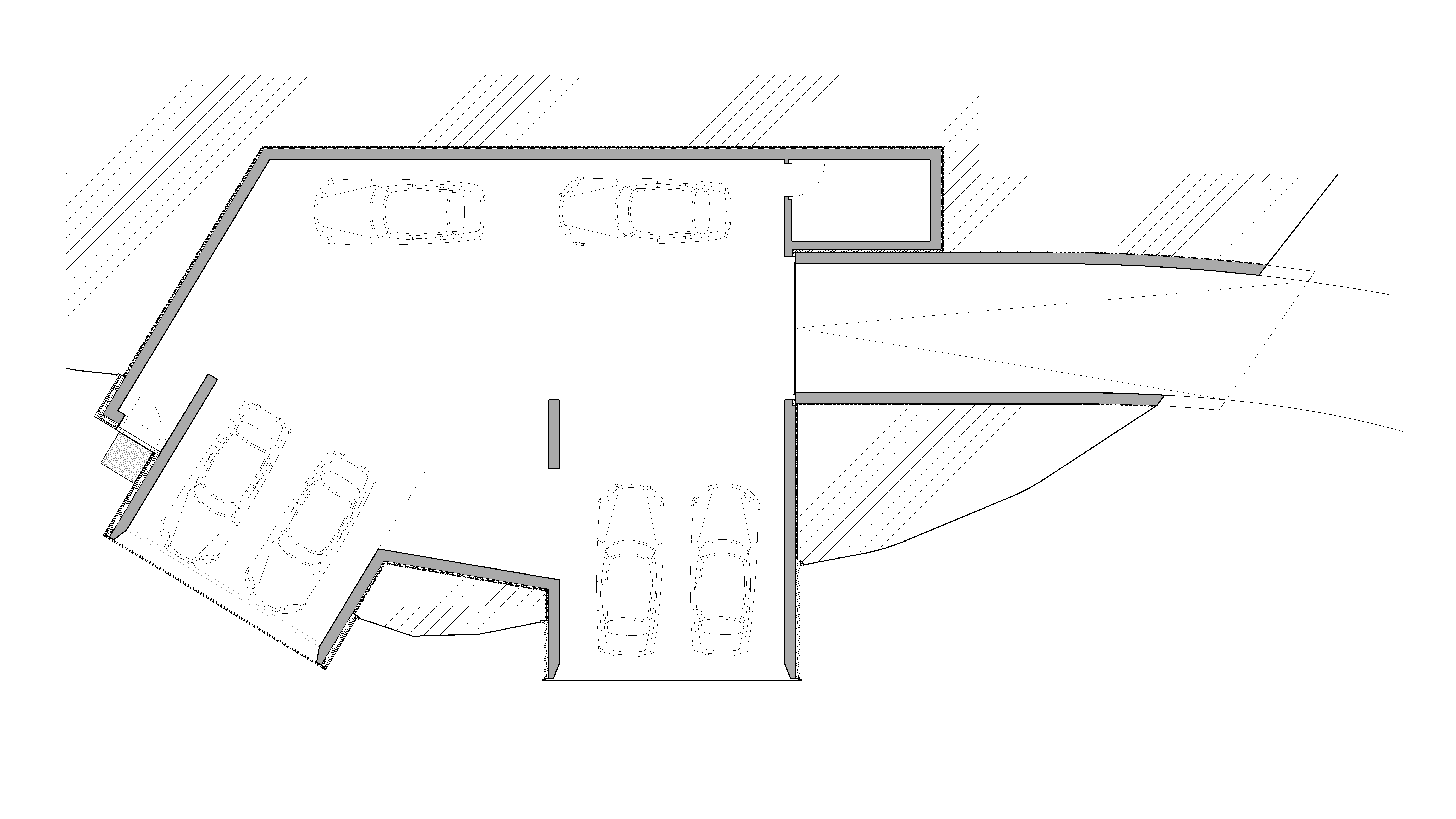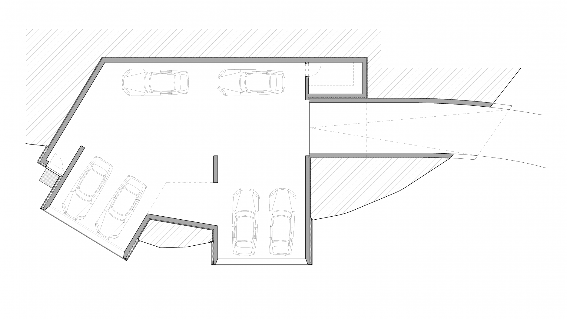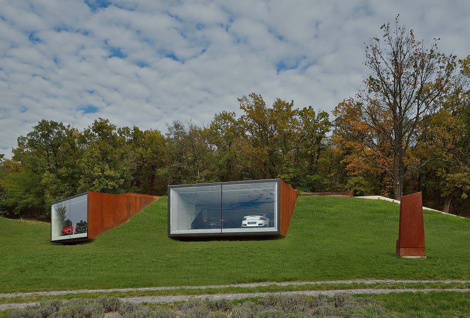 Zadanie projektu bolo vytvorenie priestoru pre uskladenie 6-8 zberatelskych áut s možnosťou príjemneho posedenia a umiestnenia umeleckých diel v tomto priestore. Keďže sa pozemok nachádza pod horou v blízkom kontakte s rodinnými domami, náš návrh sa snažil zachovať svoju nenápadnosť a podľa možnosti väčšinu obostavaného priestoru zasadiť do svahovitého terénu. Na druhej strane sme chceli investorovi dopriať zážitok z výhľadu na jemne svahovitý terén v okolí a možnosť pokochať sa pohľadom na jeho autopark pri príchode.