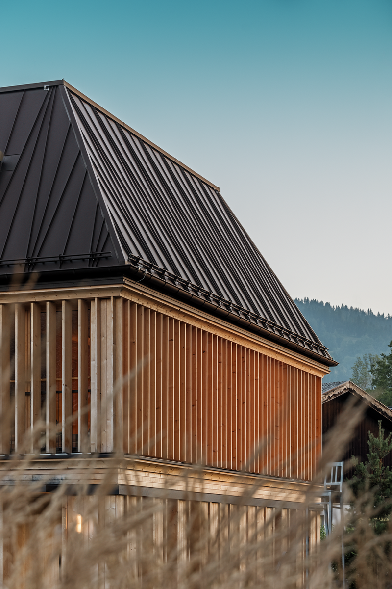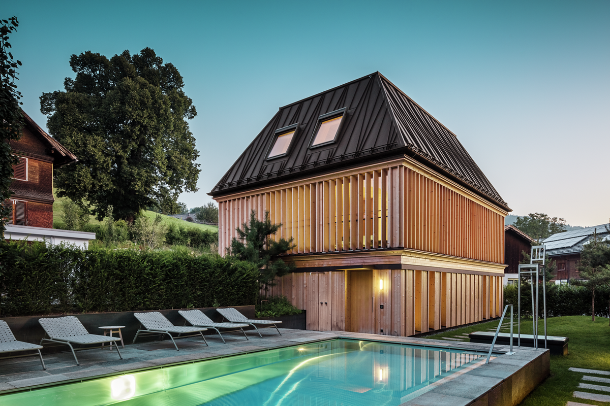 Objekt z dielne ateliéru NONA Architektinnen rozširuje komplex o samostatný wellness objekt. Stavba je súčasťou súboru budov situovaných na pozemkoch bez prísne určených hraníc. Architektonický návrh sa snaží o začlenenie novotvaru do prostredia obce.