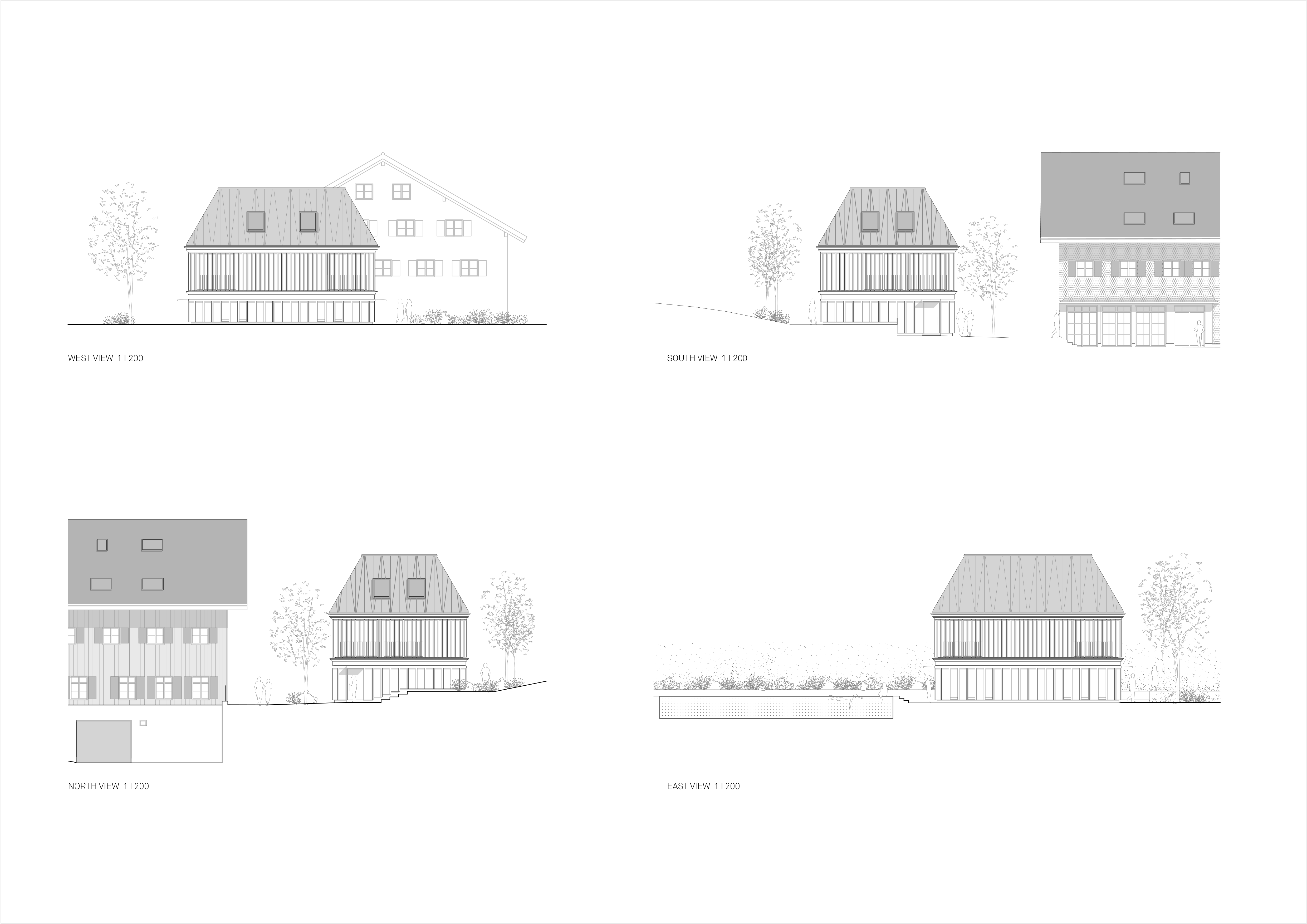 Budovy hotelového areálu sú osadené v zeleni bez plotov či pevných hraníc medzi jednotlivými pozemkami. Tento otvorený charakter sa premietol aj do návrhu novej stavby. Pohyblivé drevené lamely na fasáde umožňujú meniť mieru otvorenosti smerom k okoliu. Objekt tak môže fungovať ako uzavretý celok, alebo priestor vo vizuálnom spojení s exteriérom.