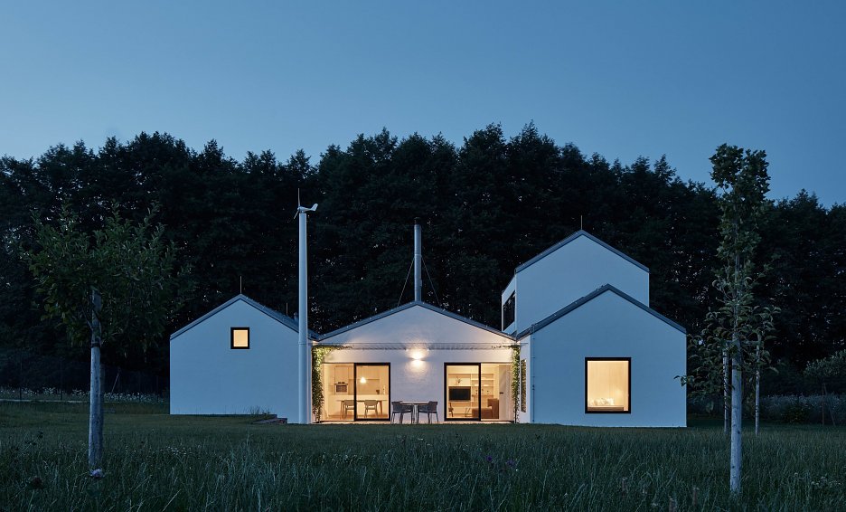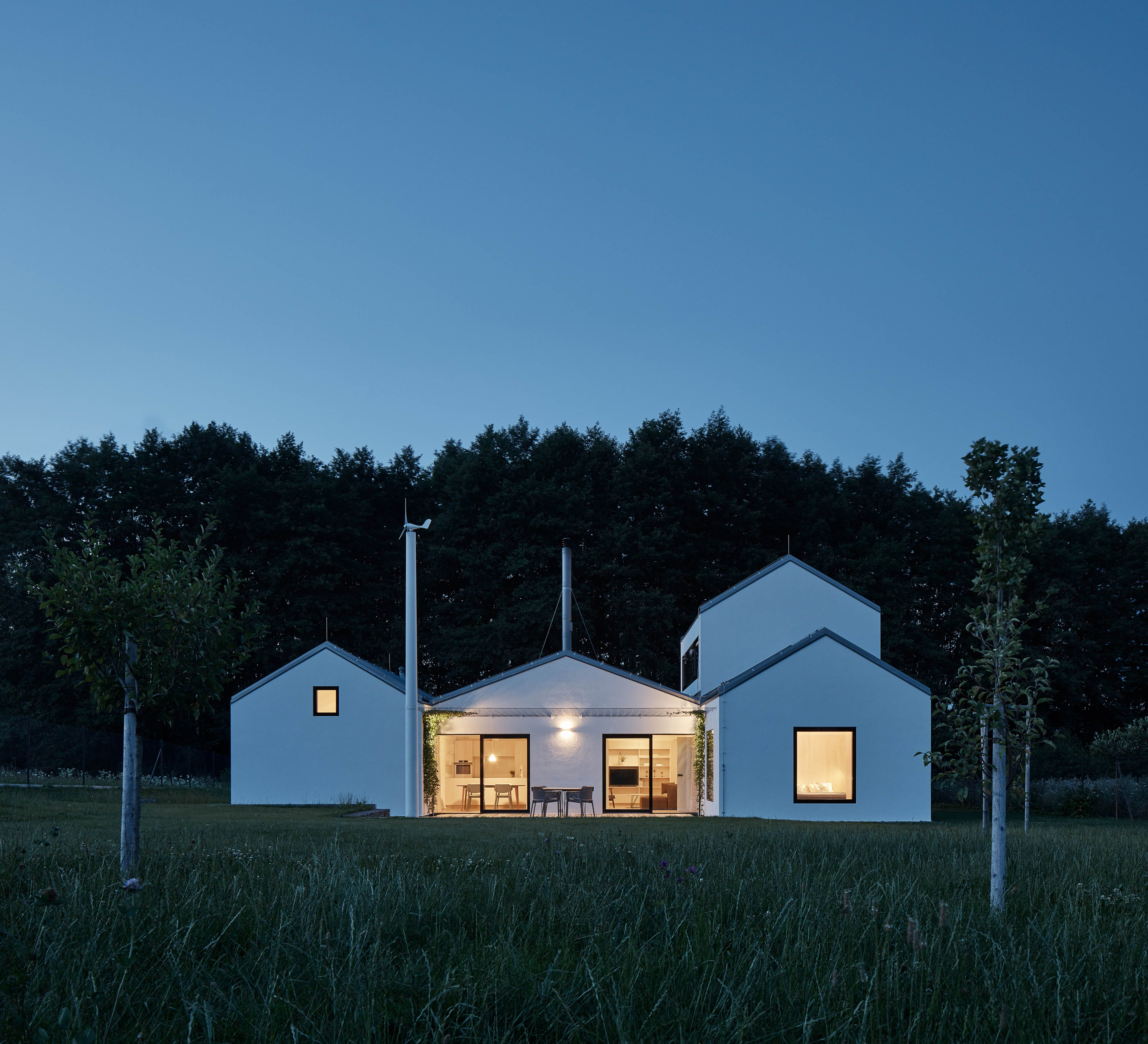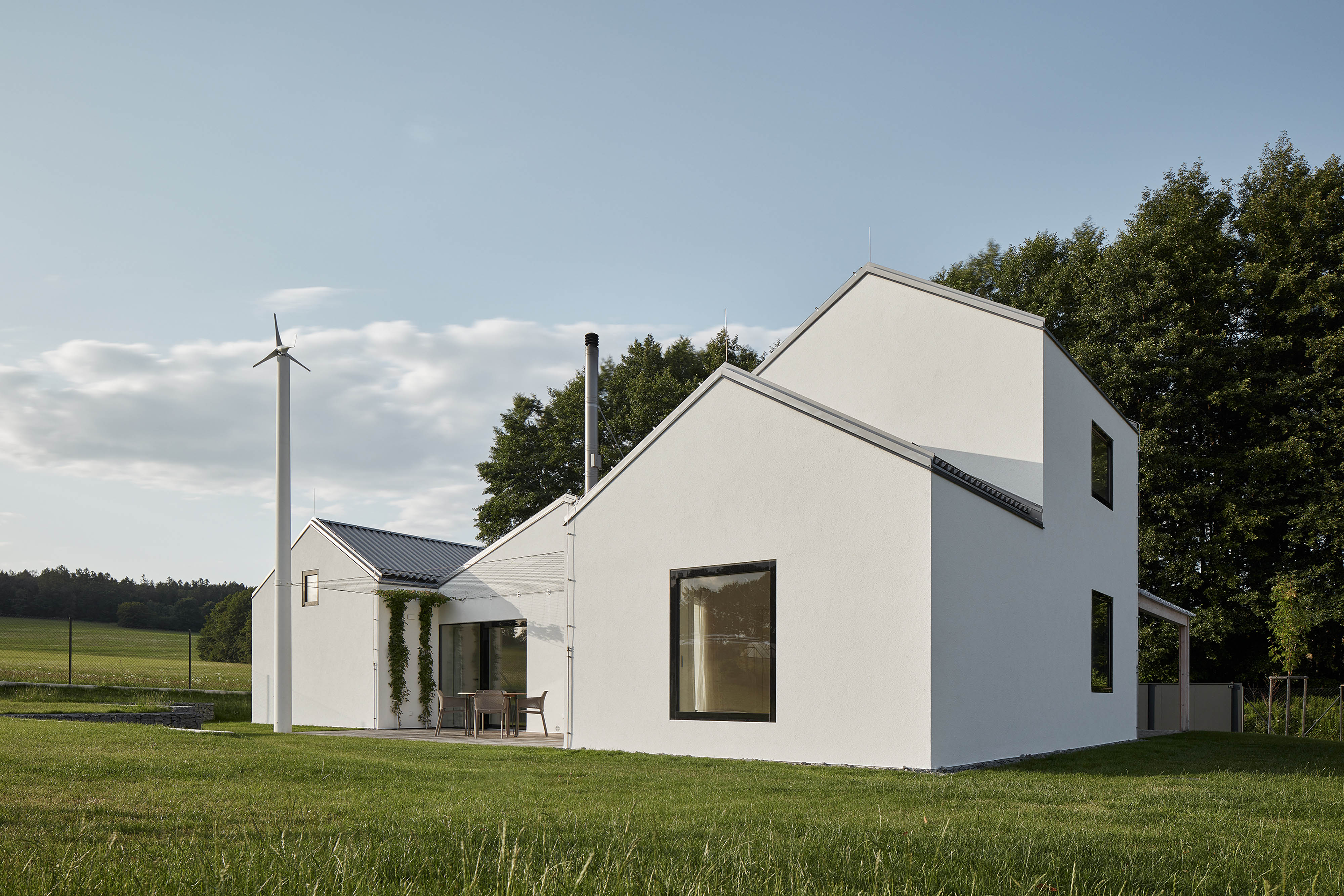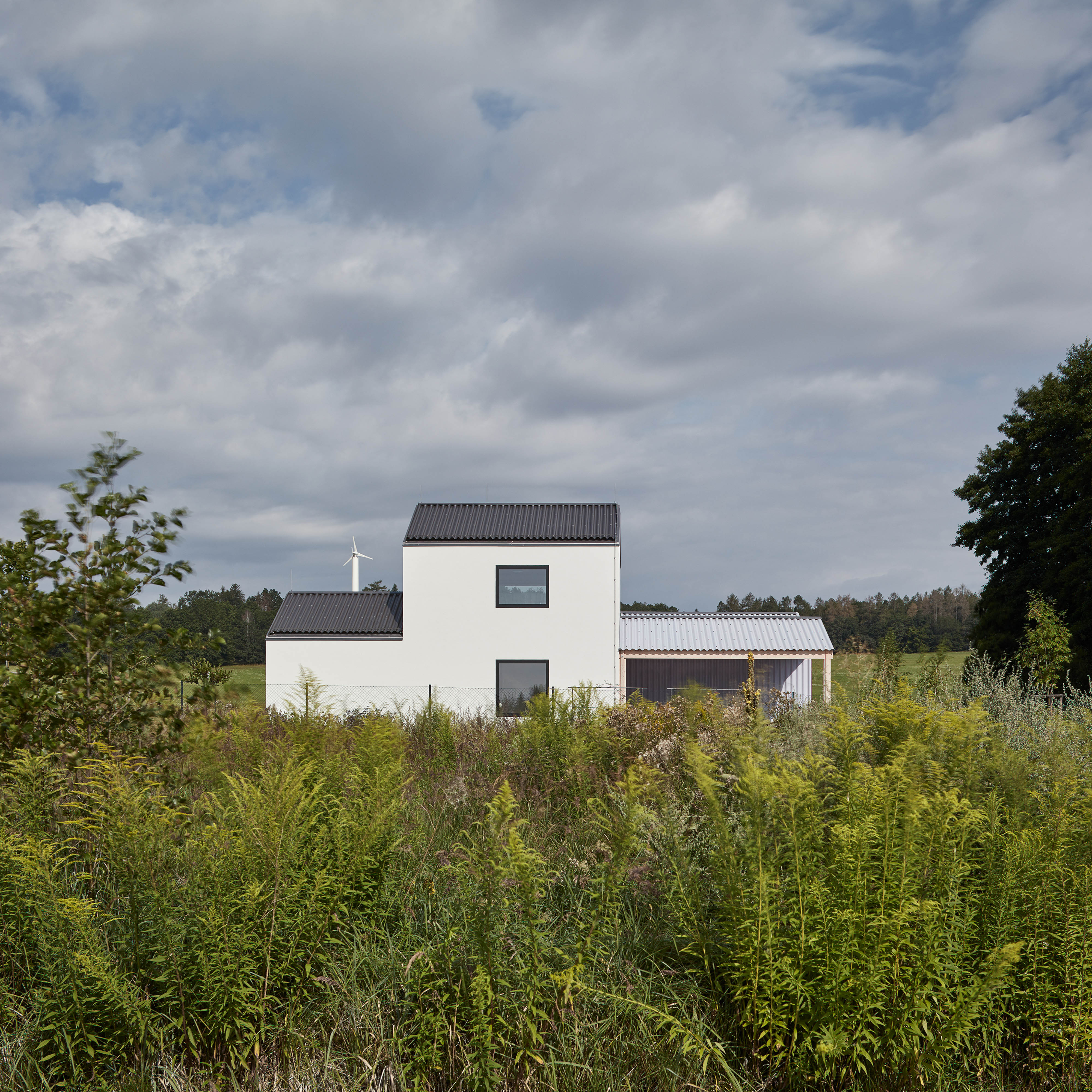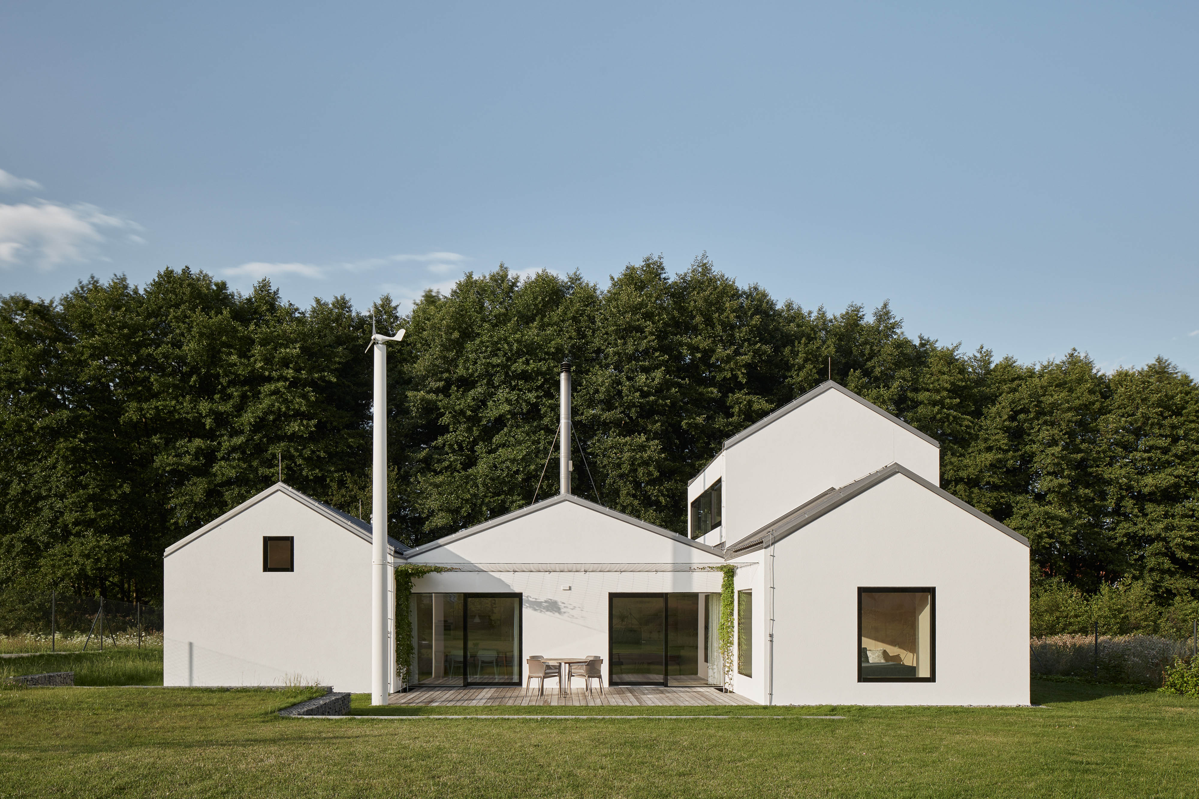 V zvlnenej krajine stredných Čiech vyrástol víkendový dom pre tri generácie. Rodinné sídlo stojí doslova na zelenej lúke, neďaleko hája rastúceho na starej medzi. Architektonický koncept je založený na adícii niekoľkých menších objemov, ktoré slúžia špecifickému účelu. S podobným konceptom sme sa stretli napríklad v slovenských Budmericiach, alebo Lužiankach. Výsledkom je sídlo, v ktorom rodina spoločne trávi leto, alebo víkendy.