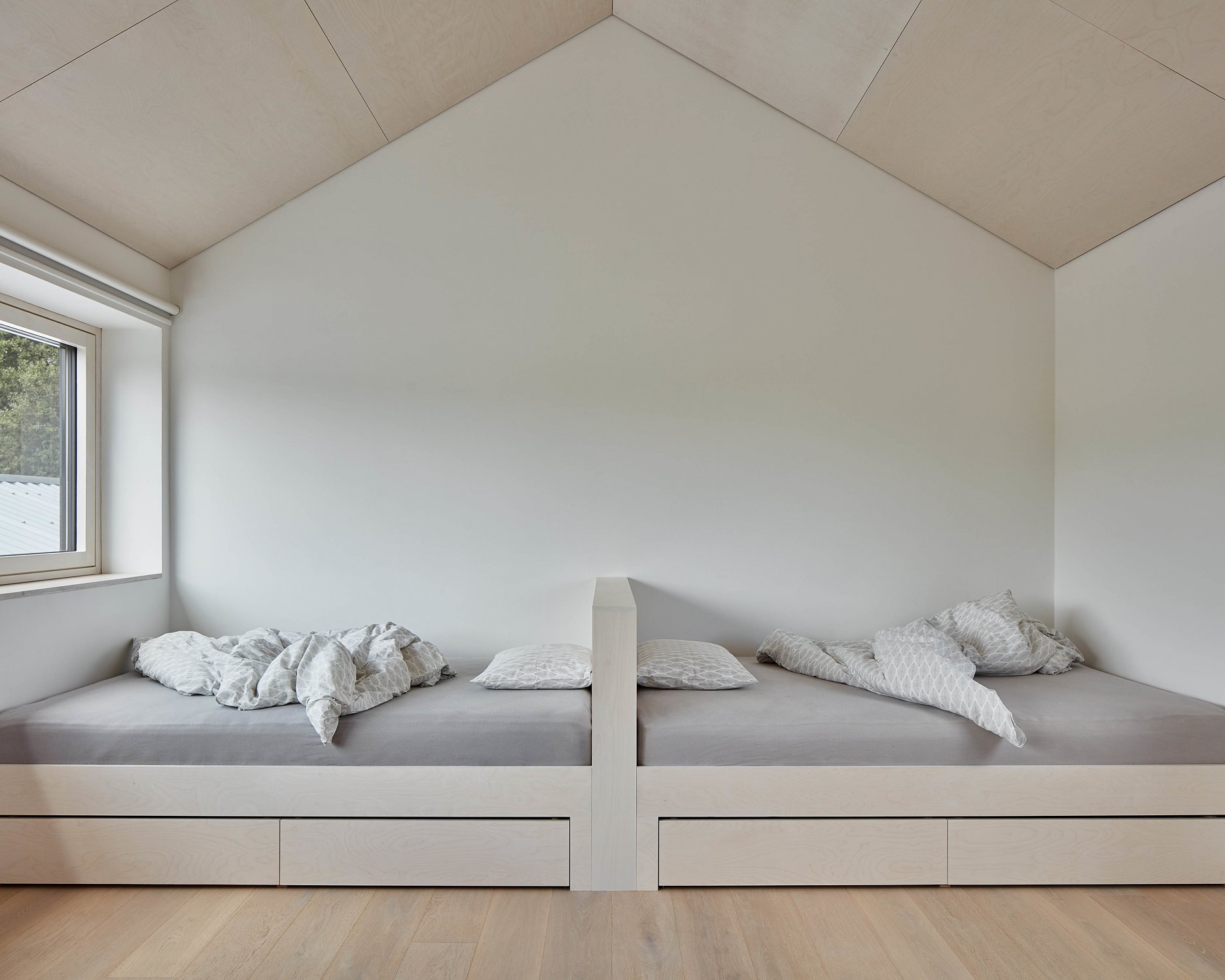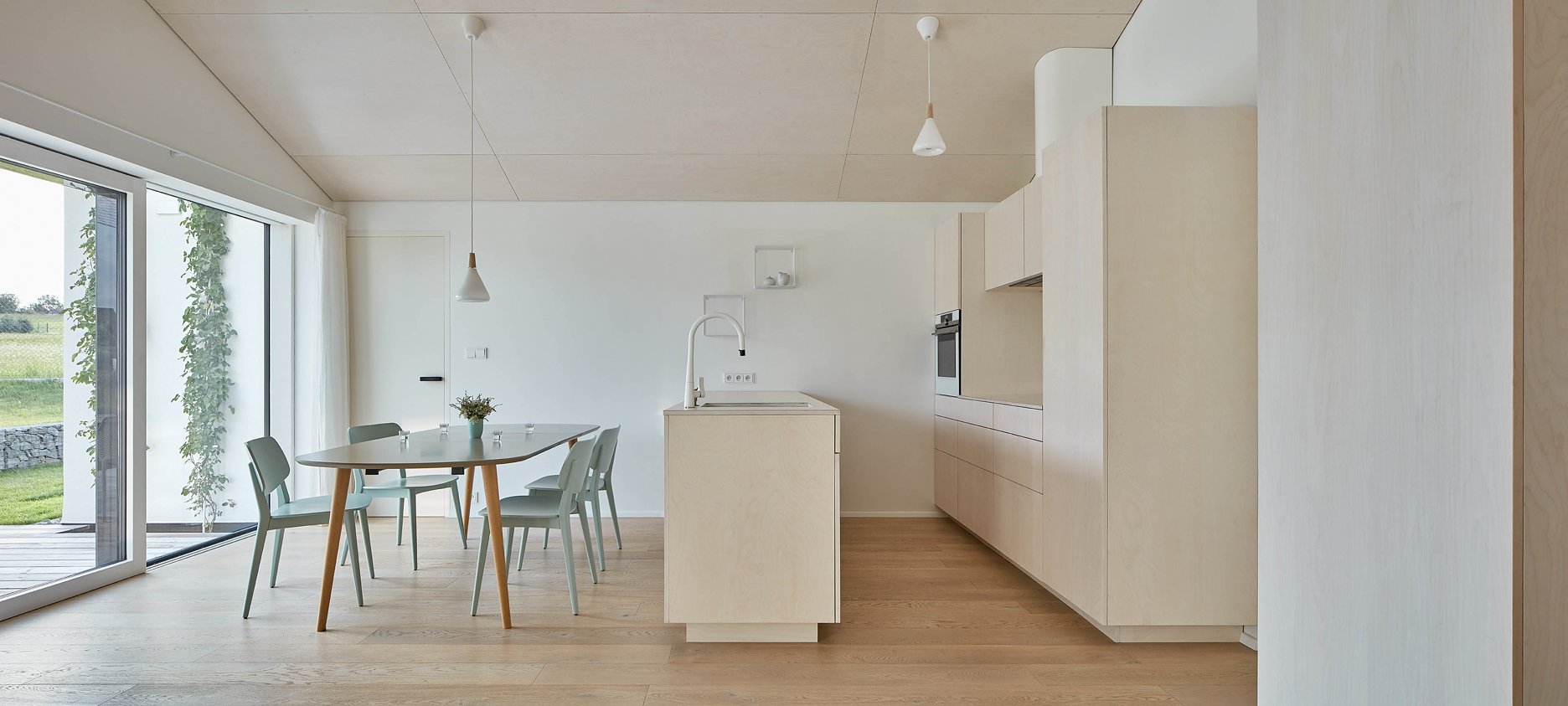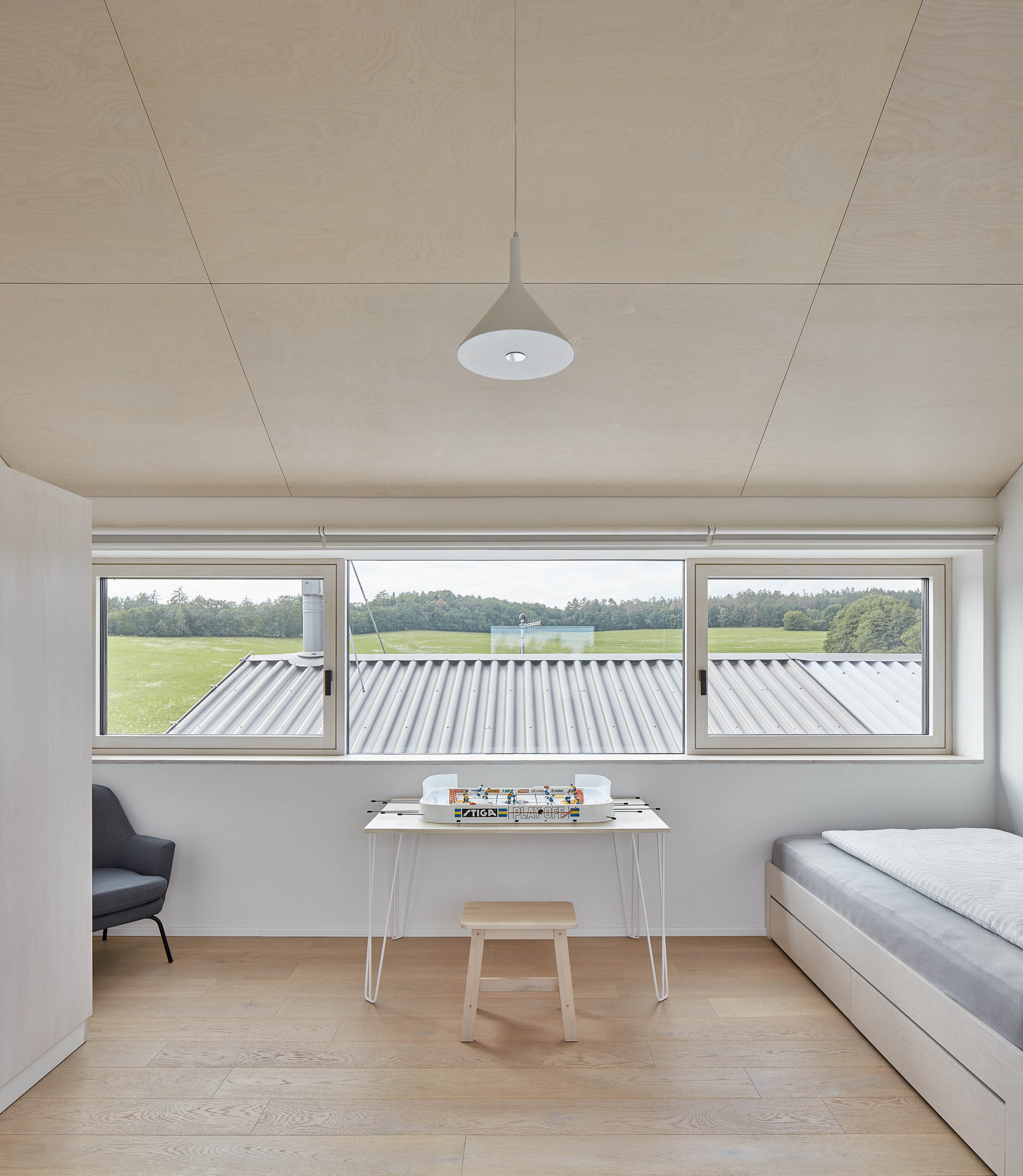 Okná zalícované s vonkajšou hranou fasády dodala moravská firma JÁNOŠÍK, ktorá tento systém vyvíjala práve v spolupráci s ateliérom DDAANN.
