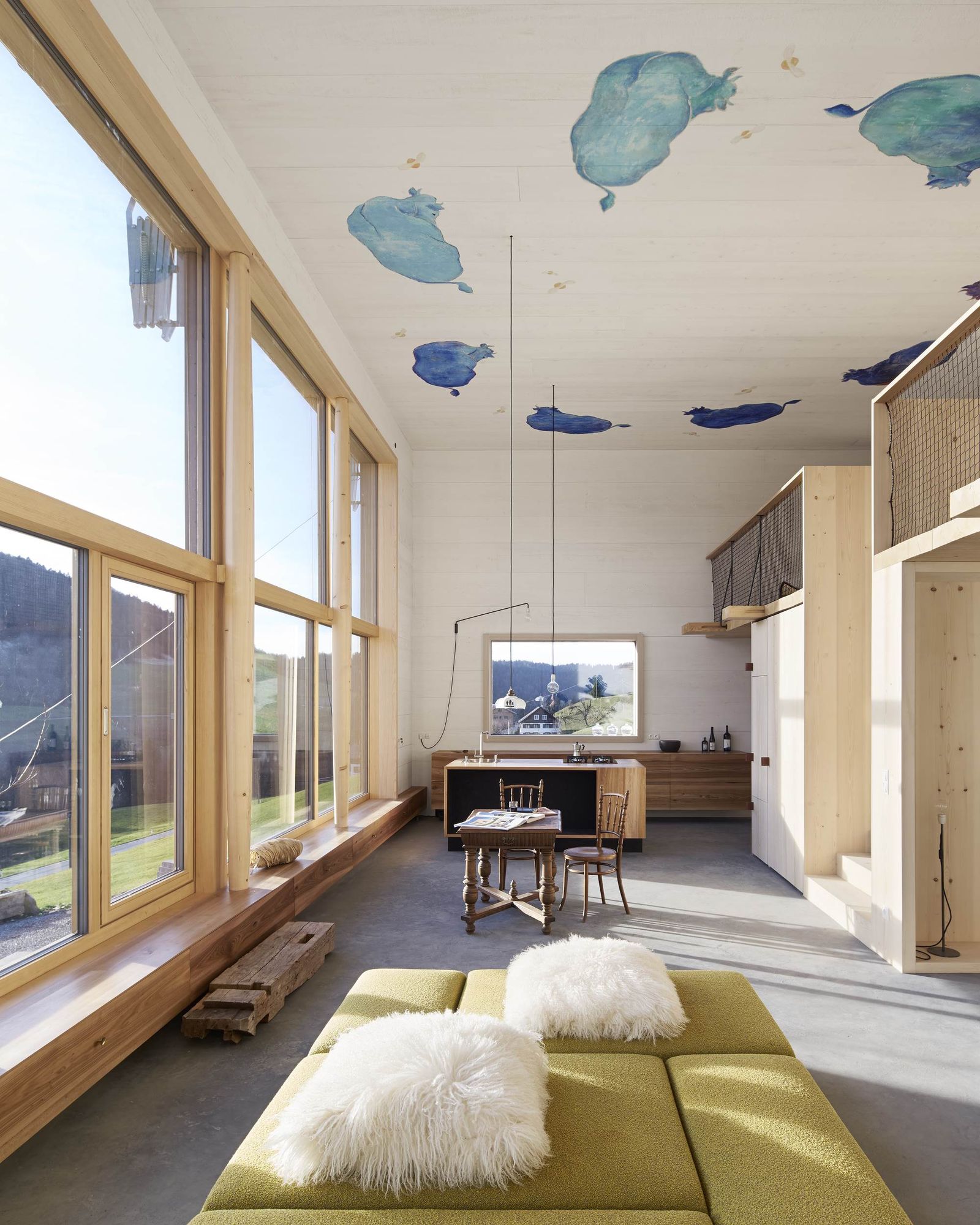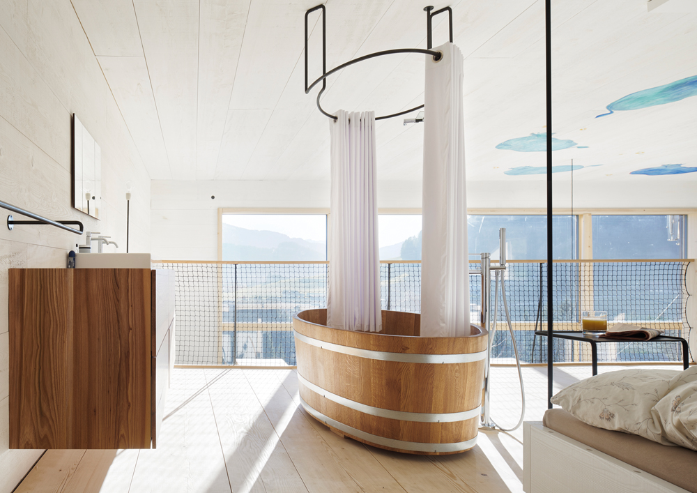 Šindle na šikmej streche sú v rámci miestnej tradície vyrobené z trvácneho smrekovcového dreva. Jedľové drevo je použité ako obklad na fasádach, drevo z limby s vysokým podielom živice zas zabezpečuje trvácnosť zábradlia.
