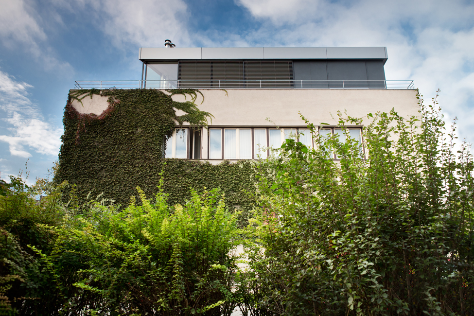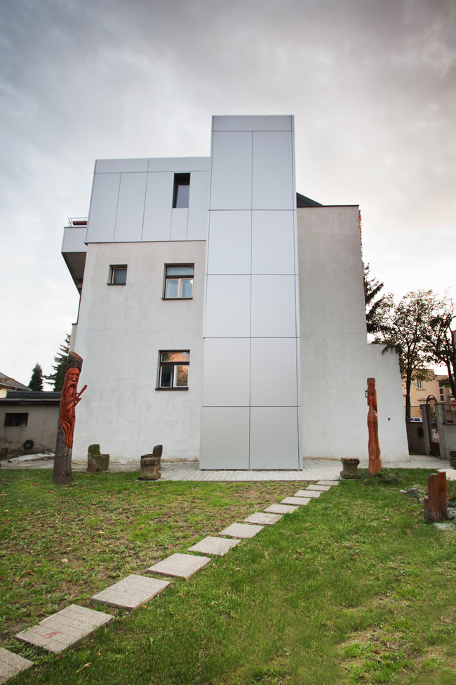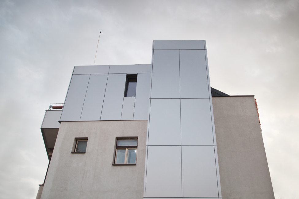 Pôvodný koncept počítal aj so zastavaním časti záhrady jednopodlažnom pavilónom s obytnou funkciou, ktorý sa bude možno realizovať v ďalšej etape. Bytové priestory na treťom poschodí nadstavby si vyžiadali umiestnenie výťahu. Jednoduchá horizontálne nadstavba s vertikálou výťahu v severnej časti obopína pôvodný dom a tvorí minimalistický rám historickému objektu. Spoločne tvoria obe časti objemovo harmonický celok s materiálovým kontrastom v použití skla a hliníkových panelov k pôvodnej štukovej fasáde.