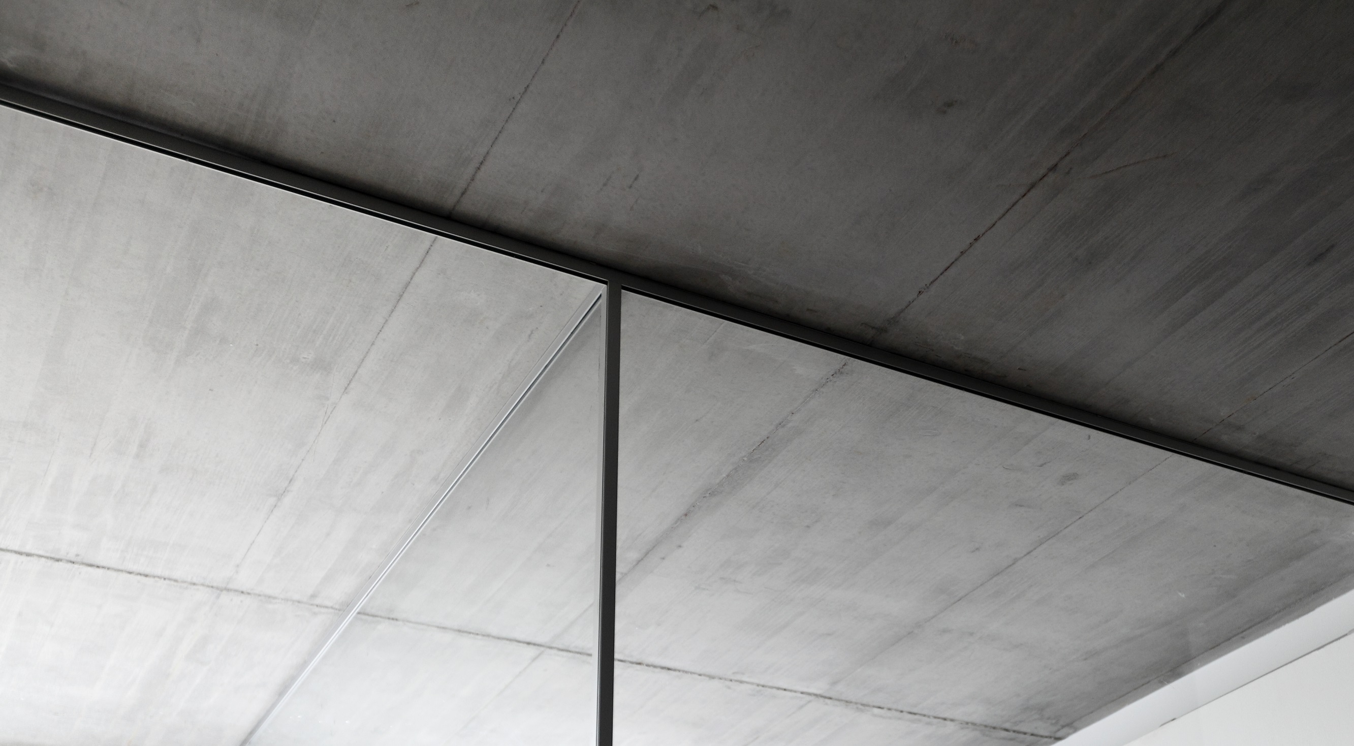 Dom má čistú dispozíciu a veľké vnútorné rozpony bez stĺpov. Stropná doska je monolitická železobetónová, s priznaným betónovým povrchom. Aby bol efekt pohľadového betónu na strope maximálny, na šalovanie stropu boli použité nové, ešte nepoužité debniace dosky. Výsledkom je pravidelne dokonalý pohľadový betónový strop. Aby materiál vynikol, osvetlenie priestorov zabezpečujú prevažne nástenné a stojanové svietidlá.