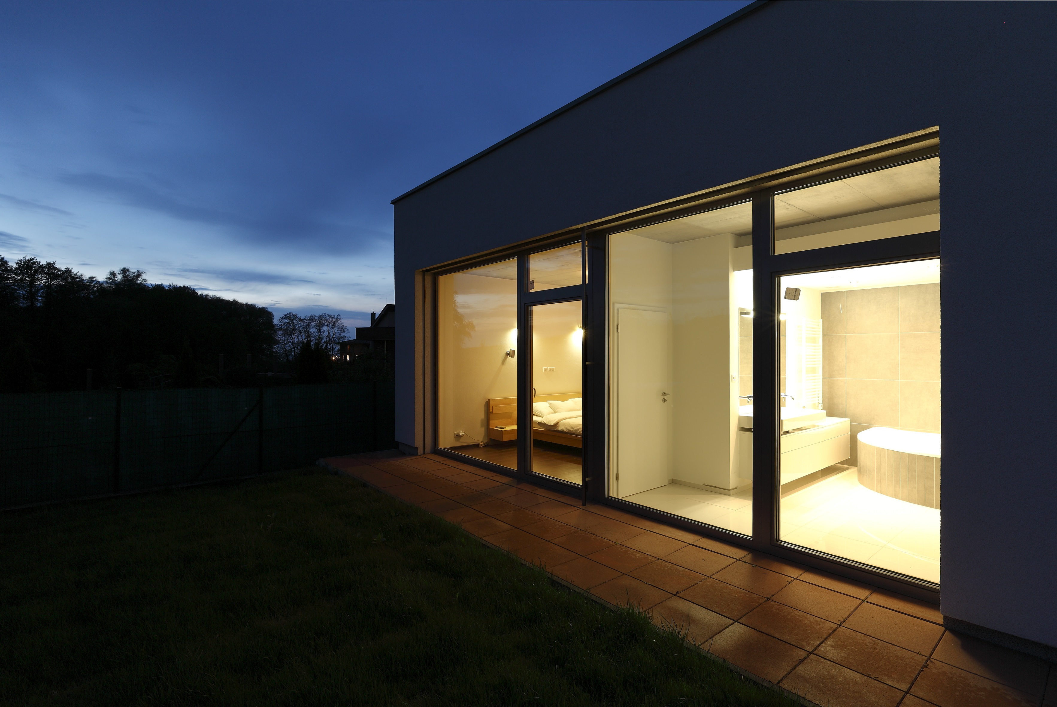 Dom je energeticky mimoriadne úsporný. Merná tepelná potreba na vykurovanie je 14 kWh/(m2a) pri vzduchovej priepustnosti 0,4h-1. Átrium domu je nasmerované na juh a vďaka rozumne navrhnutým oknám (U-hodnota okna max 0,8W/(m²K)) sú aj zasklenené časti v celkovej energetickej bilancii ziskové. Proti prehrievaniu v letných mesiacoch sú na oknách umiestnené exteriérové žalúzie. Celá stavba má jednoduchý kompaktný tvar bez výčnelkov a je dobre zaizolovaná. Zdrojom tepla je tepelné čerpadlo (aj s možnosťou aktívneho chladenia), kontrolované vetranie a rekuperácia, ktoré zabezpečujú minimálne straty vetraním.