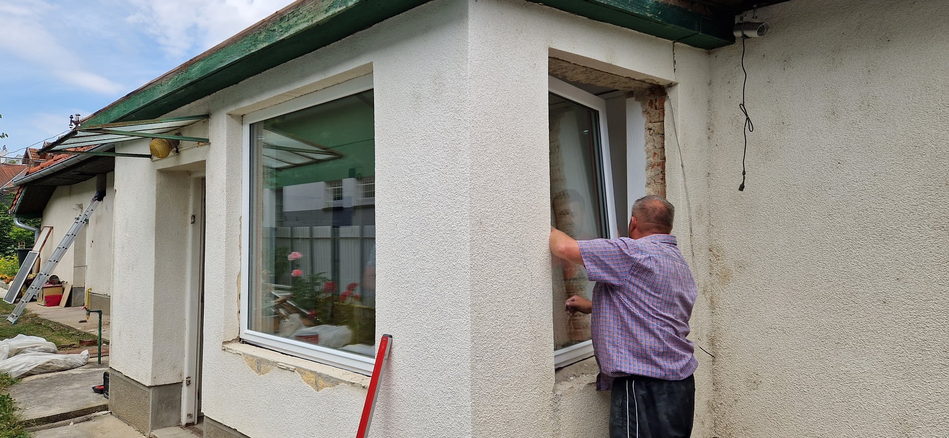 Montáž nových kvalitných okien a dverí s izolačným trojsklom a dreveným rámom v bielom prevedení.