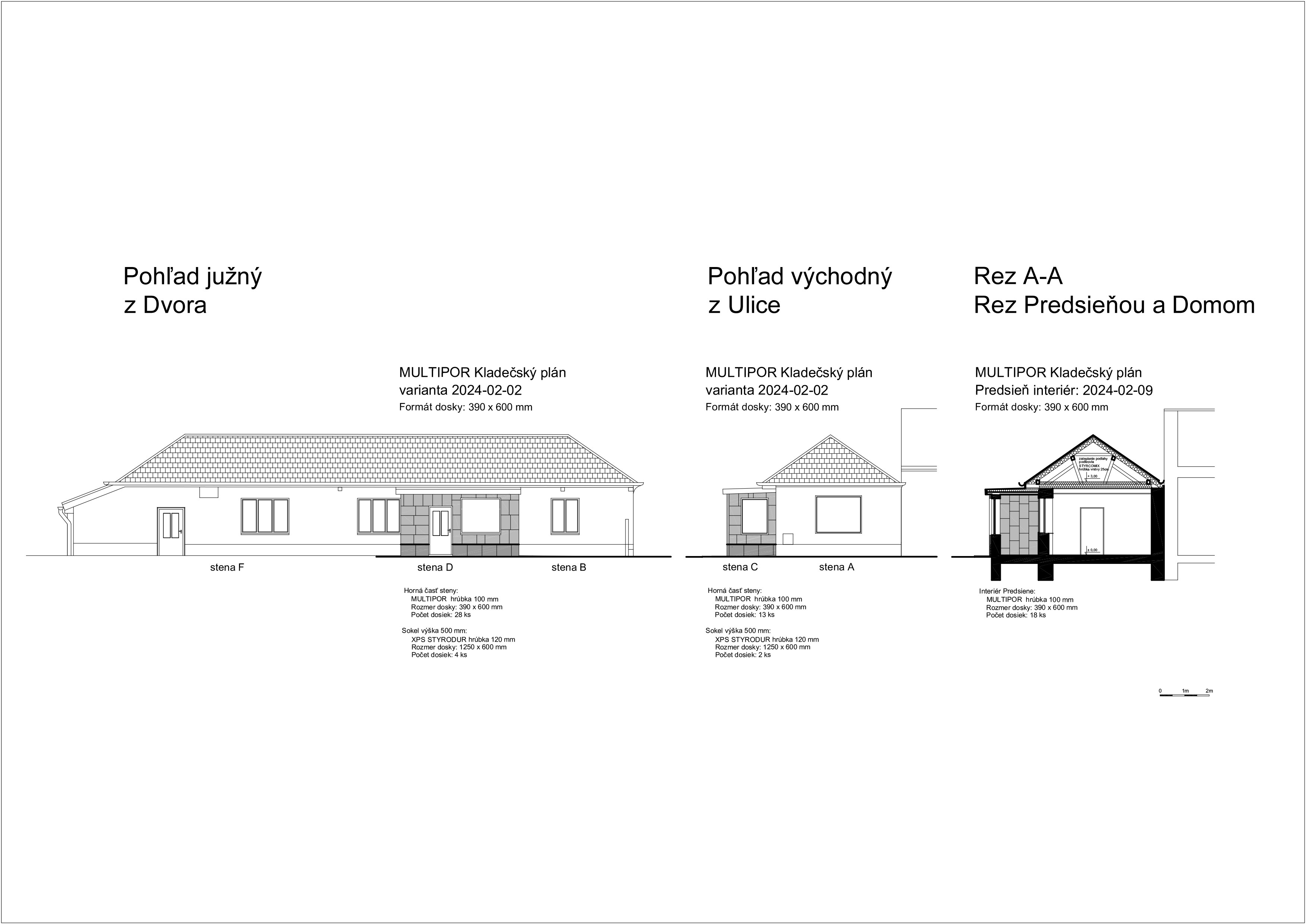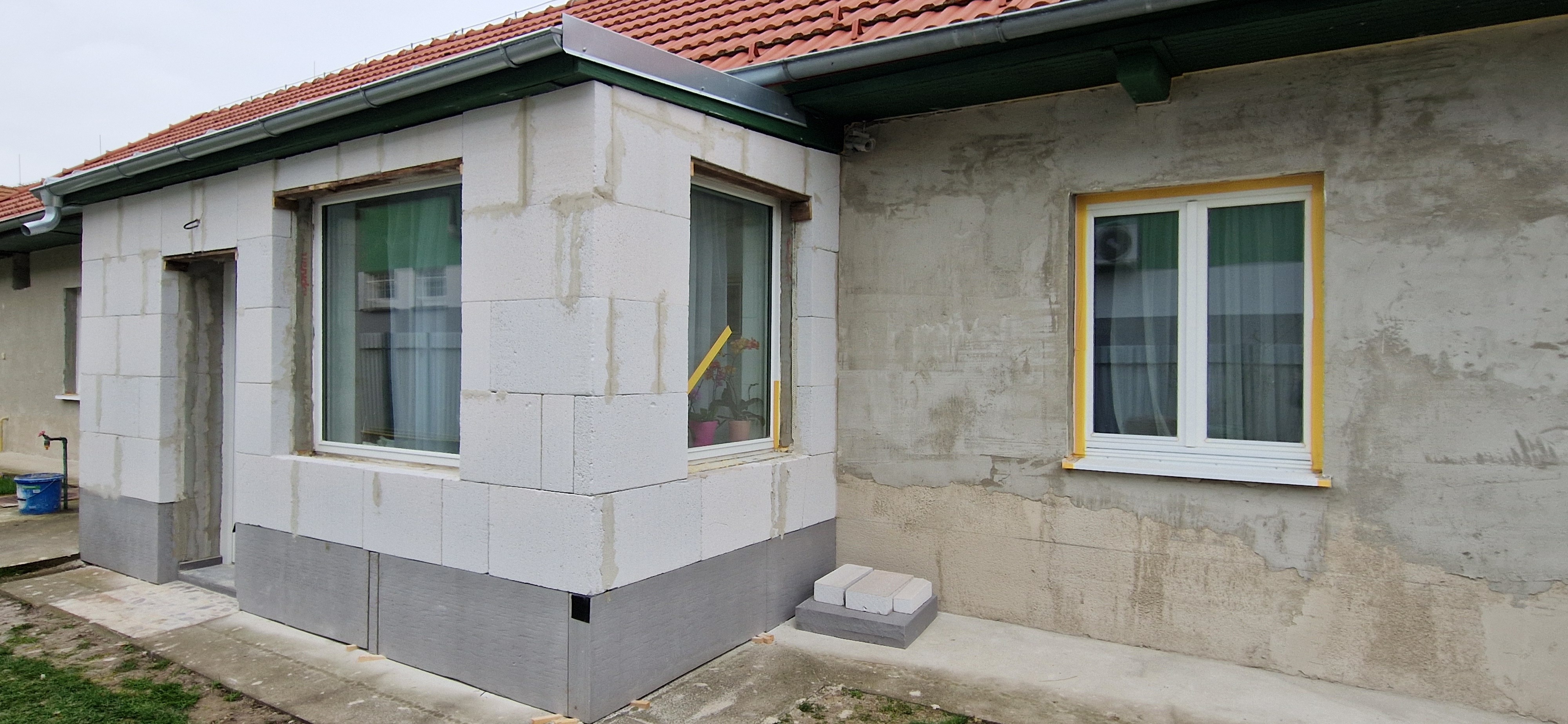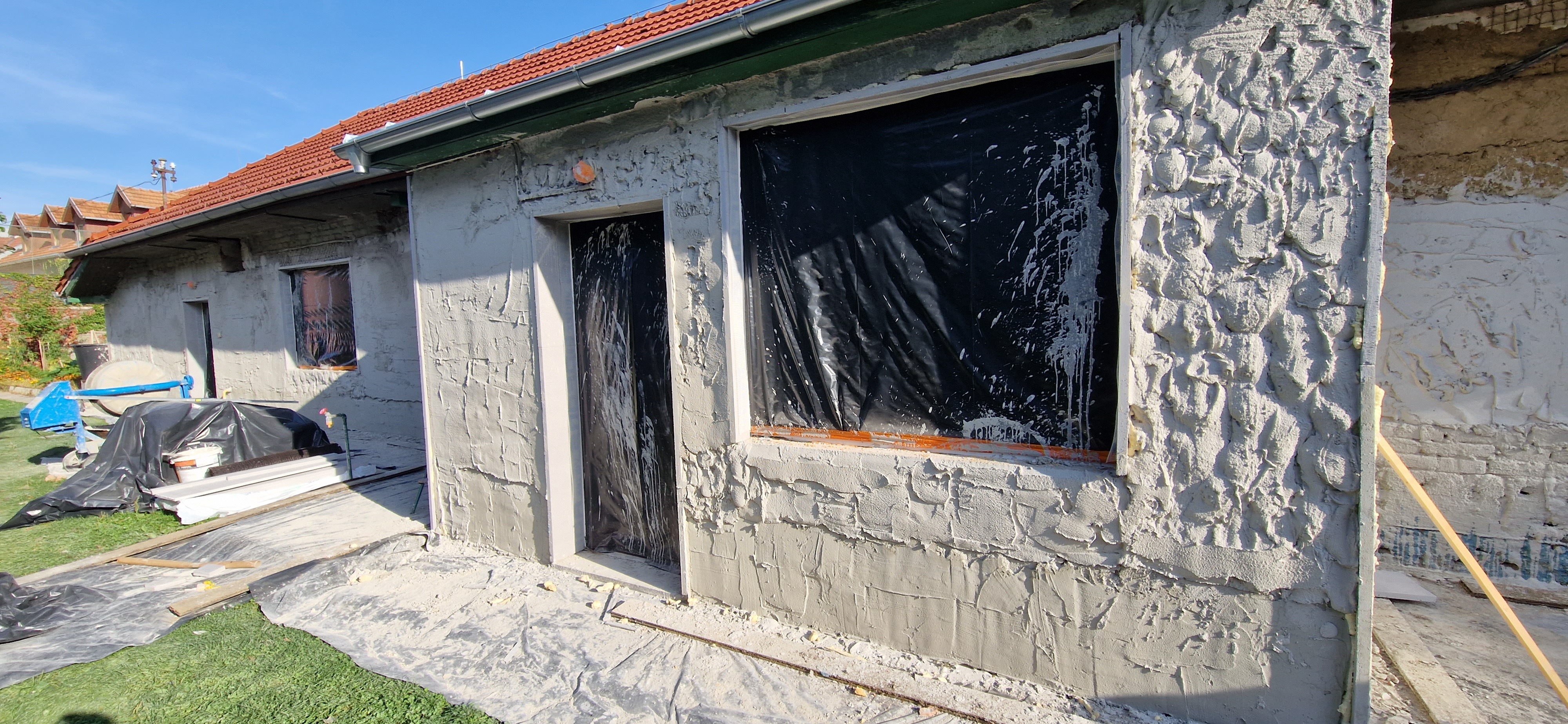 Zatepľovanie obvodových stien panelmi Multipor bolo prevedené len na obvodových stenách Predsiene, ktoré boli hrubé len 35 cm. Obvodové steny pôvodného domu z nepálených tehál, hrubé 60 – 70 cm, zatepľované neboli.