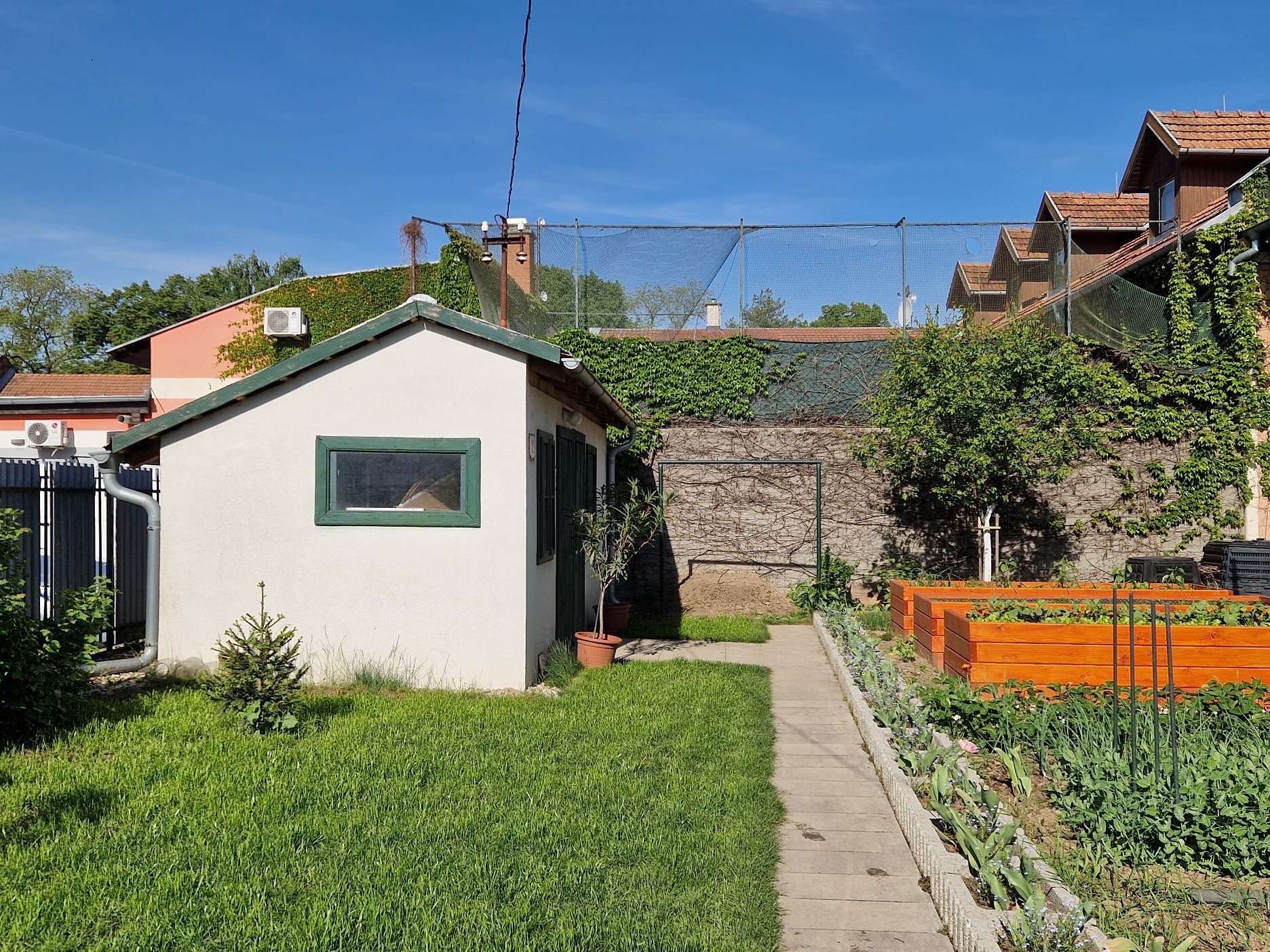 S murovanou kópiu pôvodného záhradného domčeka, s novo upravenou časťou dvora a záhrady, a so zvýšenými záhradnými záhonmi.