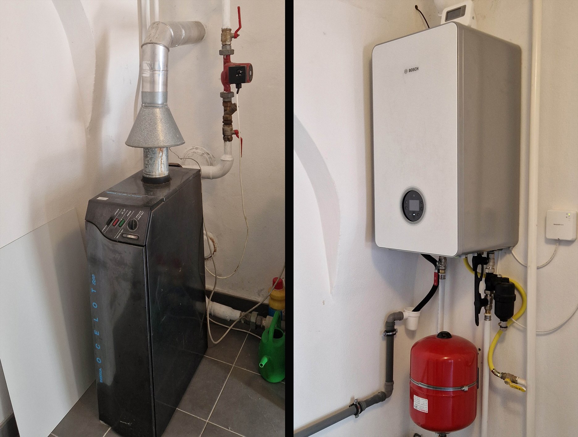 Starý plynový kotol bol nahradený Novým plynovým kondenzačným kotlom, ktorý vďaka svojej vysokej efektivite, dokáže znížiť náklady na vykurovanie o približne 25%.