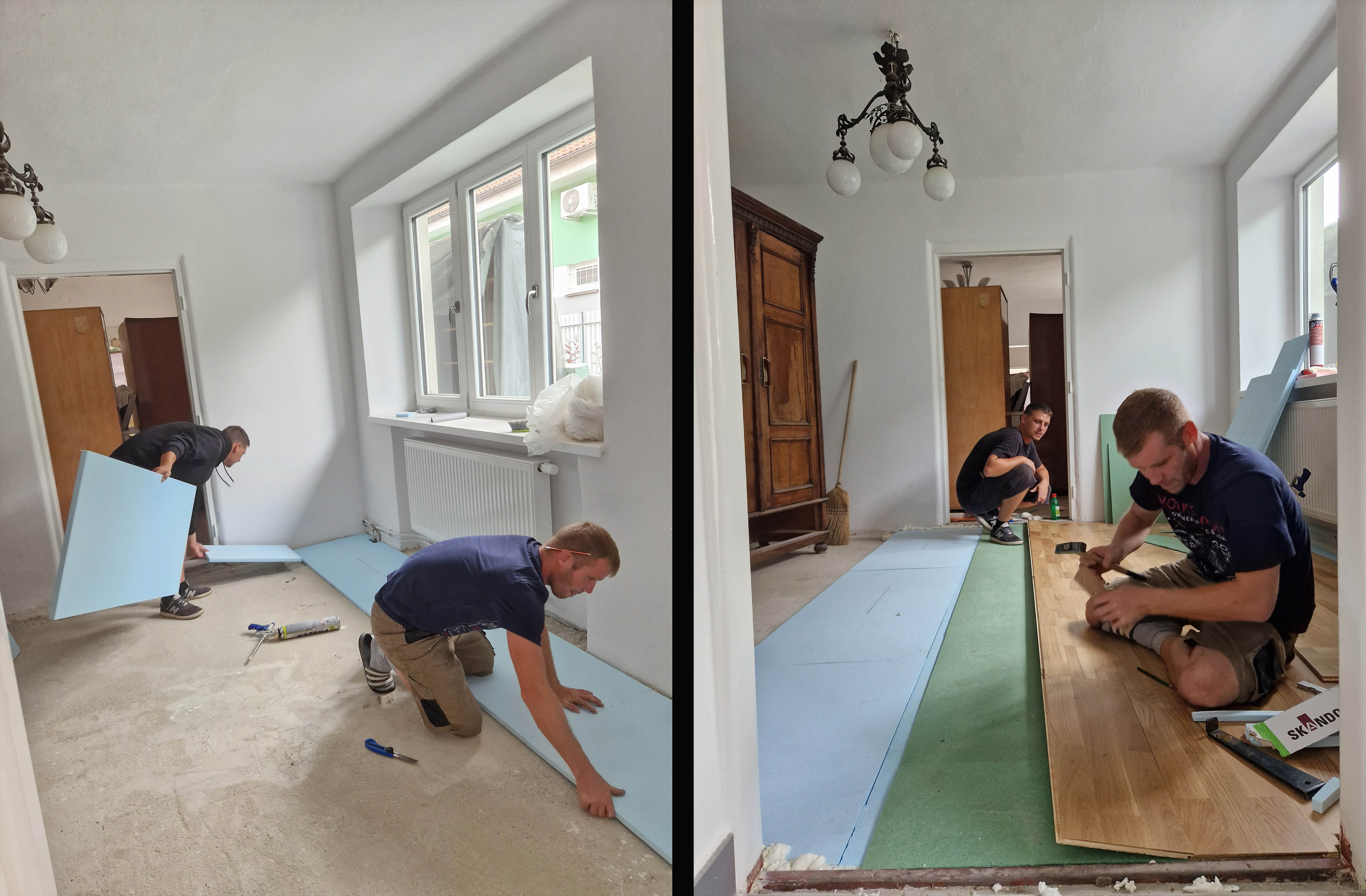 Montáž plávajúcej podlahy na betón a na vrstvy zateplenia.