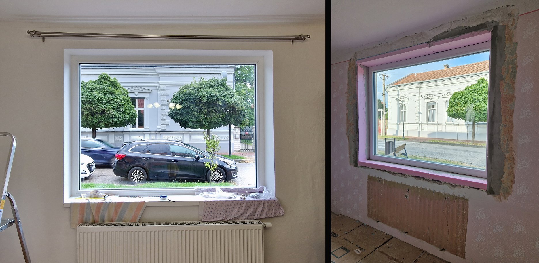 Obývacia izba: Opravené okenné ostenie a hotové nové okno