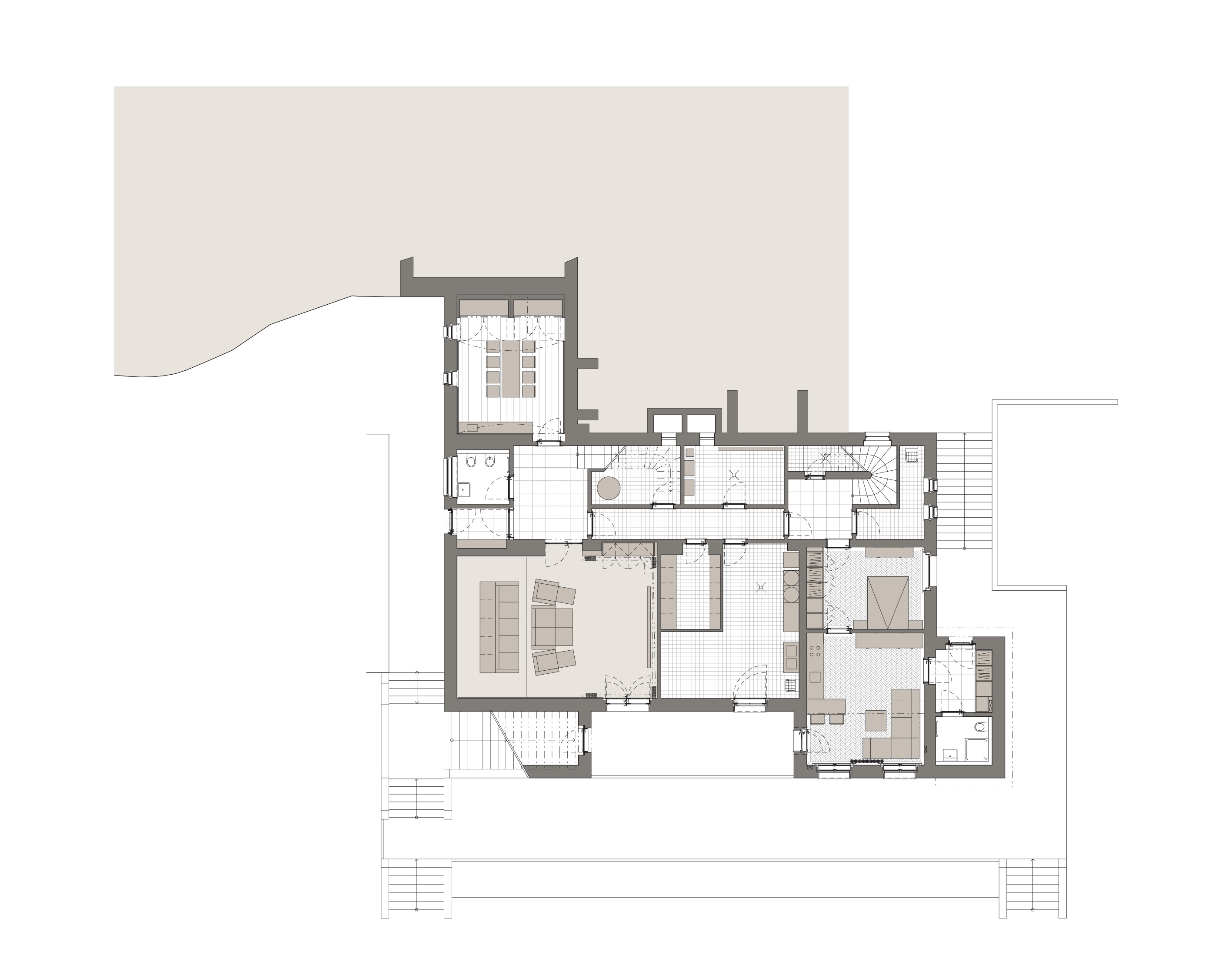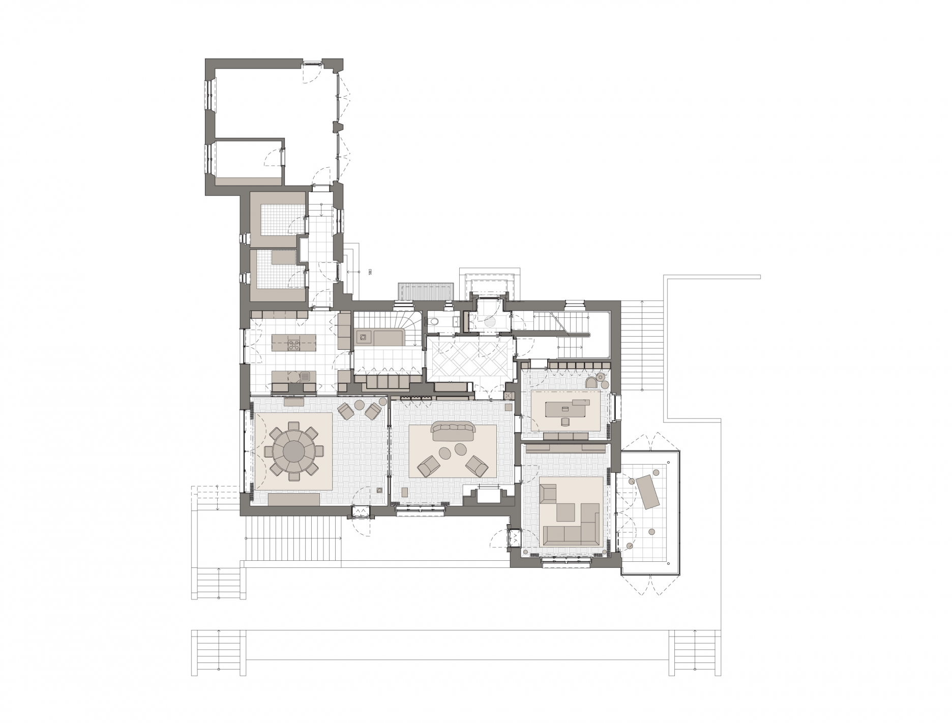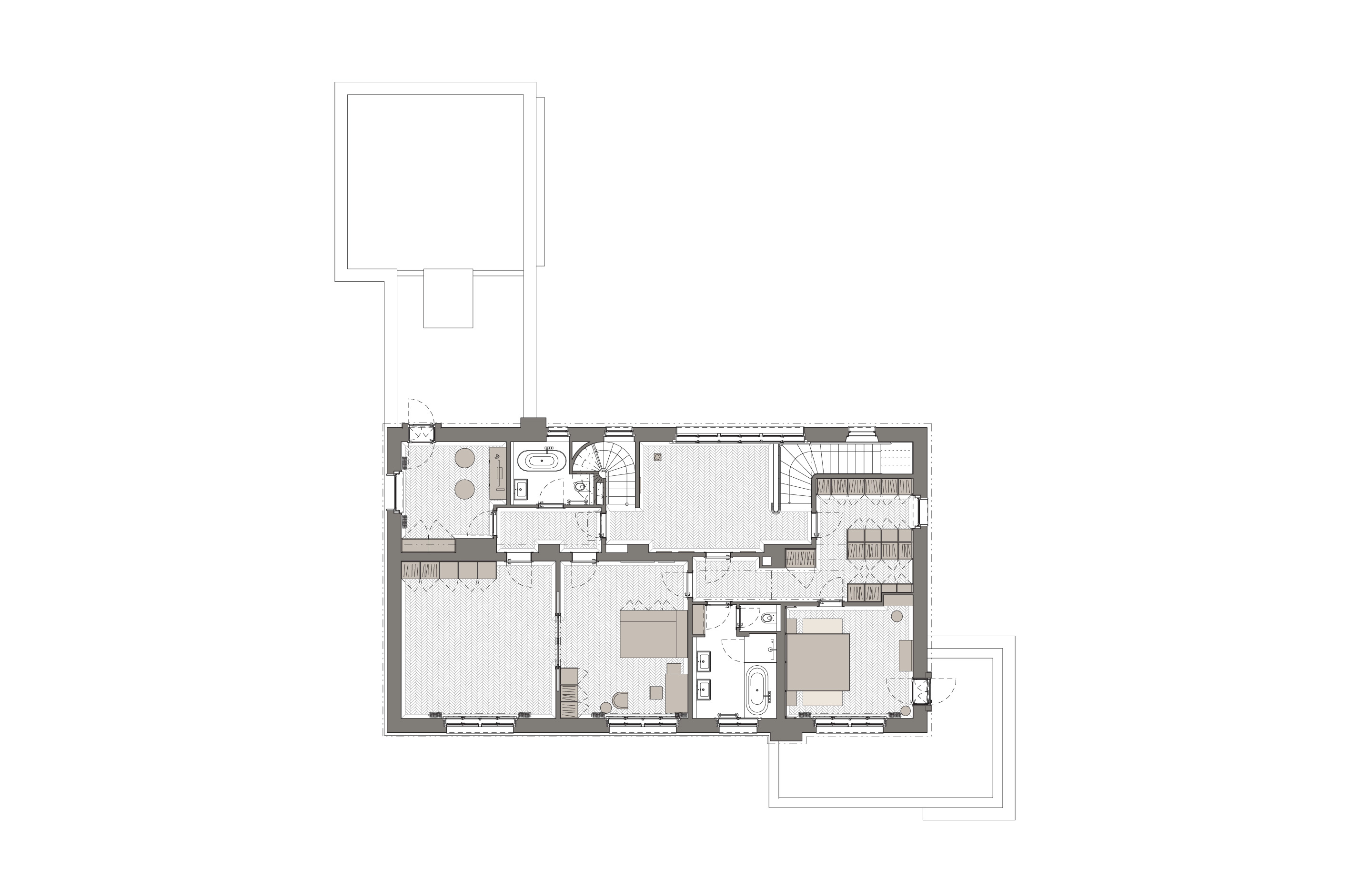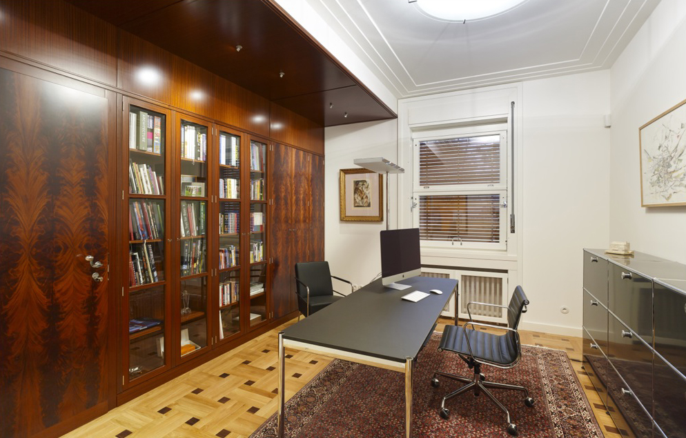 Architekti sa snažili o funkčnú obnovu priestorov v pôvodných proporciách a zachovanie ich pôvodnej funkcie. Išlo predovšetkým o jedáleň, prijímací salón, pracovňu a hudobný salón. Ťažšou úlohou bolo navrhnutie vstavaného interiéru pevne spojeného so stavbou. Tu sa nebolo možné oprieť sa pri navrhovaní o dochovanú predlohu. Navyše vila Münz bola jednou z prvých puristických Wiesnerových stavieb, ktorá však mala ešte mnohé dekoratívne pozostatky z predchádzajúcich foriem, ako napríklad ozdobné stropné fabióny /zaoblený prechod medzi stropom a zvislou stenou/.