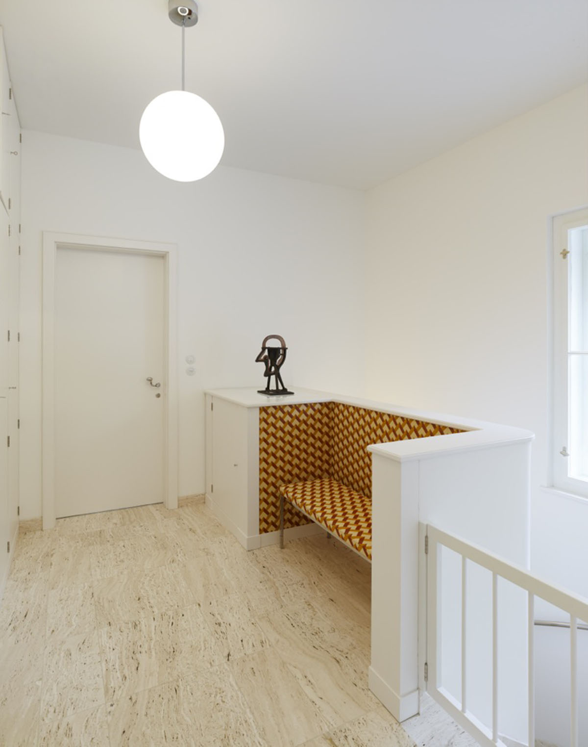 Je veľmi pravdepodobné, že pôvodný návrh a realizácia boli v rozsahu vstavaného nábytku a obkladov pomerne strohé. Nové riešenie hľadalo v tejto oblasti skôr predlohu v materiálovo bohatých interiéroch Adolfa Loosa než priamo u Wiesnera. Snahou bolo pri návrhoch vstavaného mobiliára evokovať predovšetkým dobu vzniku stavby. Aby sa však nešlo o bezcennú kópiu, boli dôsledne zachované dobové remeselné postupy a pôvodné materiálové riešenia. Hlavné obytné poschodie je rovnako ako u ostatných víl reprezentatívne, realizované so snahou o maximálne zachytenie pôvodného charakteru, v spodnom a horných poschodiach sa snaha o pôvodný charakter domu oslabuje. Napríklad vinotéka je moderne poňatým priestorom. Pri voľne stojacom nábytku sa architekti pokúsili o dobový mix jednotlivých prvkov od repasovaných originálov z 20. a 30. rokov 20. storočia až po súčasnú produkciu popredných svetových nábytkových firiem a návrhárov. Obdobne časovo komponovaná je tiež kolekcia výtvarných diel, ktoré interiér dotvárajú.