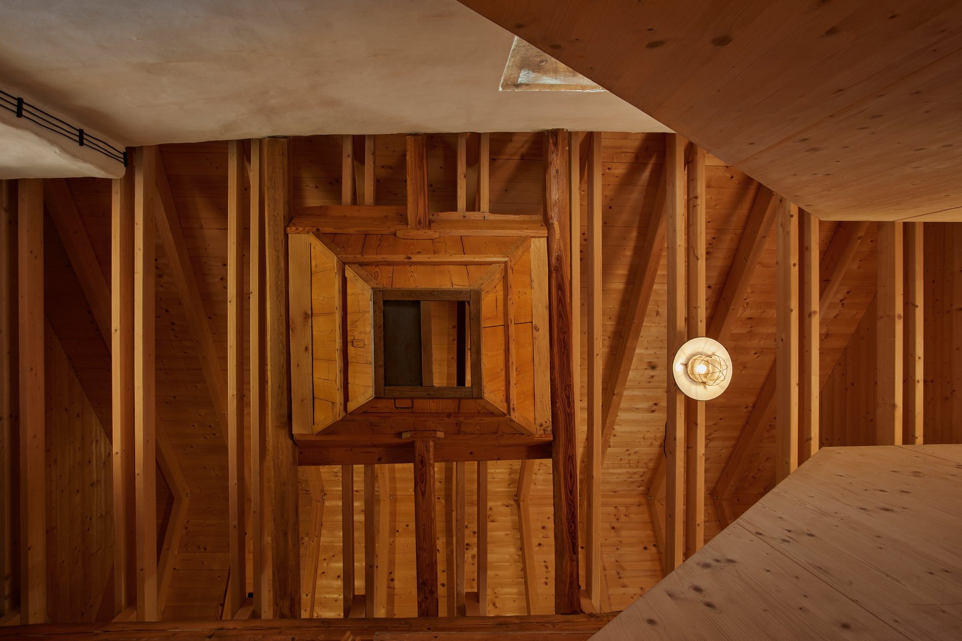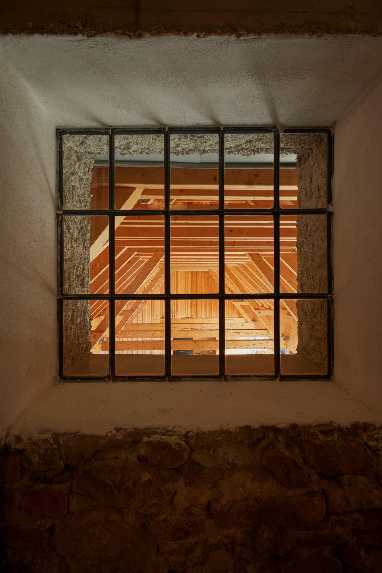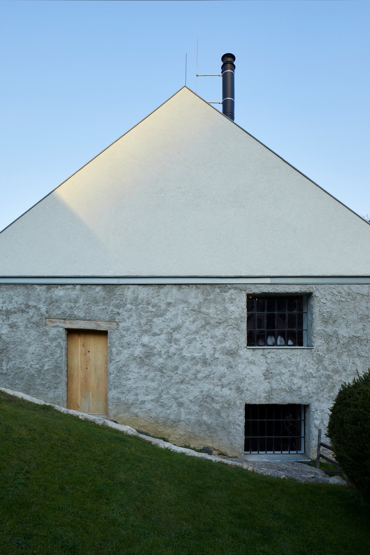 Objekt mlýna je příliš cenný na to, aby byl zdemolován a příliš veliký na to, aby byl zrekonstruován celý. Zachováváme z něj proto jenom jeho nejstarší část a jednu obvodovou stěnu novější dostavby. Tato stěna s oknem z exteriéru do exteriéru je torzem. Vytváří unikátní atmosféru svou povahou a vztahem k novým a původním objektům. Zachovávaná část bývalého mlýna získává nové využití. Stává se místem pro setkání, které je v přízemí. Prostor pro práci zůstává umístěný v patře. Nejhodnotnější části původní technologie mlýna jsou téměř 200 let stará dřevěná stolice, na které bylo uložené mlýnské kolo a násep pšenice. Tyto prvky jsou citlivě ošetřeny a využity tak, aby v prostoru dostaly významné postavení. Do obvodové stěny mlýna je vsazeno nové čtvercové bezrámové okno. To otvírá zcela nový průhled na dvůr i do okolí. Jeho ostění je zevnitř obloženo smrkovými prkny, stejnými, jaké jsou na i podlaze patra. Veškeré elektrorozvody běží po povrchu vyspravených starých zdí. Podlaha přízemí je zcela nová. Je to masivní betonová deska, která leží na kačírku. To jí umožňuje odvádět vlhkost z podloží. Leštěný a navoskovaný beton této podlahy je zdoben strukturou vybroušených kamínků a jemnými vlásečnicovými trhlinami. Je to podlaha, která bude s mlýnem dál dobře stárnout. Na fasádu mlýna nahodil fankou starý zednický mistr vápenocementovou maltu. Střecha byla špatná a bylo nutné ji i s krovem kompletně vyměnit. Mlýn, nový dům i zastřešení parkování jsou zakryté stejnou pálenou taškou.