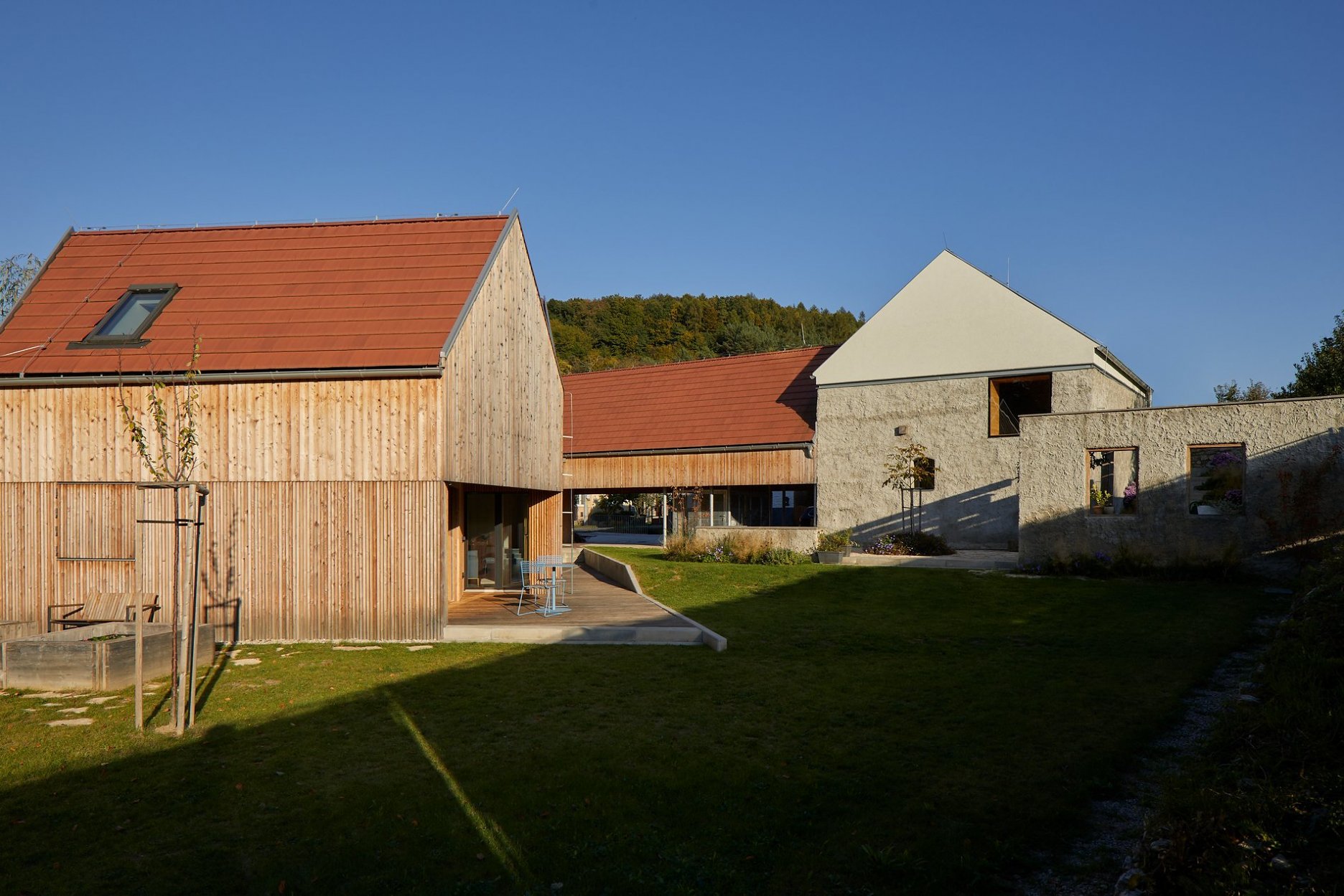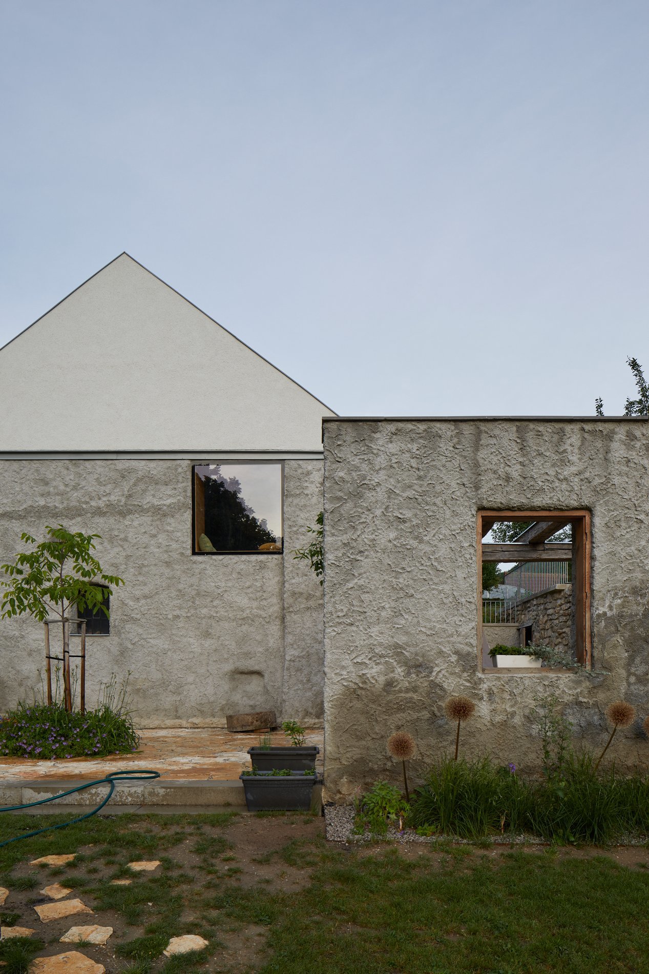 Zahradu zdejší zahradníci realizovali dle návrhu krajinářského studia Land 05. Okrasné jabloně, vrby u potoka či mohutný ořešák před mlýnem se v budoucnu, až trochu narostou, stanou důležitou součástí charakteru tohoto nového venkovského stavění.