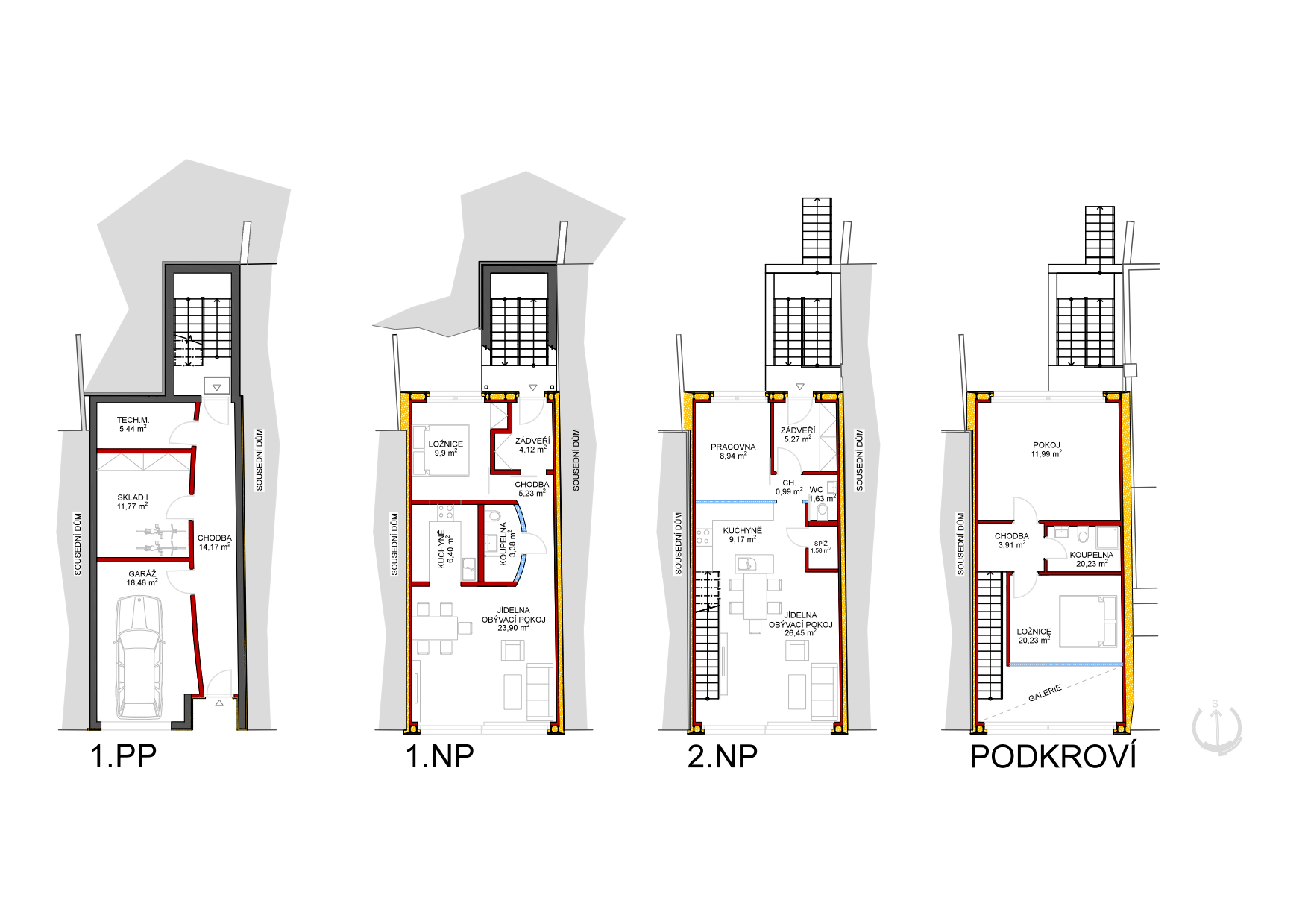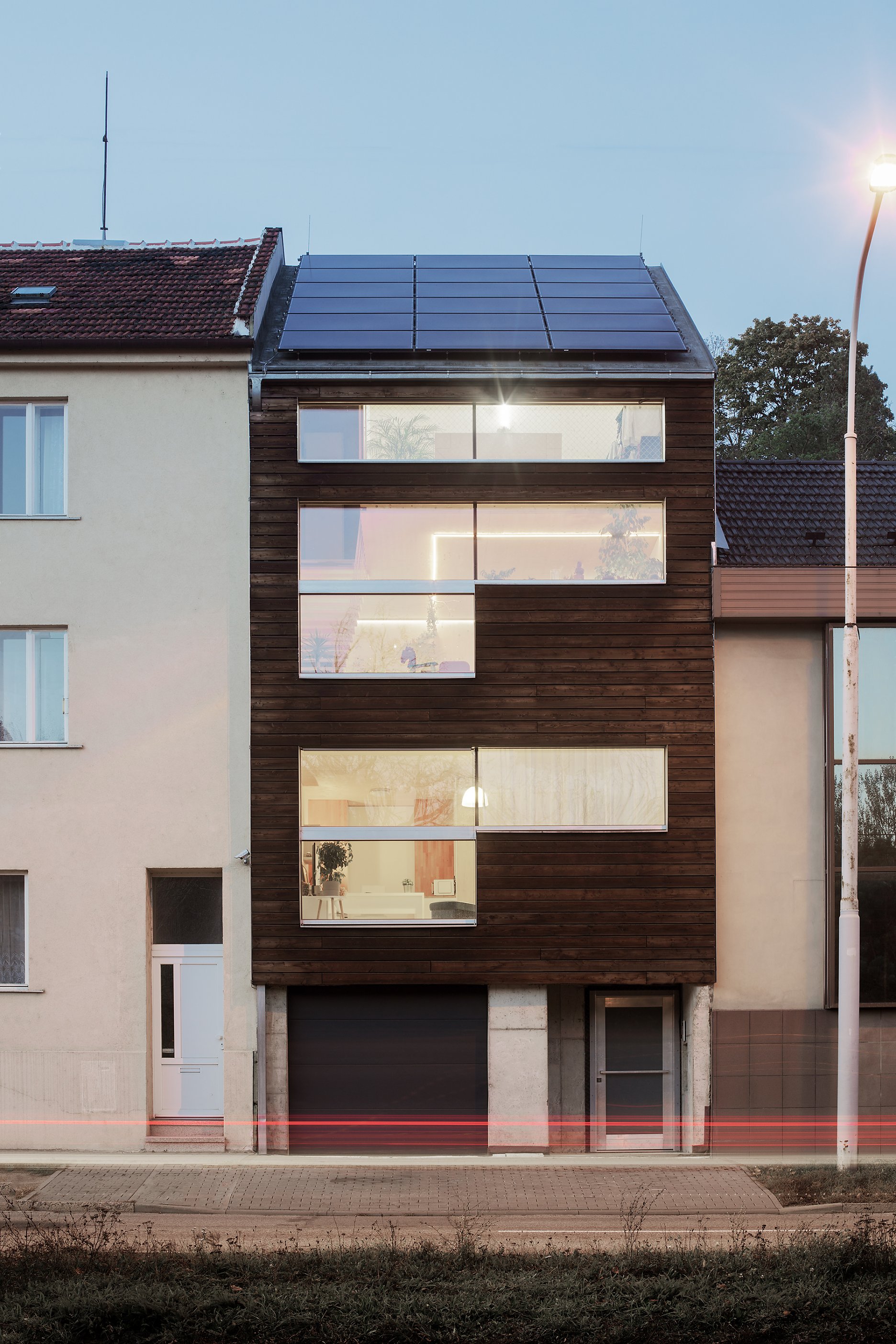Dom v brnianskej časti Komín vyplnil prieluku so šírkou iba 5,5 metra. Architektom z česko-slovenského zoskupenia Vize Ateliér sa podarilo na troch podlažiach a v podkroví vyriešiť komfortné bývanie pre dve rodiny, vrátane parkovania. Nemenej zaujímavá je energetická bilancia stavby a ekonomický model projektu.
