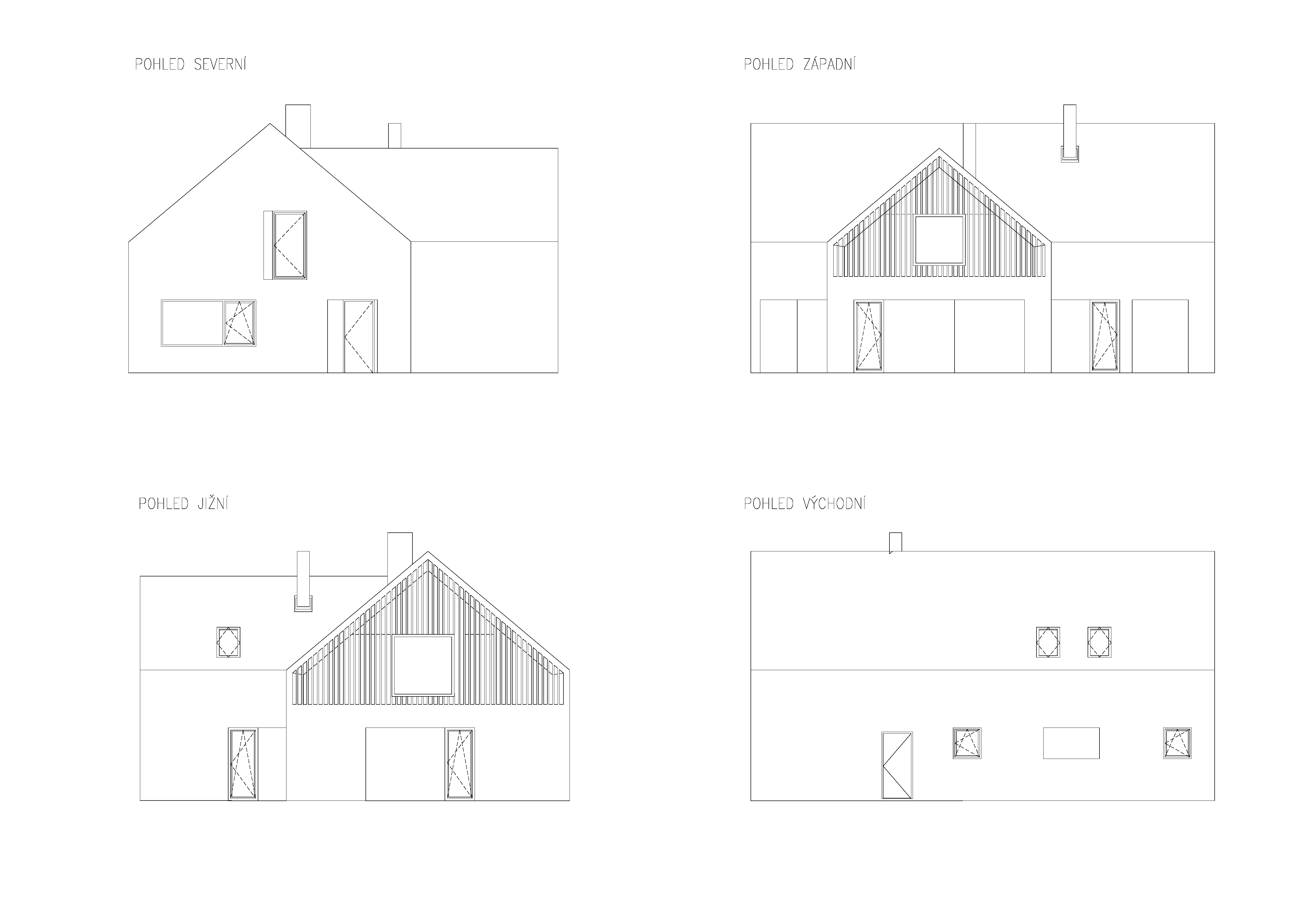 “Dům na první pohled vykazoval známky nekoncepčnosti, uspořádání vnitřních prostor bylo vzhledem k zamýšlené funkci poměrně nelogické. Původním majitelem uměle navezená zemina tvořila příkrý sráz a zabraňovala vjezdu do garáže. Francouzská okna z hlavní obytné místnosti končila půl metru nad úrovní zahrady. Fasádu narušovaly výklenky a sloupy. Nad vším tím trčela zvláštní, nepochopitelně složitě členitá střecha. Dům svým vzhledem narušoval původní ráz vesnice,” vysvetľujú architekti východiská projektu a pokračujú: “V průběhu jednání nad návrhem menších úprav bylo nakonec rozhodnuto o kompletní přestavbě domu právě tak, aby přirozeně zapadal do okolí. V návaznosti na lidovou architekturu, kterou se autoři návrhu inspirovali, byla hlavním konceptem přestavby jednoduchost až obyčejnost stavby. Na obrazech Josefa Lady vidíme domy s dřevěným štítem, jednoduchým půdorysem, doškovou nebo červenou sedlovou střechou.Lidová architektura se vždy obešla bez estetických prvků, které by byly nad rámec funkčního požadavku. Na stavbu bývaly využívány, stejně jako v našem případě, povětšinou místní zdoje. Takový dům, který by ale zároveň splňoval současné představy o moderním celoročním bydlení na vesnici, nakonec z návrhu vyšel.”