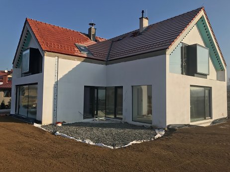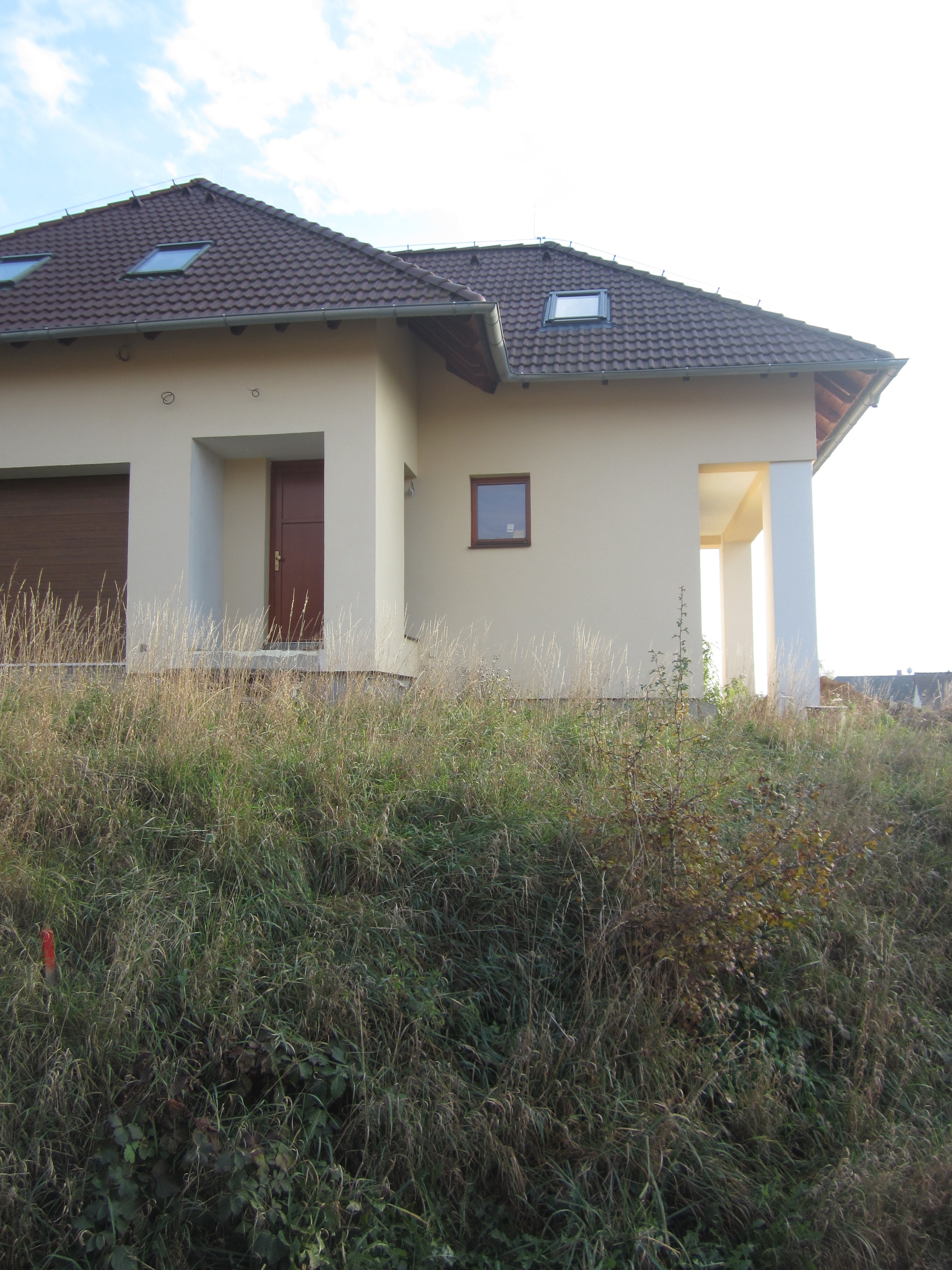 Novú, skolaudovanú stavbu si vybrali súčasní majitelia hlavne kvôli príjemnej lokalite, a tiež preto, aby sa vyhli časovo náročnej výstavbe. Na katalógovom dome, stojacom neďaleko centra obce, plánovali urobiť drobné úpravy terénu a interiéru. S týmito požiadavkami oslovili architektov z ateliéru SAD.