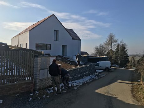 “Dům je nově obezděný, zvýšily se tím fyzikální parametry a díky stavebním úpravám získal kýžený jednoduchý tvar. Jako parafráze na hlazenou kletovanou vápenou omítku bylo zvoleno dvouvrstvé terrazzo, probroušené na strukturu drobných kamínků. Extrémně tvrdý a odolný materiál vydrží bez zásahů dlouho v nezměněném stavu. Téměř v konečné fázi přestavby došlo i na přeměnu střechy z komplikované změti valb a úžlabí na střechu jednoduchou sedlovou se čelními štíty,” vymenúvajú autori najdôležitejšie stavebné zásahy.