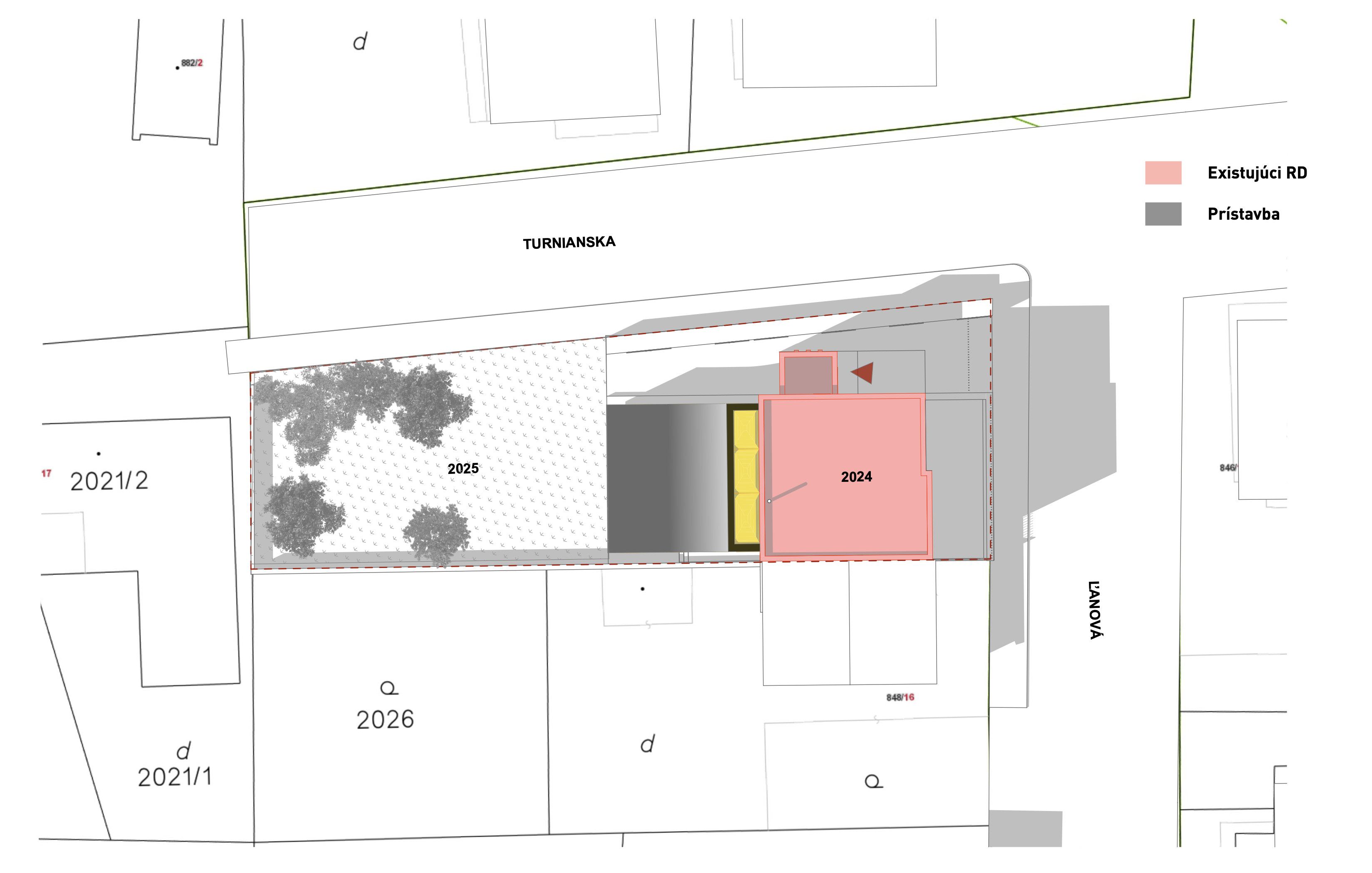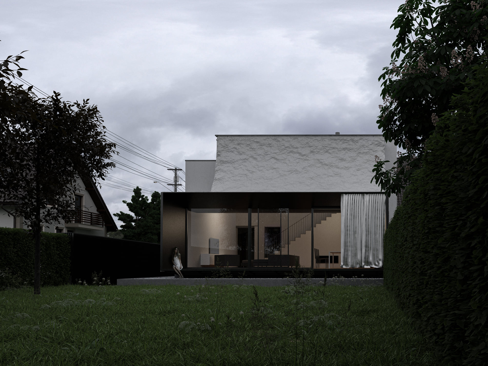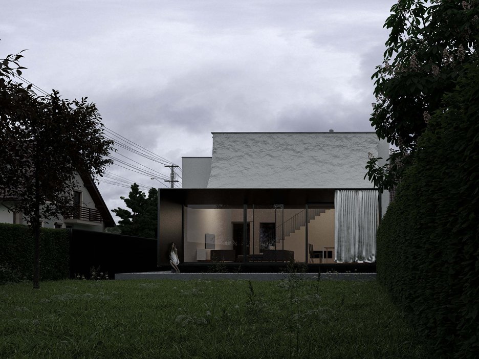 Cieľom prístavby bolo pomocou kontrastnej hmoty pristavanej ku klasickej socialistickej "kocke" vytvoriť veľkorysé priestory na bývanie pre 4 člennú rodinu.