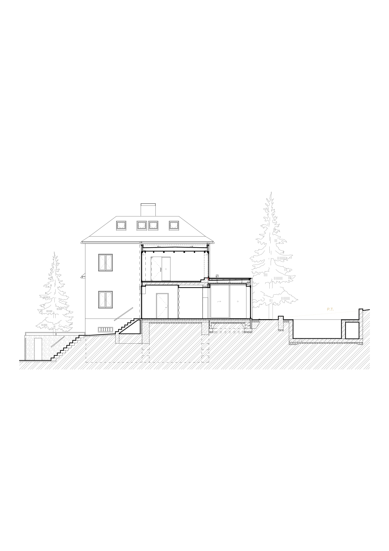 "V rámci projektu bolo našim zámerom zrealizovať príkladnú a citlivú rekonštrukciu a dostavbu povojnovej vily neďaleko Bratislavskej kalvárie tak, aby odrážala súčasné trendy a zároveň pozdvihovala ´obyčajnosť´ pôvodného objektu."