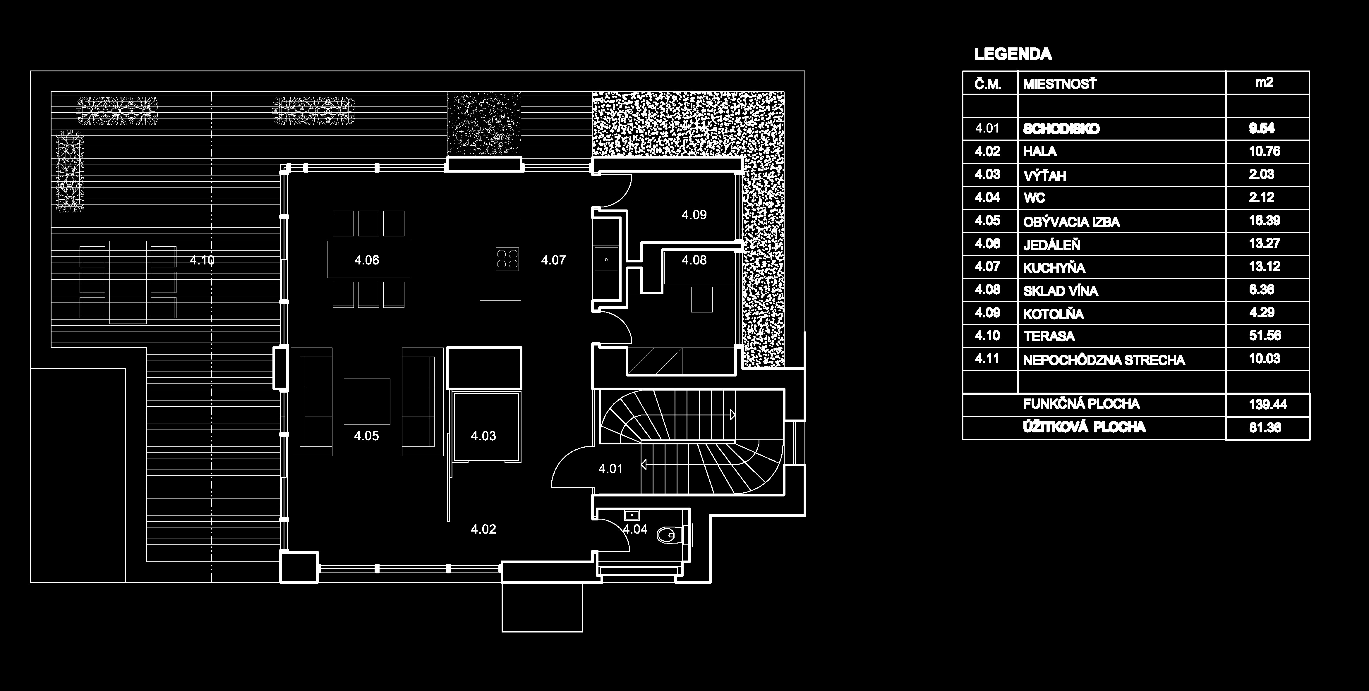 Prirodzene sa využíva konfigurácia terénu a na juhozápadnej strane je objekt z obývacej izby otvorený na novovzniknutú terasu.