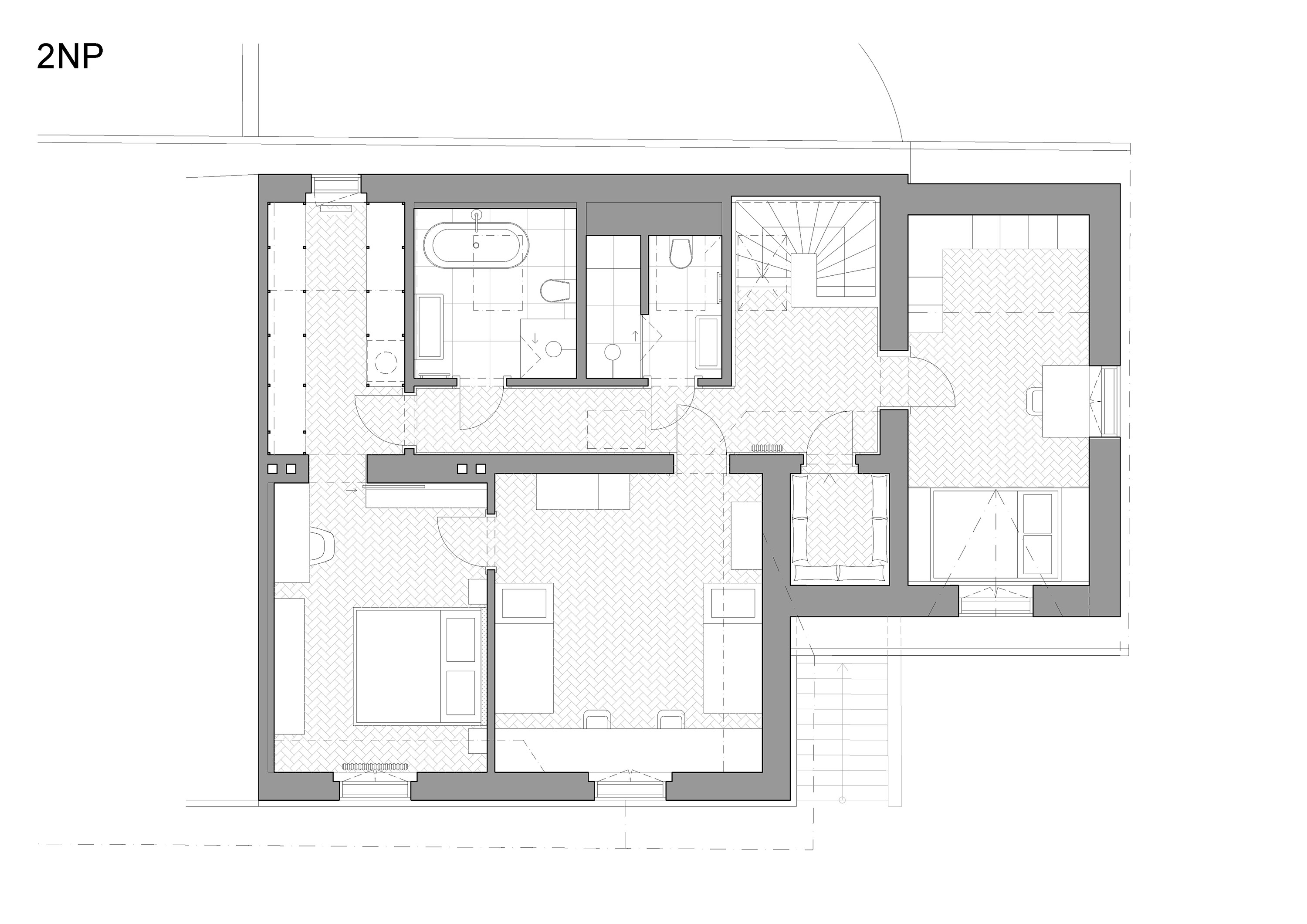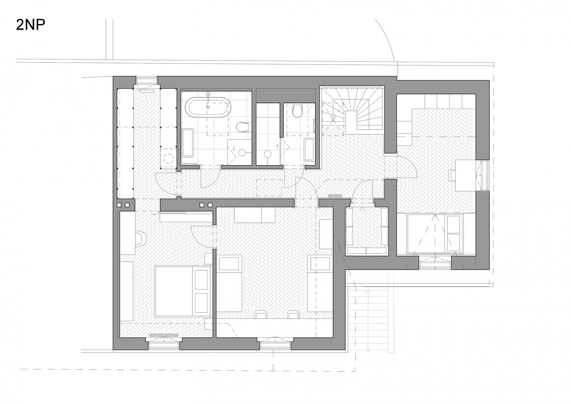 Materiály: keramická dlažba a obklady, betónová stierka, jaseňové a dubové podlahy