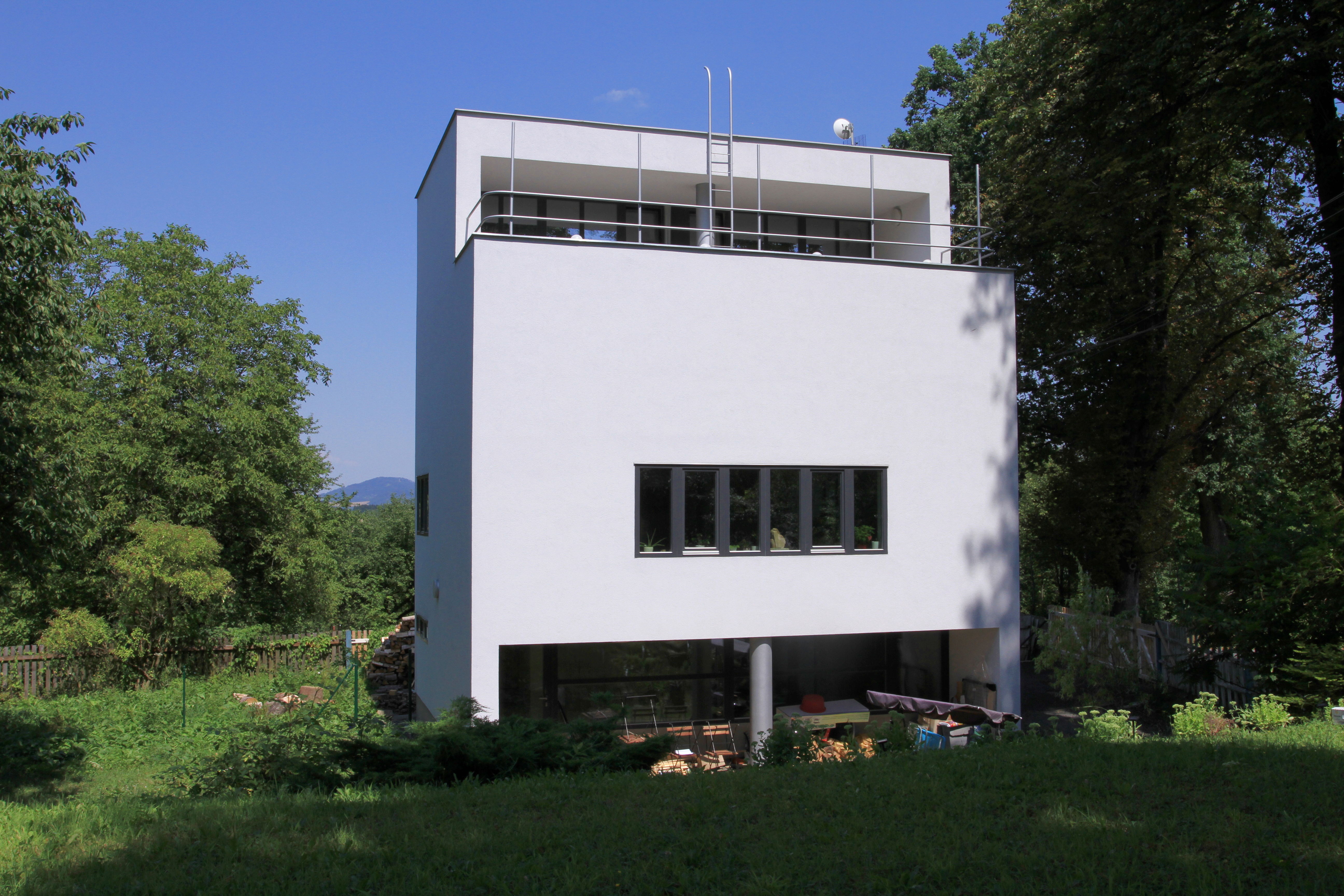 Túžba žiť v prírode a rodinné dôvody viedli Jozefa Místeckého k predaju svojej klasickej vily a k výstavbe svojho nového funkcionalistického sídla na susednej ulici Poličná. Prispeli k tomu aj jeho styky s poprednými českými architektmi, okrem iného s Baťovým dvorným architektom Františkom L. Gahurom. Prvý známy variant projektu domu pochádza z jari 1936. Z kalkulácie nákladov z februára 1937 vyplýva, že cena všetkých prác vrátane pozemku stála vtedy 107.361 Kč. Z konštrukčného hľadiska išlo o murovanú stavbu, doplnenú železobetónovými stropmi a nosnými piliermi kruhového prierezu.