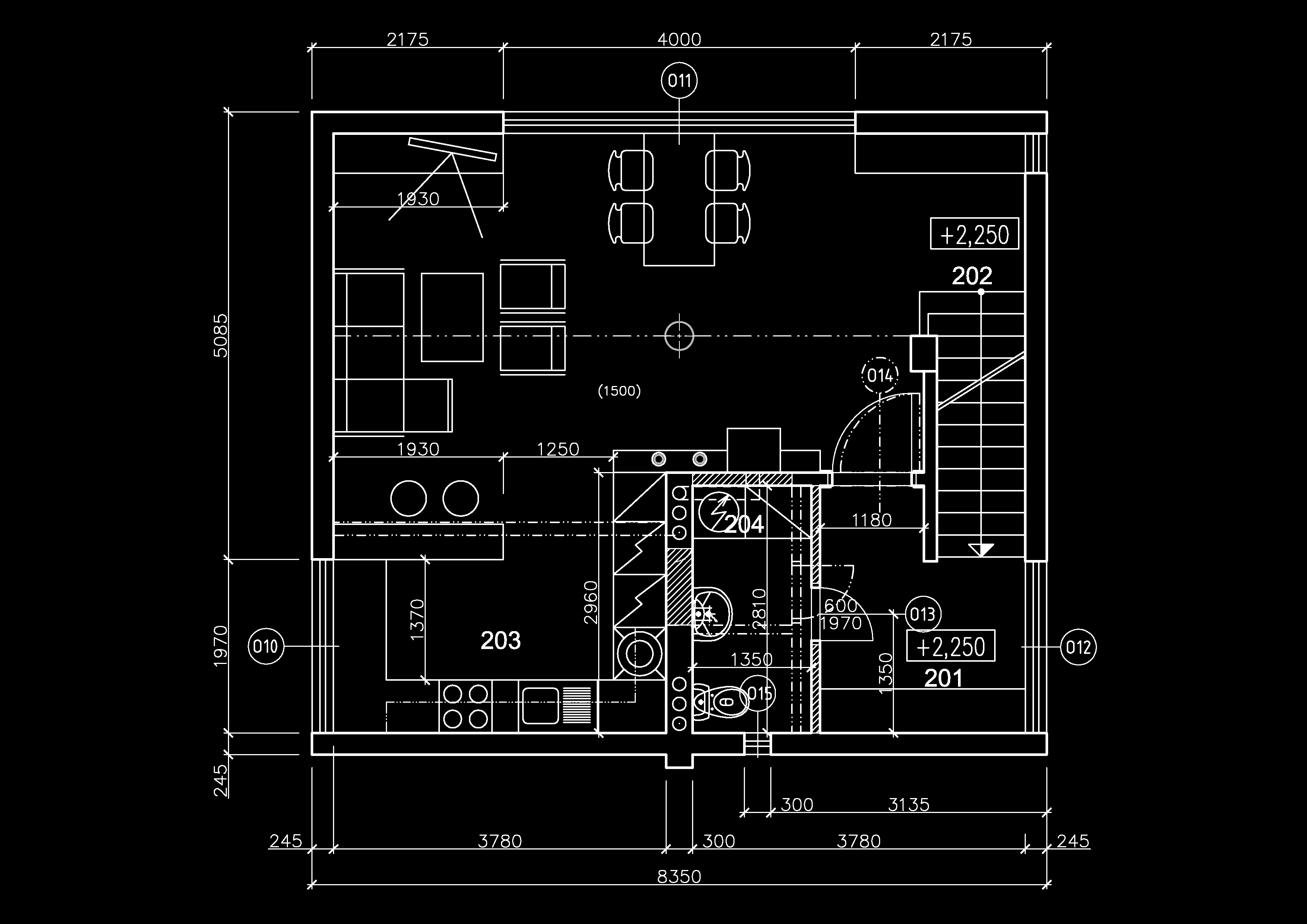 Na 2.np sa nachádza denná časť - obývací priestor otvorený cez dve poschodia, s kuchyňou ktorá je oproti pôvodnej tzv. Kajutovej dispozícii prepojená s obývacou izbou. Na obytnom poschodí je krbová vložka s priestorom pre uloženie dreva.