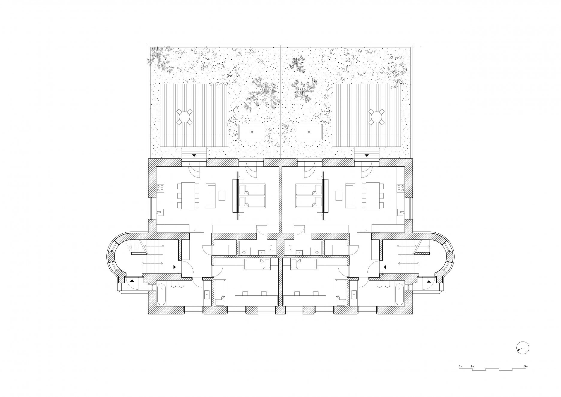 Do komplexnej obnovy objektu po takmer sto rokoch sa pustil ateliér PAPUNDEKL ARCHITEKTI. Autori z pražského kolektívu zachovali základné hmotové a dispozičné členenie domu. Výrazného rozšírenia sa však dočkal “sokel”, ktorý po novom siaha hlboko do záhrady. Prístavba rozšírila pôvodný lokalitný program o dva byty. Na zelenej streche novotvaru vznikla nová veľkorysá terasa pre obyvateľov vyššieho podlažia. Rozšírená časť materiálovo nadväzuje na pôvodné režné murivo sokla.