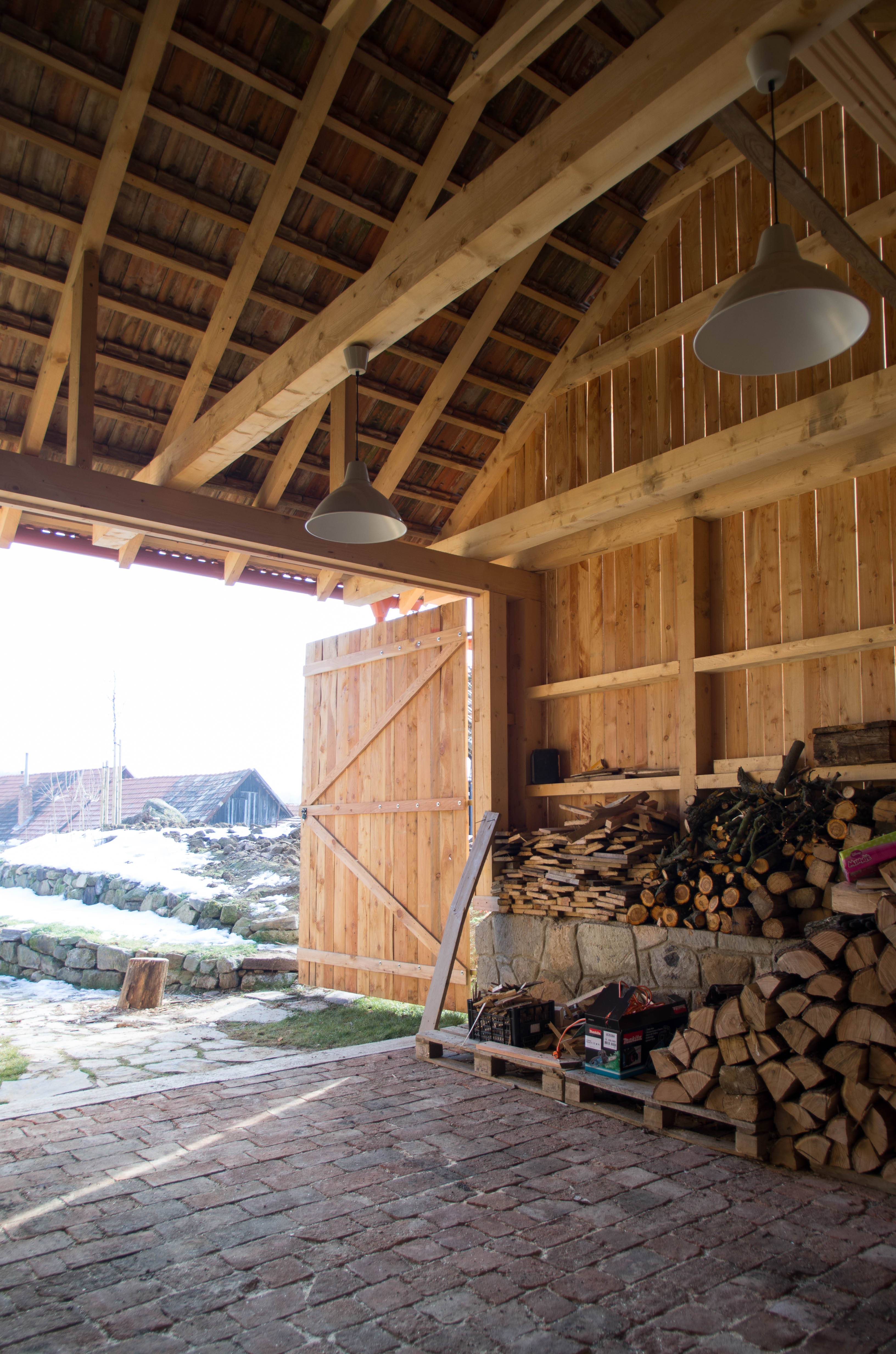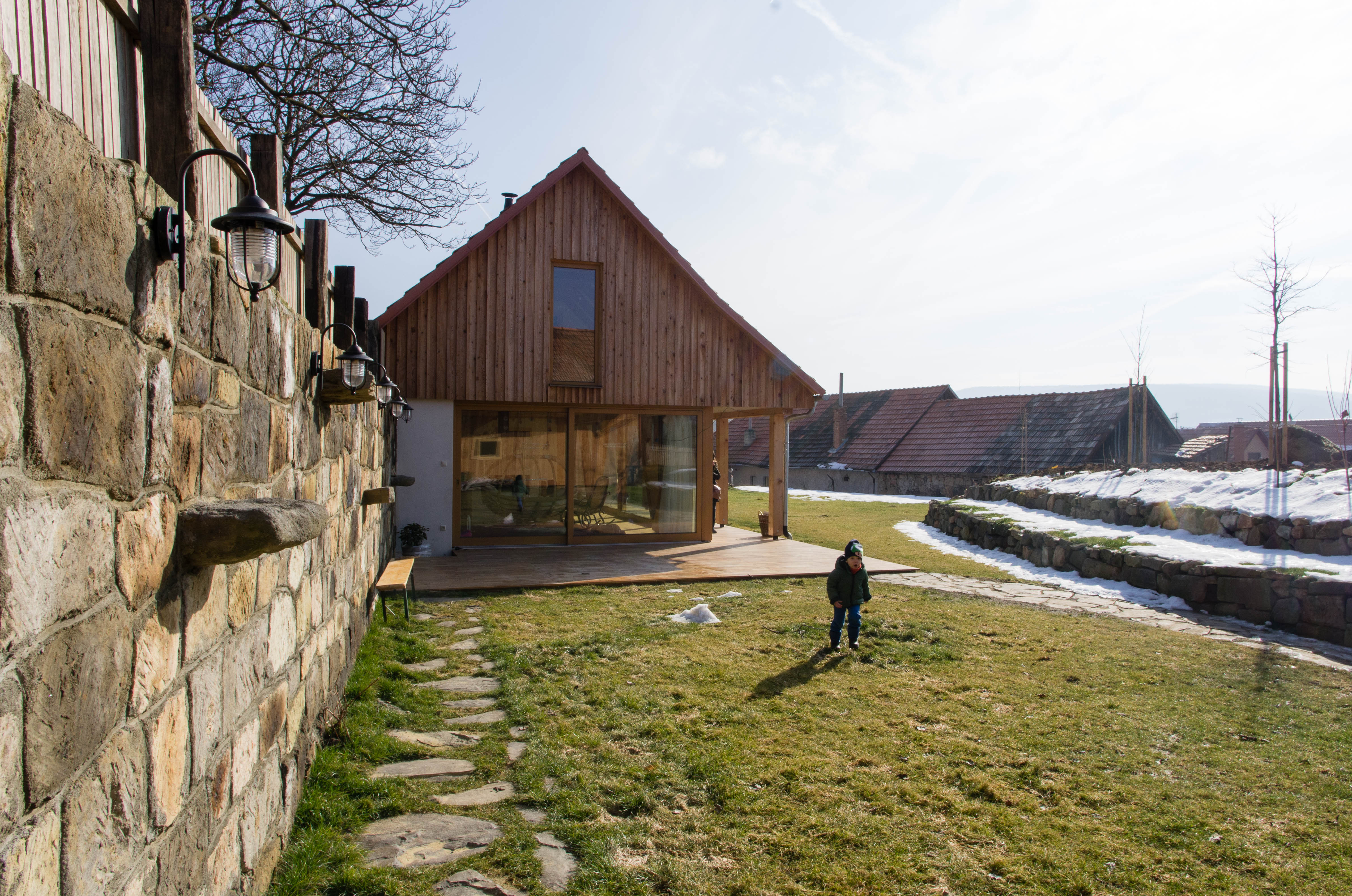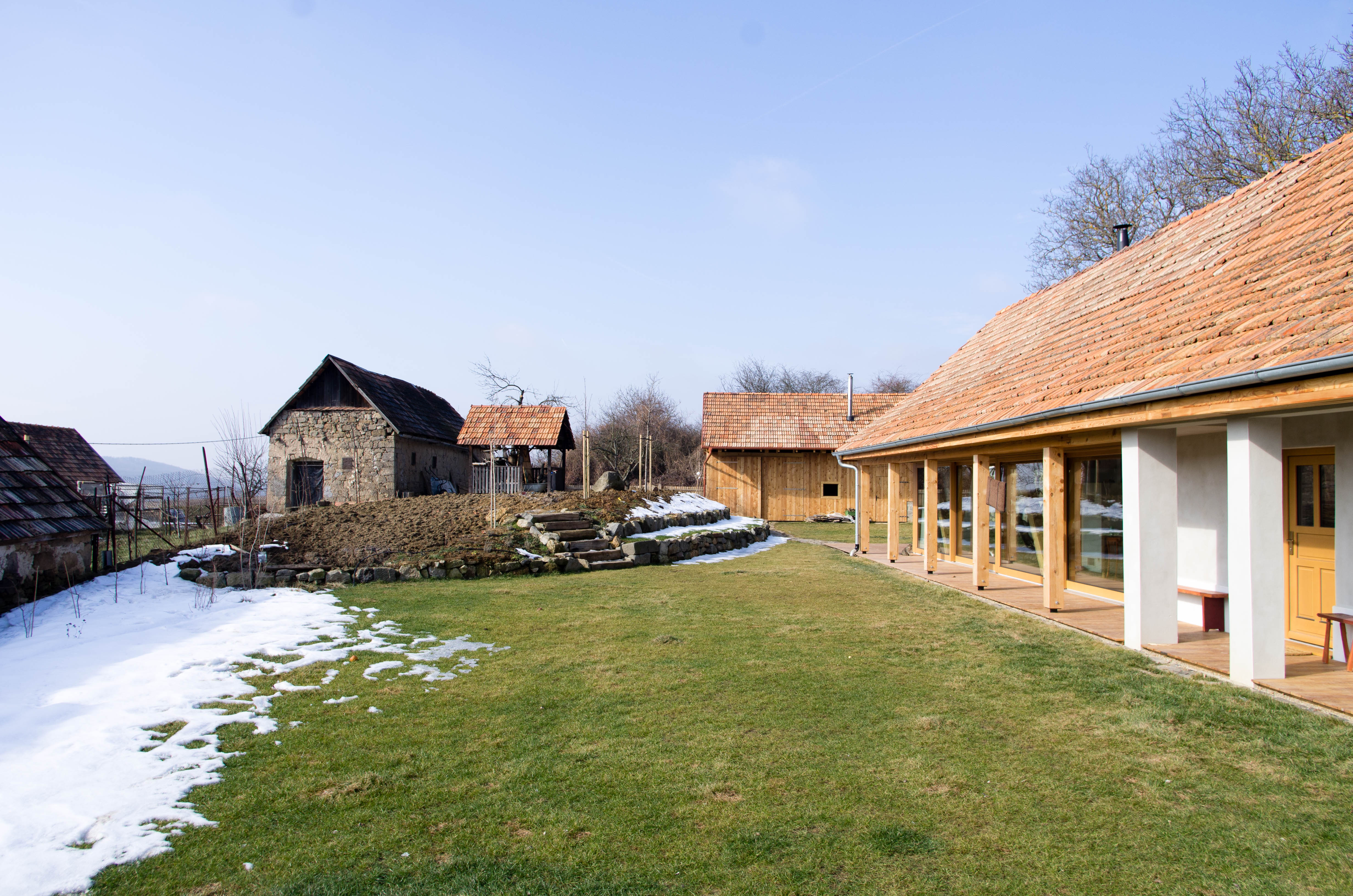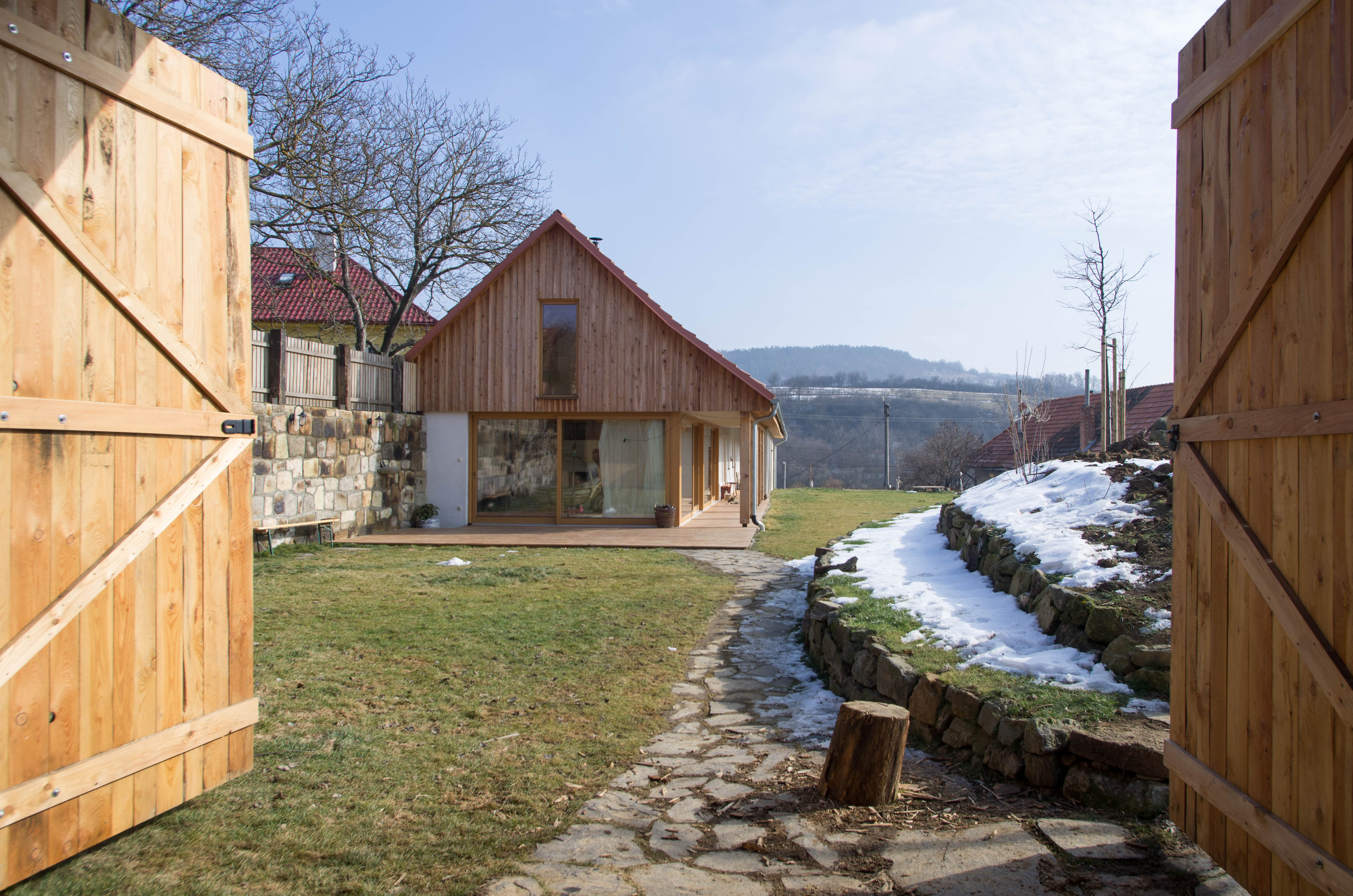 Umiestnením obytnej zóny do centra záhrady vznikla potreba opticky uzavrieť západnú hranu pozemku. Zároveň sa hľadal priestor na umiestnenie sauny, skladu a garáže. Inšpiráciou sa stali objekty susedných stodôl. Tvar, objem a použité materiály novej stodoly vychádzajú prísne z lokálnych vzorov. Umiestnenie zas nadväzuje na miesto pôvodného vstupu. Medzi stodolou a domom tak vzniká chránený dvor. Zvyšok pozemku ponechávame na dotvorenie majiteľom. Záhrada je určená na oddych a čiastočne na voľnočasové pestovanie zeleniny.