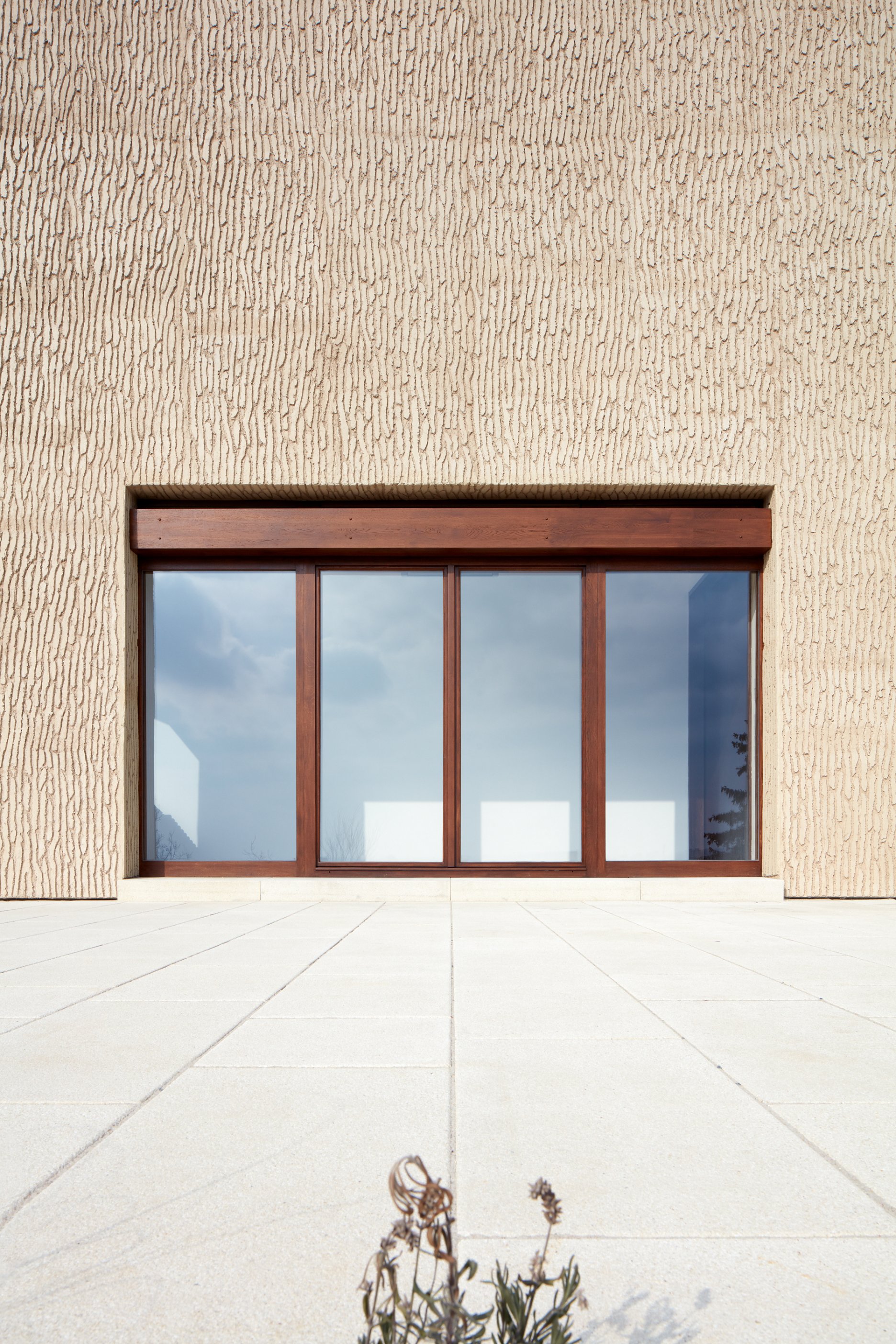 Pre vonkajší výraz objektu bol charakteristický kónický tvar obvodových stien, hrubá škrabaná omietka a dubové okná. Pôvodná omietka bola aj napriek veľkej snahe neopraviteľná. Preto architekti pristúpili k jej náhrade. Podarilo sa nájsť technické riešenie, ktoré je takmer totožné s pôvodným. Fasáda si zachovala farebnosť aj výraznú štruktúru. Aplikácii novej omietky predchádzalo opakované vzorkovanie a testovanie napojenia štruktúry na plochách fasády.