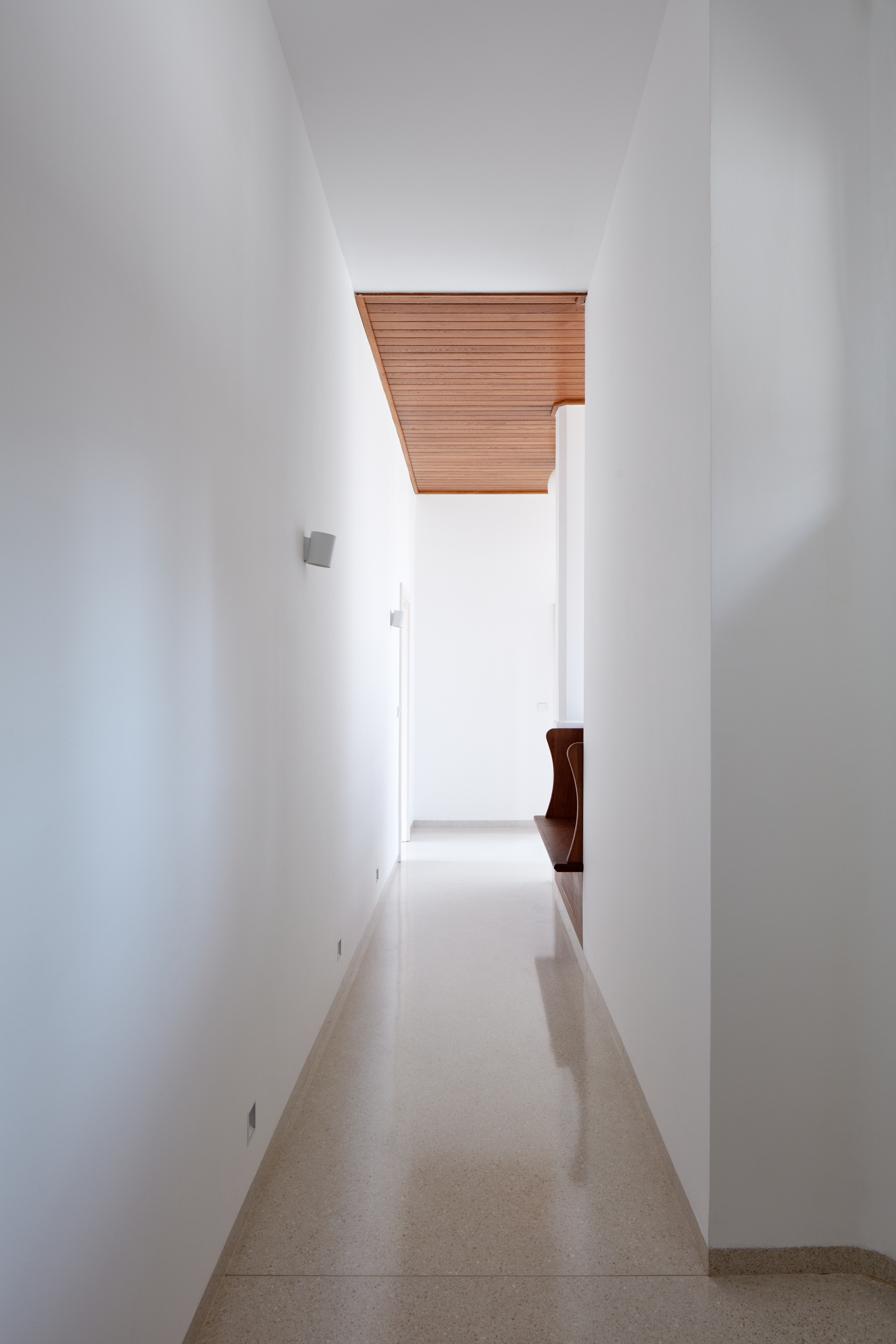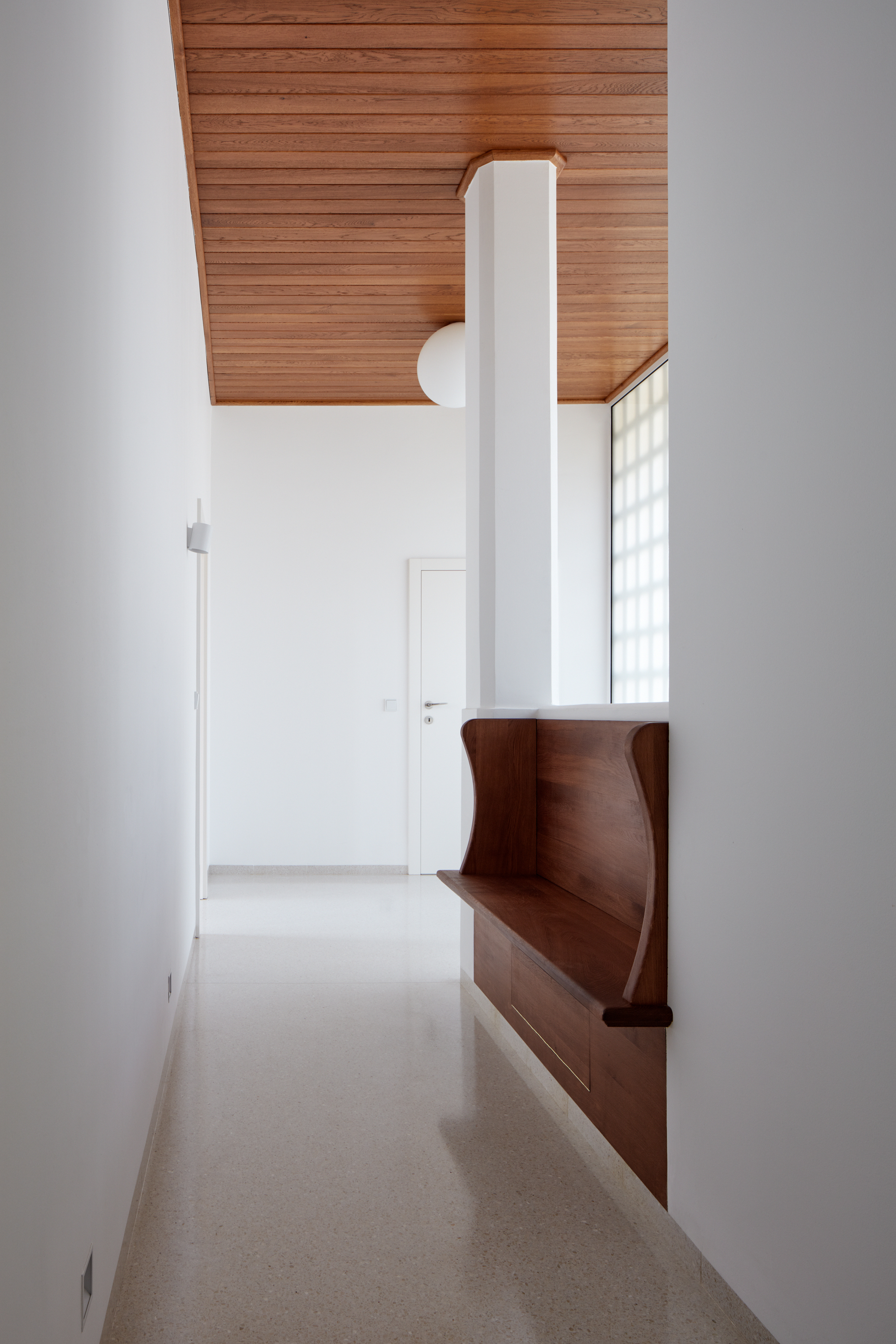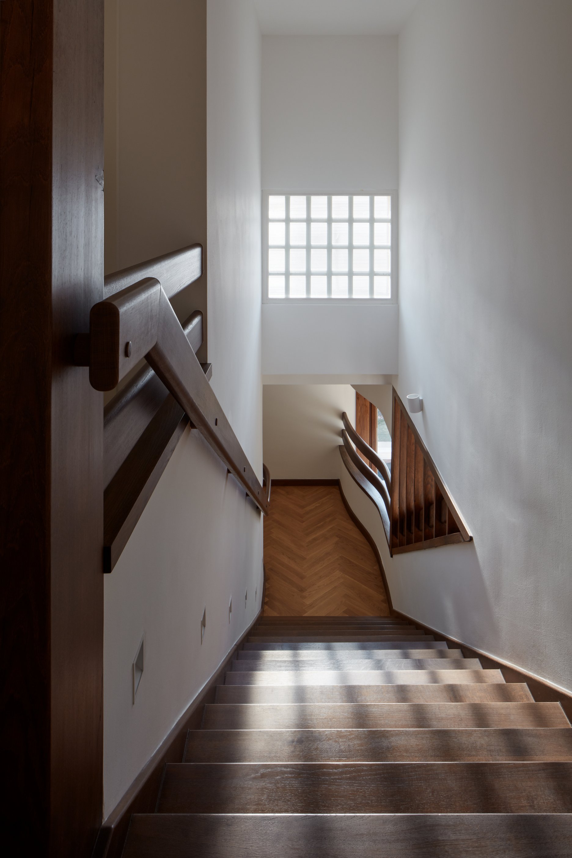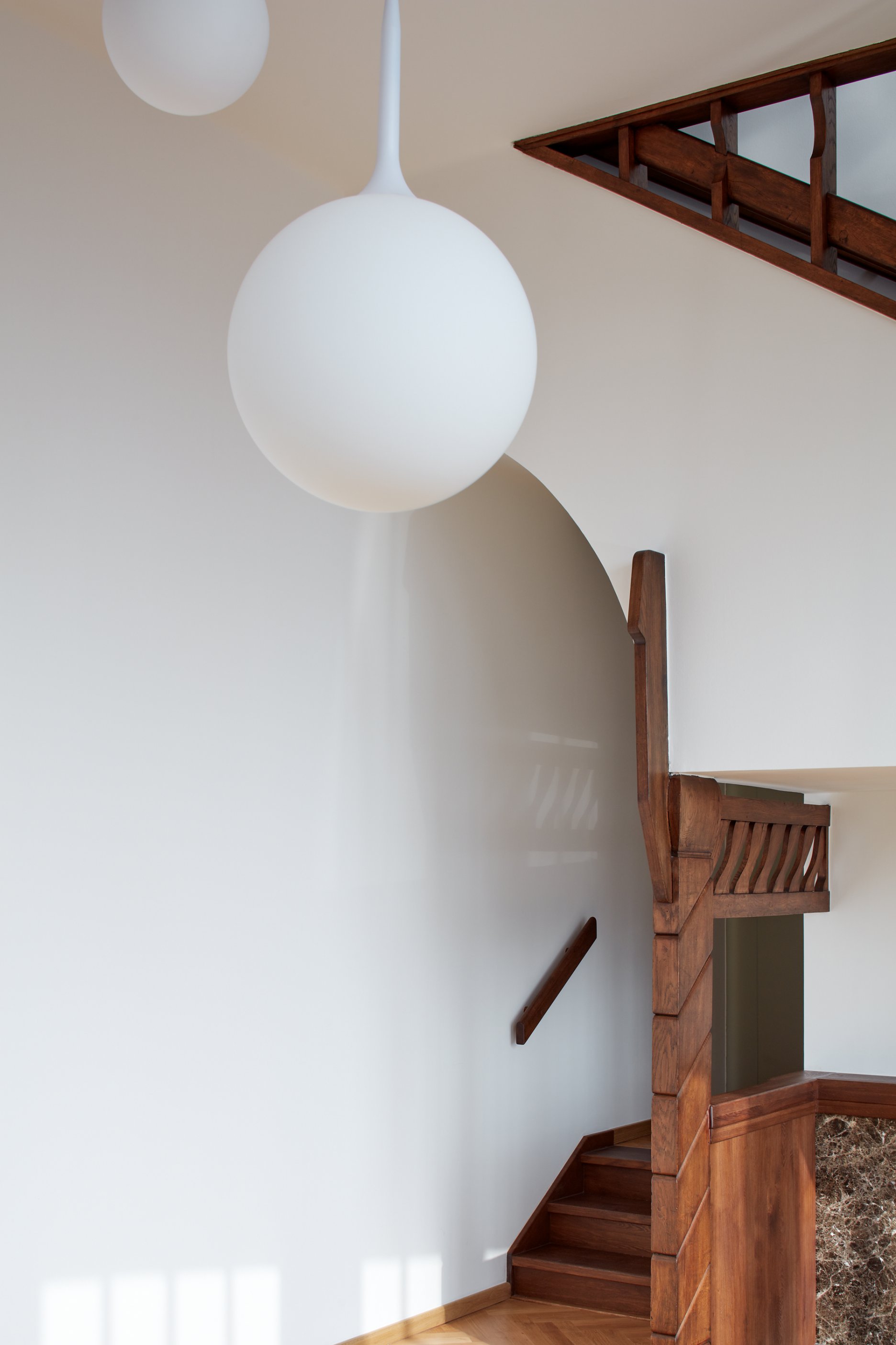Interiér domu trpel "kreativitou" majiteľov z druhej polovice 20. storočia. “Usilovali jsme o odstranění těchto naplavenin a zdůraznění originálního konceptu, který byl jednoduchý a přitom velmi působivý, změny dispozic oproti původnímu řešení jsme prováděli pouze minimálně, s ohledem na současné provozní nároky,” vysvetľujú architekti.