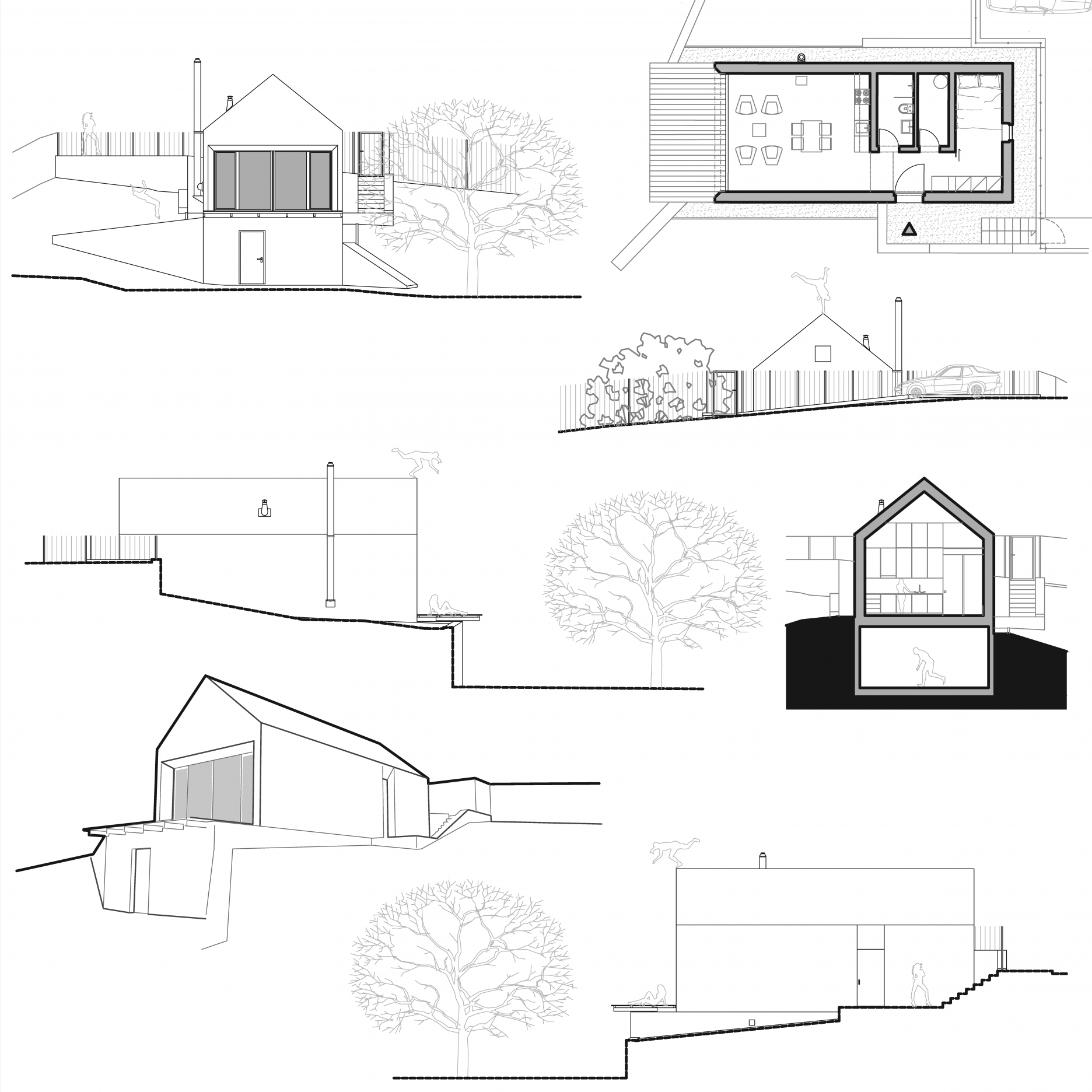 Pôdorys je logicky členený na dennú a nočnú zónu. Všetky miestnosti sú prístupné cez zádverie do ktorého vedú vstupné dvere z exteriéru. Hygiena a technologická bunka oddeľuje obývaciu izbu s bohatou svetlou výškou, smerujúcu k južným výhľadom. Spálňový trakt je orientovaný na sever. Nad technologickou časťou sa pod hrebeňom strechy nachádza ďalšia izba, sprístupnená kolmým rebríkom.